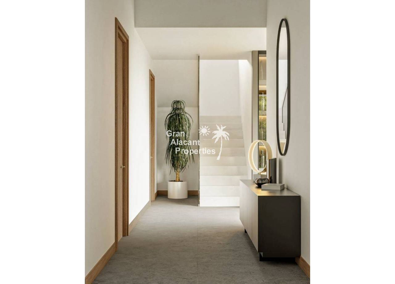 Esta magnífica villa de dos plantas está diseñada con un estilo moderno y funcional, ofreciendo un equilibrio perfecto entre elegancia y comodidad. Planta baja: Al ingresar, te recibe un hall de doble altura que aporta luminosidad y amplitud. En esta planta se encuentra un amplio salón de 60 m² que incluye la zona de comedor y una cocina moderna completamente equipada, ambos con acceso directo a la terraza y la piscina. Además, hay un dormitorio con baño privado, perfecto para invitados, y un aseo de cortesía junto a la zona de la terraza. Primera planta: Aquí se encuentran dos amplios dormitorios. Uno de ellos, de 19 m², tiene su propio baño en suite, mientras que el dormitorio principal de 55 m² ofrece un nivel de lujo excepcional con su baño privado que incluye tanto ducha como bañera, y un vestidor de 21 m². Esta planta ofrece el máximo confort y privacidad, con impresionantes vistas desde cada habitación. La villa está equipada con todas las comodidades de una vivienda moderna de alta gama: Climatización: Suelo radiante y aire acondicionado por conductos garantizan el confort durante todo el año. Almacenamiento: Armarios empotrados en todas las habitaciones y un amplio vestidor de 21 m² en el dormitorio principal. Tecnología y eficiencia: Sistema de riego automático para el jardín.