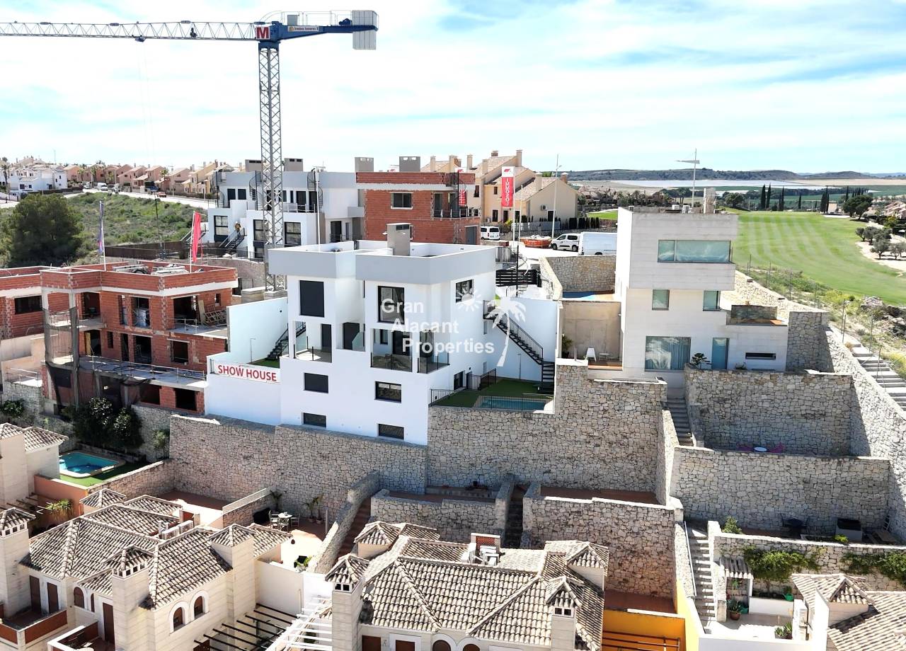 Es un complejo residencial exclusivo en Algorfa (Alicante), formado por 8 villas de lujo con piscina privada, entre 3 y 6 dormitorios, 3 baños, solarium y ascensor interior. Ubicado en el campo de golf, ofrece vistas panorámicas y está cerca de las mejores playas de la Costa Blanca, así como de importantes núcleos urbanos como Torrevieja. El acceso a centros comerciales, colegios, hospitales y conexiones de transporte clave, como el Aeropuerto Internacional de Alicante, se encuentra a pocos minutos.