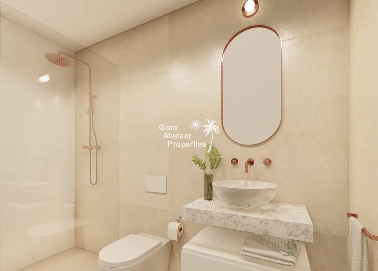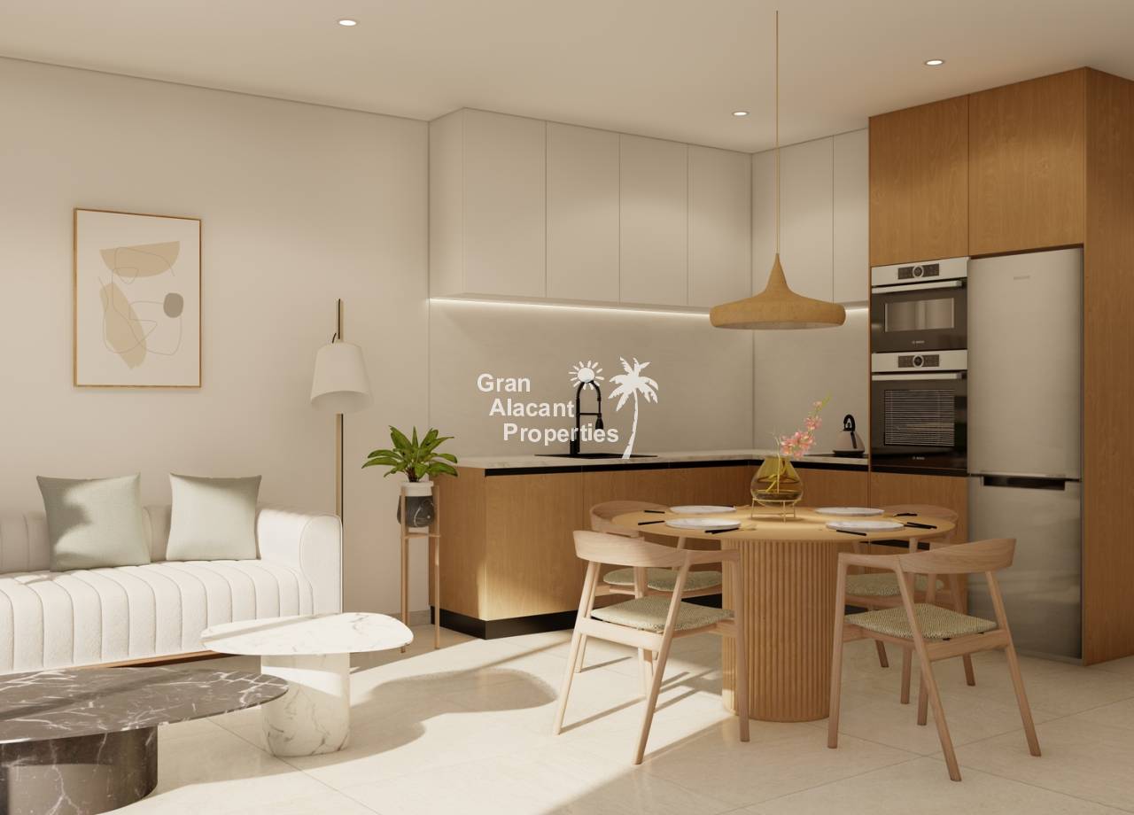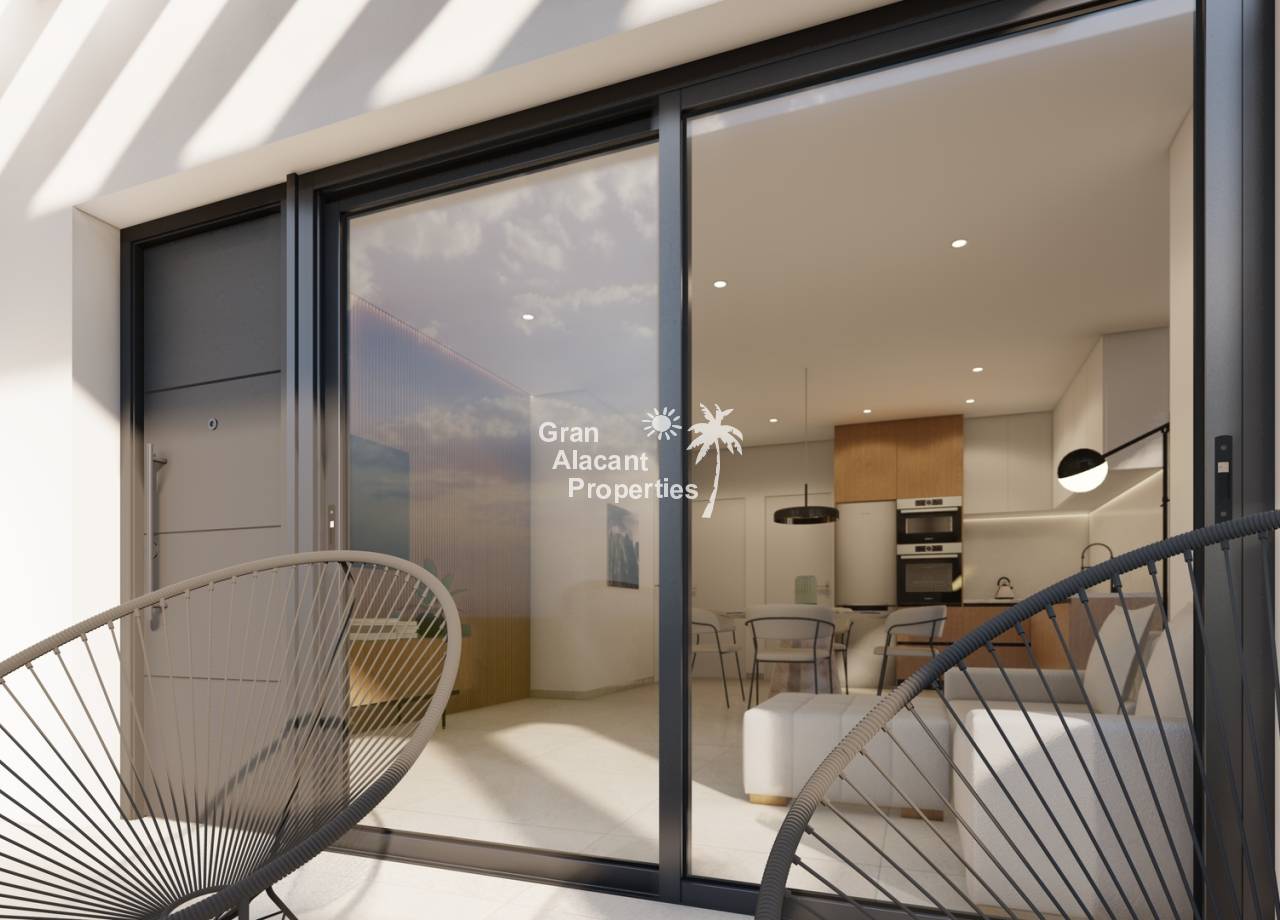 Los interiores han sido diseñados para aprovechar al máximo la luz natural y crear un ambiente acogedor y sofisticado: Salón-Comedor: Espacio de concepto abierto que conecta el salón y el comedor con la cocina, creando un ambiente diáfano y funcional. Grandes ventanales que permiten la entrada de luz natural y acceso directo a la terraza o solárium. Cocina Americana: Cocina totalmente equipada con electrodomésticos Bosch de alta gama: Campana extractora, Placa de inducción, Horno, Lavavajillas, Frigorífico, Lavadora, Encimera de gres porcelánico de alta calidad y acabados contemporáneos que combinan estilo y funcionalidad. Dormitorios: Dos amplios dormitorios con armarios empotrados y acabados de alta calidad. El dormitorio principal cuenta con acceso directo a la terraza o solárium. Baños: Dos baños completos con materiales de primera calidad. Mamparas de ducha de cristal de seguridad. Espejos retroiluminados y grifería de diseño. Instalaciones y Tecnología: Aire acondicionado por conductos (frío/calor) totalmente instalado. Sistema de aerotermia para agua caliente sanitaria de bajo consumo. Iluminación LED en todas las estancias para un bajo consumo energético. Preinstalación para sistema domótico que permite controlar la climatización y las persianas desde cualquier dispositivo móvil.