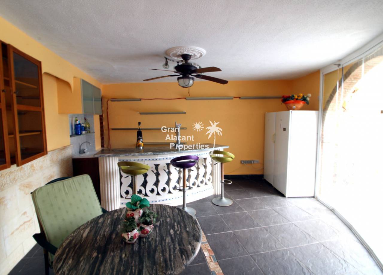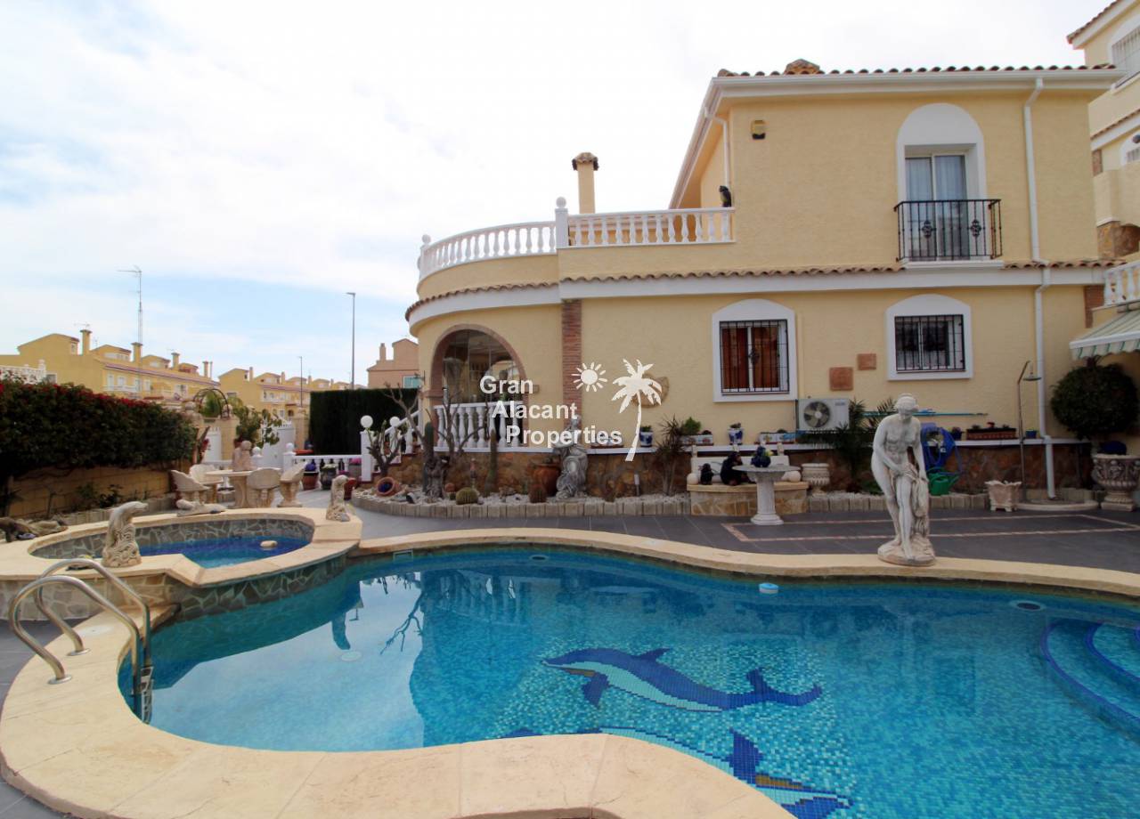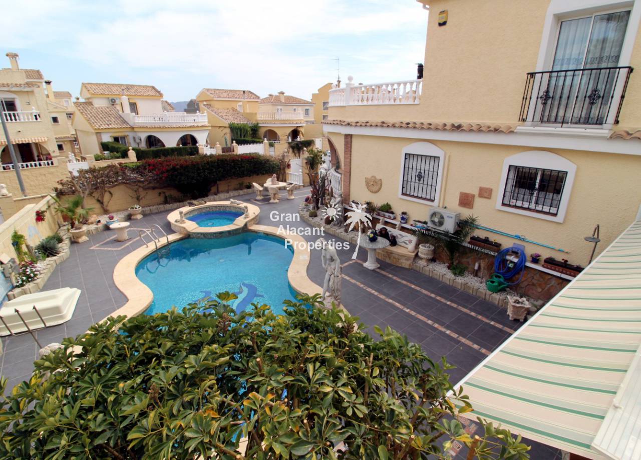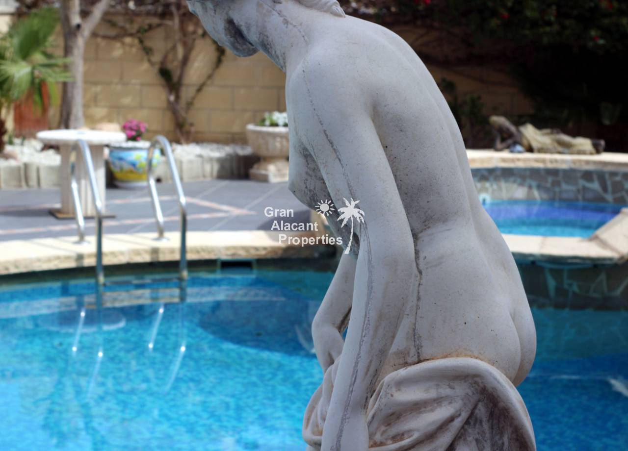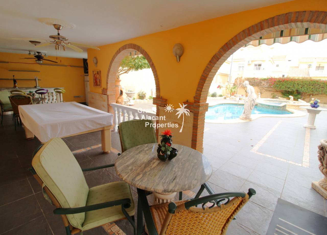 En el exterior, el jardín maduro de bajo mantenimiento (410 m²) ofrece estacionamiento fuera de la carretera, un montón de espacio para entretenerse o disfrutar del sol español. Lo mejor de todo es la piscina privada de diseño con jacuzzi separado y cascada, ideal para refrescarse en los días calurosos de verano. Hay una gran área de bar cubierto frontal curvo completo con TV vía satélite, bombas de cerveza, mesa de billar y tablero de dardos, ideal para fiestas o simplemente para disfrutarlo. Arriba, hay otro gran solarium con vistas al jardín y la piscina. También hay un almacenamiento y un inodoro para que no tenga que entrar a la casa para usar las instalaciones cuando esté en el jardín o la piscina.