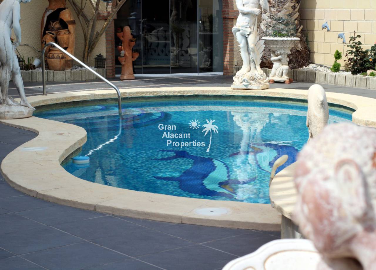 Esta villa palaciega independiente con piscina en Montecid ofrece la oportunidad de adquirir una propiedad de prestigio a pocos kilómetros de la ciudad de Alicante y la playa. Esta villa de "Eclipse" con 5 dormitorios y 4 baños (más 2 x WC) con piscina privada y área de entretenimiento está a la venta en la urbanización de Montecid en la soleada Costa Blanca de España.