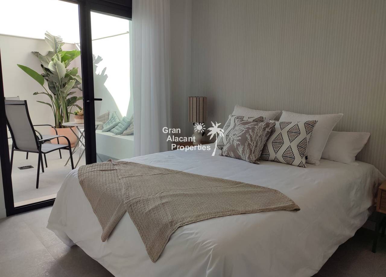 Los bungalows cuentan con un diseño contemporáneo, rodeados de un entorno acogedor y bien comunicado. Las viviendas de las plantas superiores disponen de un magnífico solárium privado, perfecto para aprovechar el sol mediterráneo durante todo el año. Además, el complejo ofrece una piscina comunitaria, ideal para disfrutar del buen clima y relajarse en las zonas exteriores. La proximidad a las playas de Torre de la Horadada y Mil Palmeras, a tan solo 5 minutos, y la cercanía al campo de golf de Lo Romero, aportan un valor añadido a la localización.