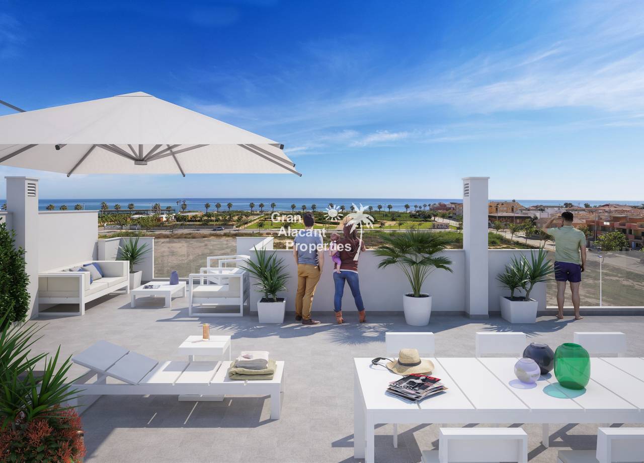 Descubre la fantástica nueva promoción en la popular zona de Torre de la Horadada, a solo 400 metros de la hermosa playa de Las Higuericas. Este excepcional proyecto ofrece una variedad de propiedades de nueva construcción, incluyendo apartamentos en planta baja, primera planta y planta superior con 2 dormitorios, así como adosados con 3 dormitorios. Diseñadas en un estilo muy moderno, estas propiedades cuentan con amplias terrazas y grandes espacios exteriores. En el centro del complejo hay una hermosa zona comunitaria con una gran piscina. El precio incluye varios extras como electrodomésticos, calefacción por suelo radiante en los baños, mamparas de ducha, luces LED bajo los muebles de cocina y persianas motorizadas en el salón. Aún quedan algunas unidades disponibles que estarán listas para enero o junio de 2020. Debido al gran éxito, pronto se lanzará otro complejo residencial similar.