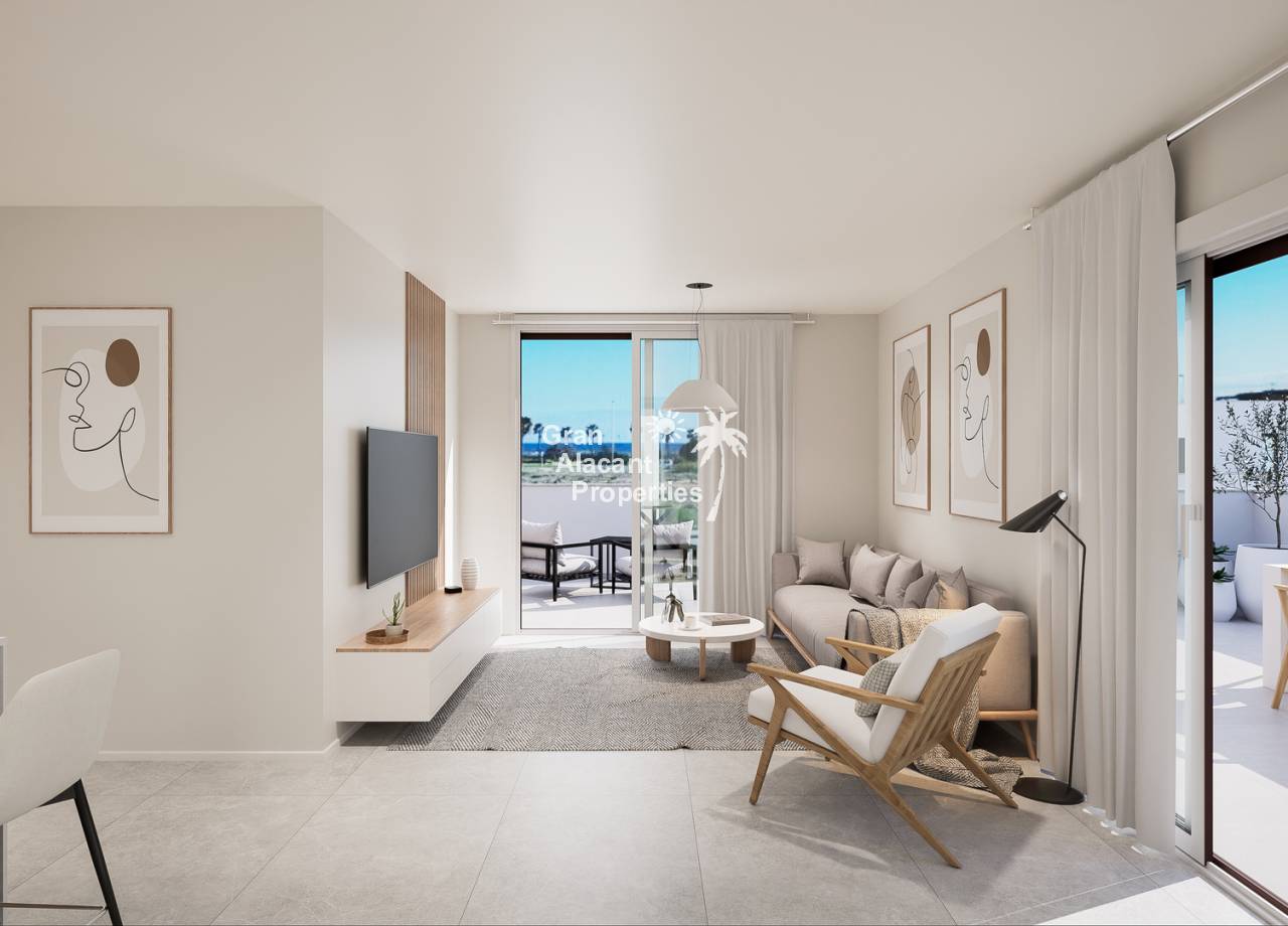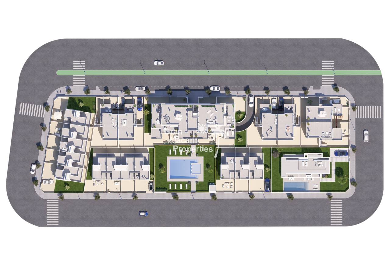 Las zonas comunes del complejo en Torre de la Horadada están diseñadas para proporcionar un ambiente de lujo y confort. La impresionante piscina comunitaria en el centro del complejo es un punto focal que ofrece un espacio perfecto para nadar y relajarse. Rodeada de áreas ajardinadas, esta zona crea un entorno tranquilo y agradable para socializar y disfrutar del aire libre. La comunidad de Torre de la Horadada se ha vuelto cada vez más popular por su vibrante mezcla de residentes españoles y europeos occidentales, ofreciendo una experiencia cosmopolita con una rica cultura de café y tapas. La hermosa playa y el encantador puerto deportivo, con una gran variedad de bares y restaurantes, hacen de esta ubicación un lugar ideal para vivir. Además, la excelente conectividad con las principales ciudades y el fácil acceso a diversas playas de la Costa Cálida y la Costa Blanca convierten a este complejo en una opción ideal tanto para residencia permanente como para inversión.