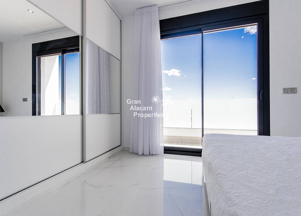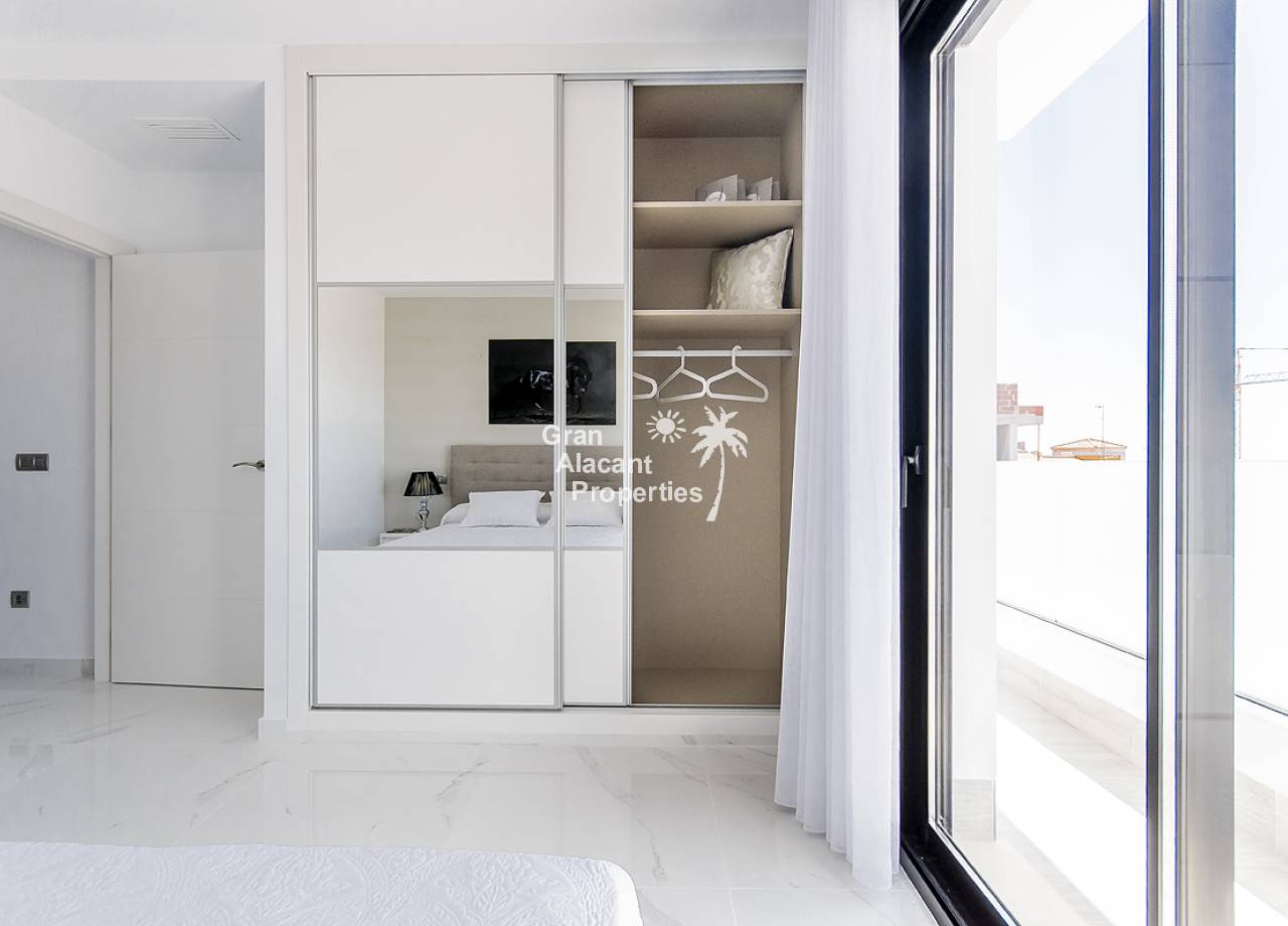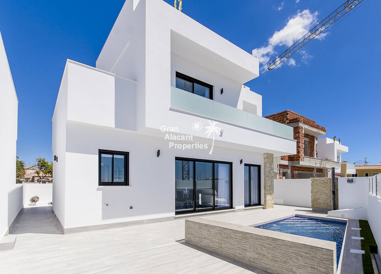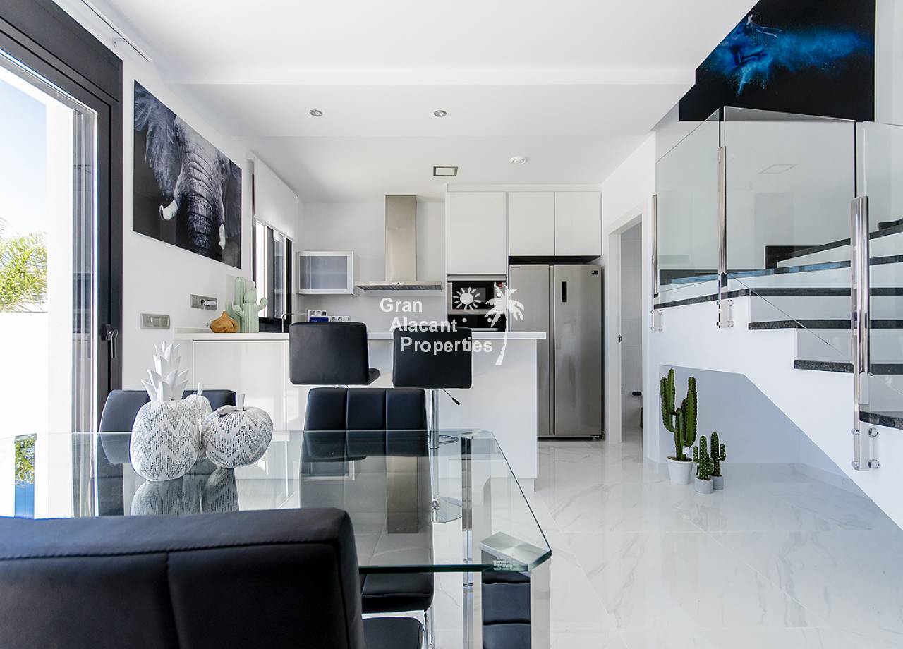 Presentamos Loma de la Laguna, una pequeña comunidad de lujosos chalets de nueva construcción en la zona de La Herrada en Los Montesinos, en la soleada Costa Blanca de España. Estos modernos chalets cuentan con una gran sala de estar y comedor de planta abierta y cocina (35 m2) que es ideal para recibir invitados o relajarse con un libro. Las grandes extensiones de vidrio aseguran que el espacio sea soleado y luminoso y que ofrezcan vistas al jardín y a la piscina privada. Hay un dormitorio principal en la planta baja con armarios empotrados y cuarto de baño. Un práctico lavadero separado de la cocina y el aseo de invitados completan la planta baja. Subiendo una escalera moderna con barandilla de vidrio al primer piso, encontrará un baño familiar y dos habitaciones dobles adicionales con armarios empotrados y acceso a una terraza con vistas a la piscina.