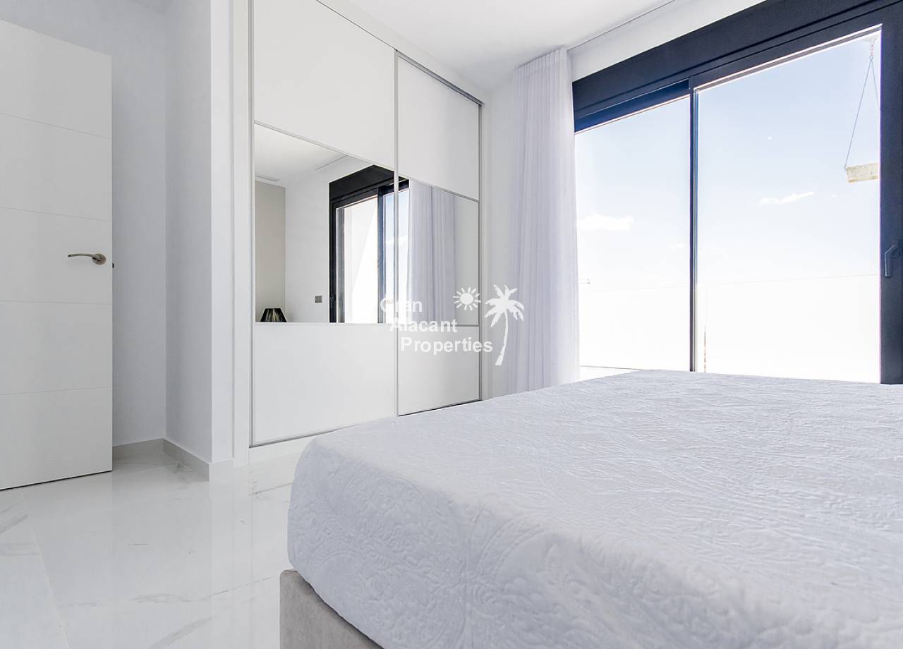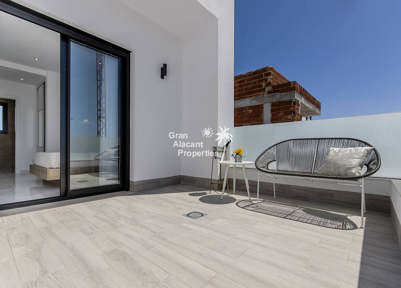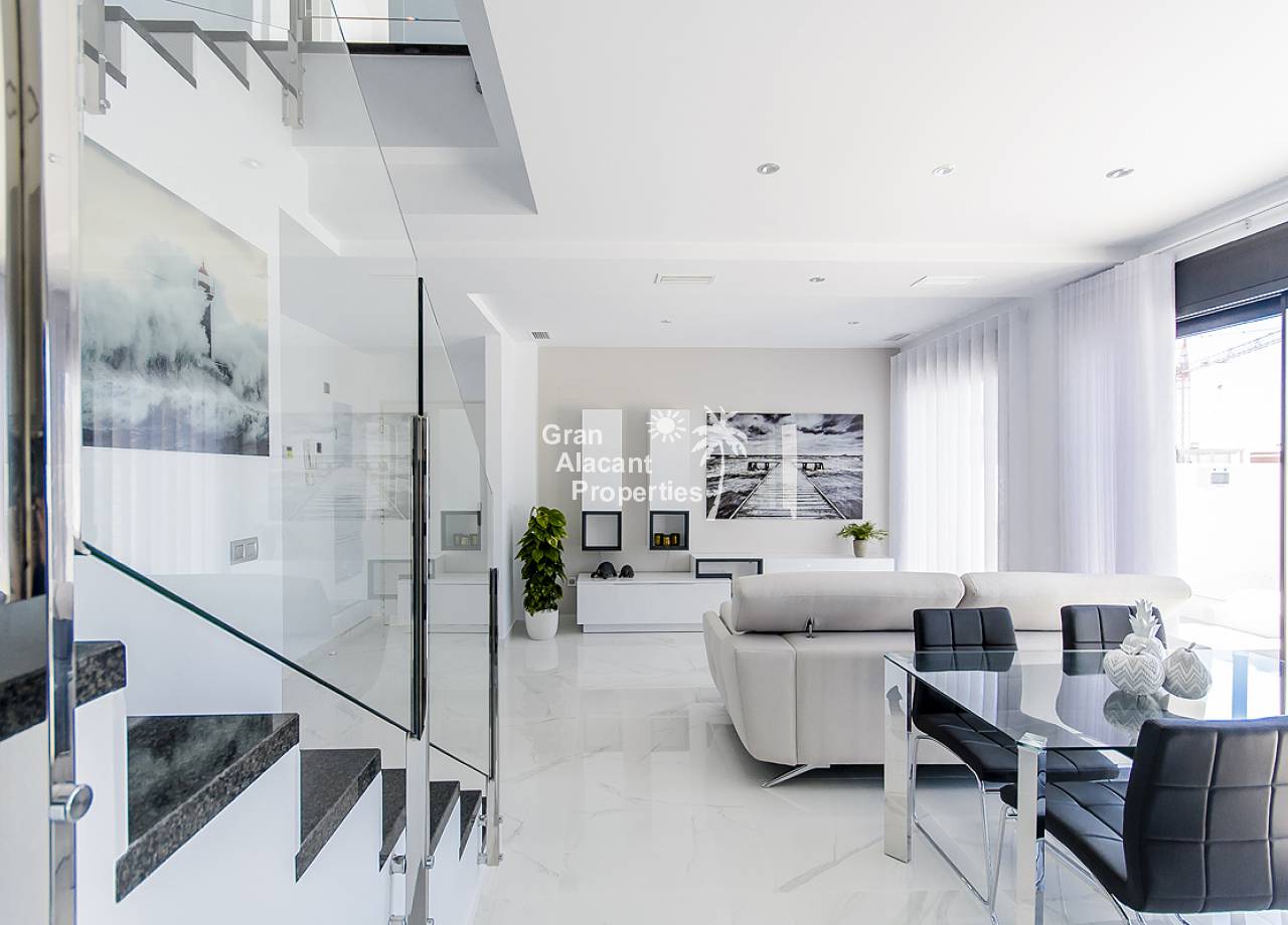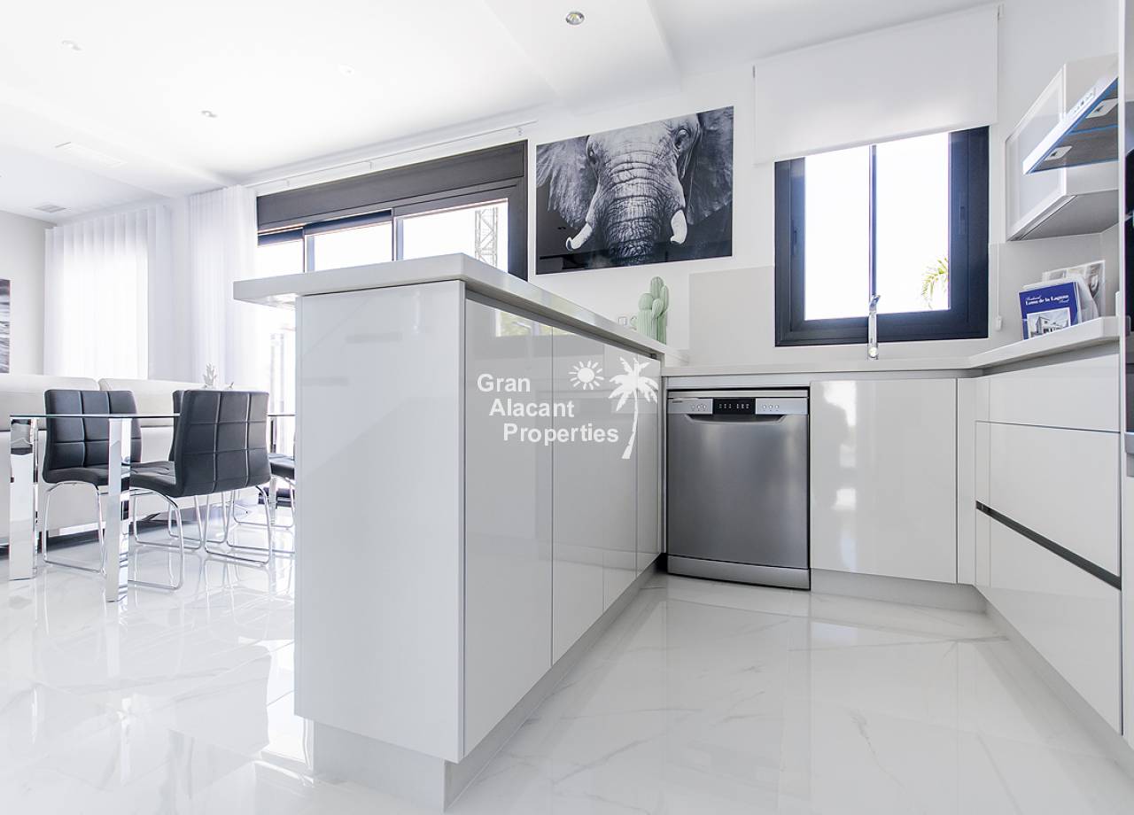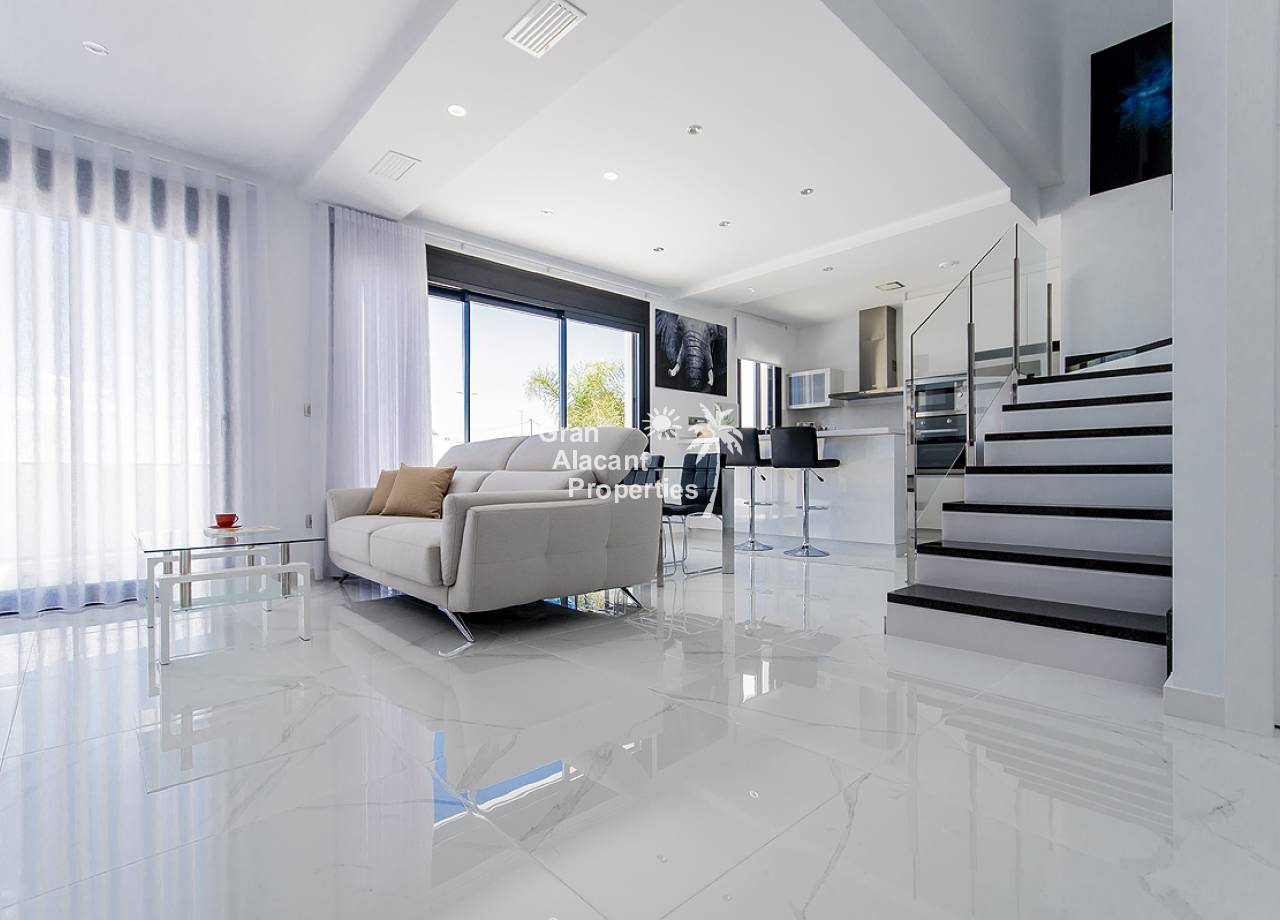 Presentamos Loma de la Laguna, una pequeña comunidad de lujosos chalets de nueva construcción en la zona de La Herrada en Los Montesinos, en la soleada Costa Blanca de España. Estos modernos chalets cuentan con una gran sala de estar y comedor de planta abierta y cocina (35 m2) que es ideal para recibir invitados o relajarse con un libro. Las grandes extensiones de vidrio aseguran que el espacio sea soleado y luminoso y que ofrezcan vistas al jardín y a la piscina privada. Hay un dormitorio principal en la planta baja con armarios empotrados y cuarto de baño. Un práctico lavadero separado de la cocina y el aseo de invitados completan la planta baja. Subiendo una escalera moderna con barandilla de vidrio al primer piso, encontrará un baño familiar y dos habitaciones dobles adicionales con armarios empotrados y acceso a una terraza con vistas a la piscina.