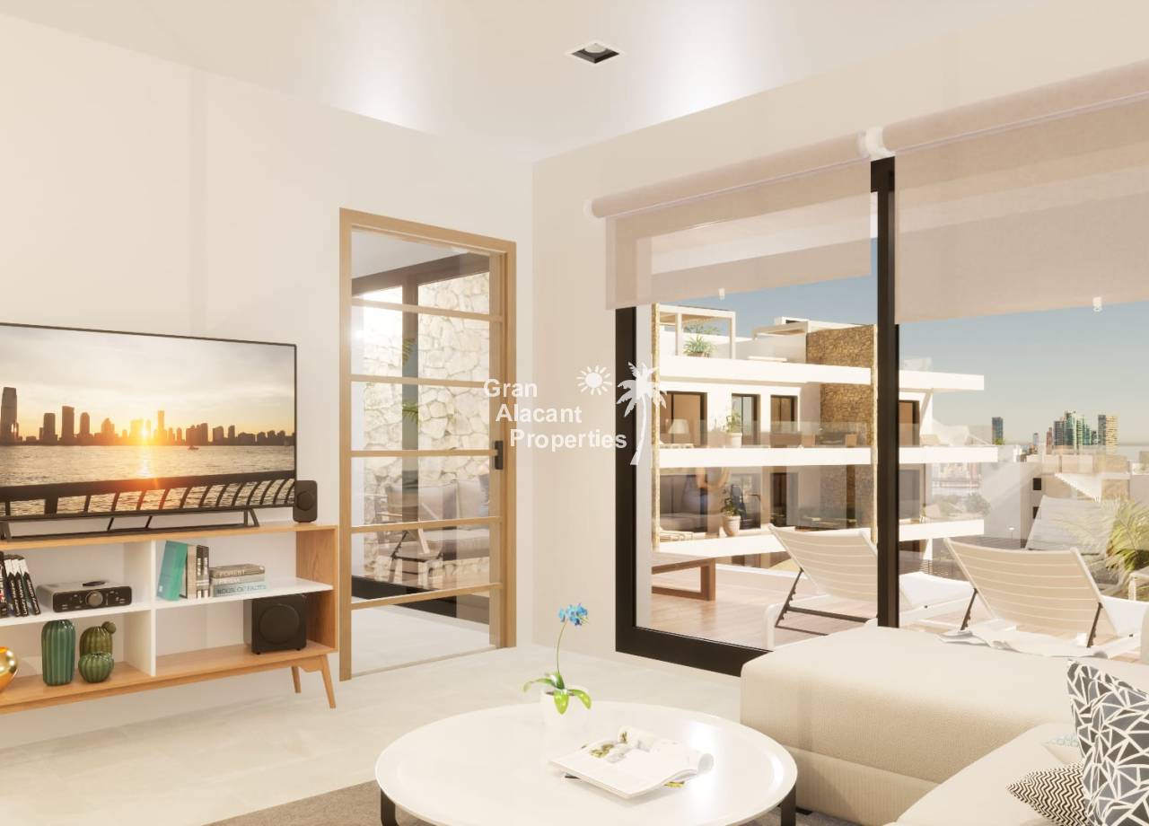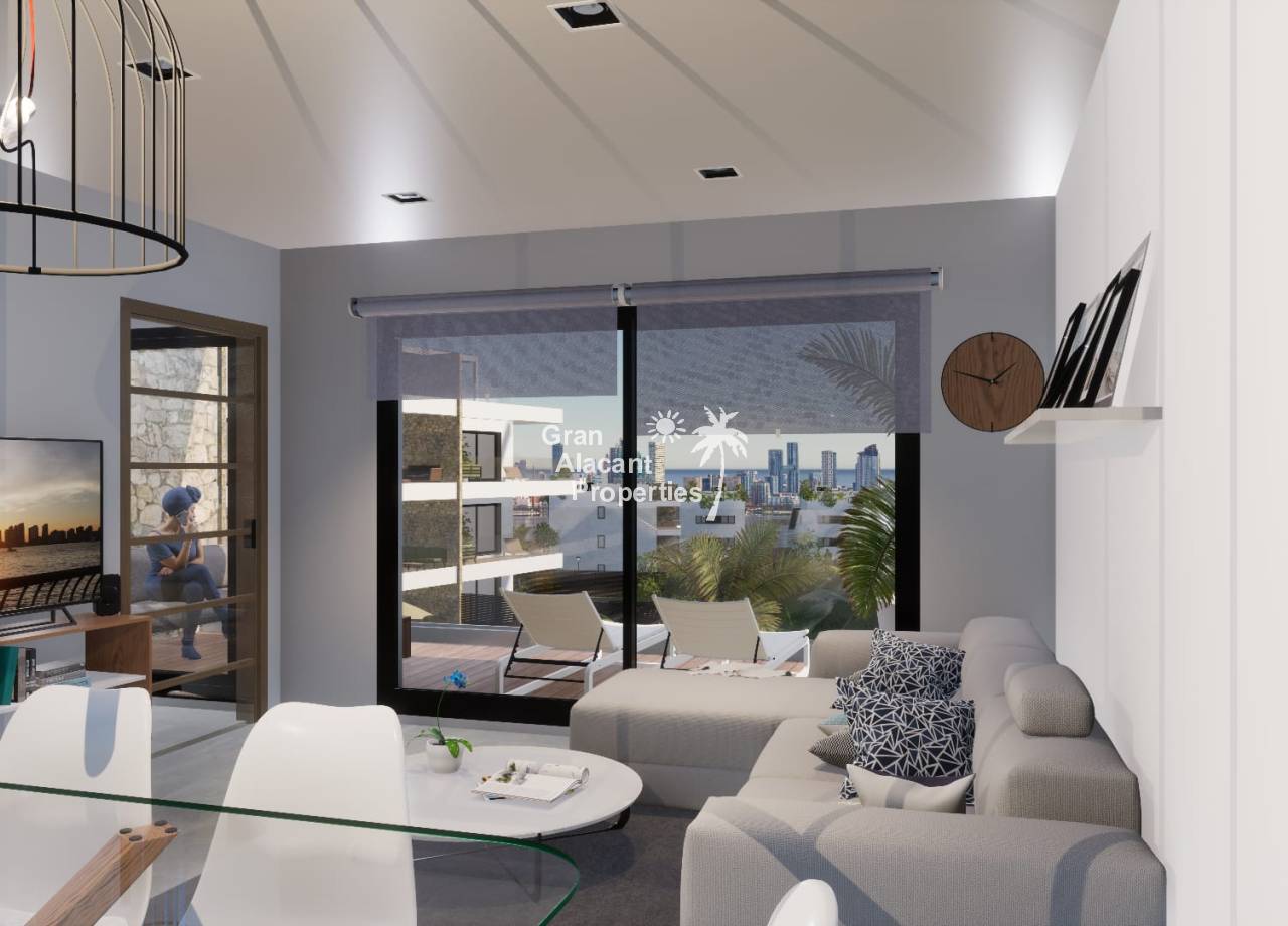 El diseño exterior del complejo refleja una estética moderna y sofisticada, con líneas limpias y una paleta de colores neutros que armonizan con el entorno natural: Arquitectura contemporánea con grandes ventanales que permiten disfrutar de la luz natural y las vistas panorámicas al mar y a la ciudad. Terrazas privadas en todas las viviendas, con vistas despejadas hacia el mar Mediterráneo y Benidorm. Áticos con solárium privado, ideal para disfrutar del clima mediterráneo durante todo el año. Plantas bajas con jardín privado, perfecto para crear un espacio exterior personalizado. Zona de acceso cerrada y vigilada, que garantiza privacidad y seguridad en todo el complejo. Plaza de aparcamiento y trastero incluidos en el precio de cada vivienda.