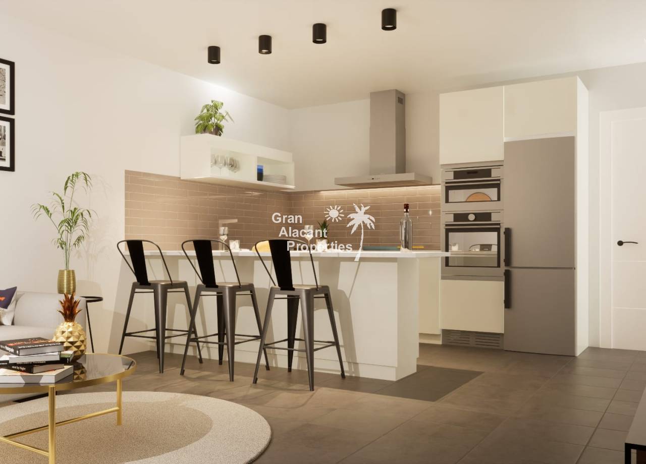 Las viviendas están diseñadas para maximizar el confort y la funcionalidad, con una distribución inteligente y materiales de alta calidad que reflejan un estilo de vida moderno: Salón-comedor de planta abierta, con acceso directo a la terraza exterior y grandes ventanales que ofrecen abundante luz natural. Cocina americana totalmente equipada, con muebles modernos, electrodomésticos de alta gama y encimera de porcelánico de primera calidad. Dormitorio principal con baño en suite, vestidor y acceso directo a la terraza. Baños modernos equipados con muebles de diseño, grifería de alta gama y mamparas de cristal. Armarios empotrados con acabado lacado blanco y forrados interiormente para ofrecer espacio de almacenamiento adicional. Sistema de aerotermia para calefacción y agua caliente sanitaria, que garantiza eficiencia energética y sostenibilidad. Aire acondicionado por conductos (frío/calor) completamente instalado. Iluminación LED en todas las estancias para crear un ambiente cálido y acogedor. Carpintería de aluminio con rotura de puente térmico para un mejor aislamiento térmico y acústico. Suelos porcelánicos de alta calidad en toda la vivienda, que proporcionan un acabado elegante y duradero.