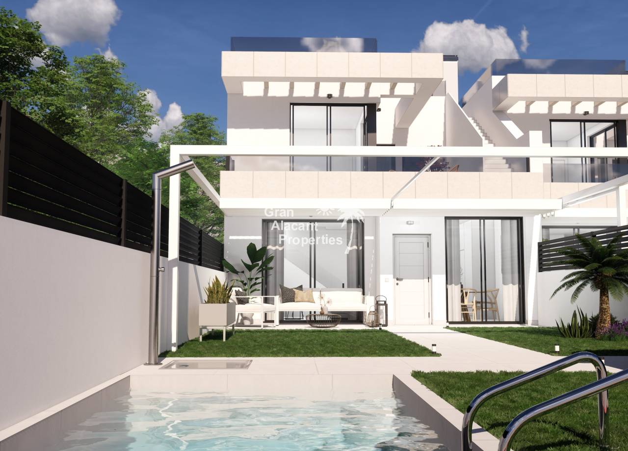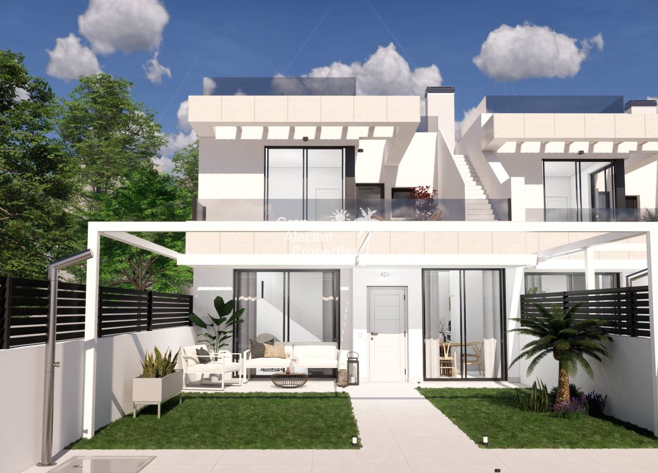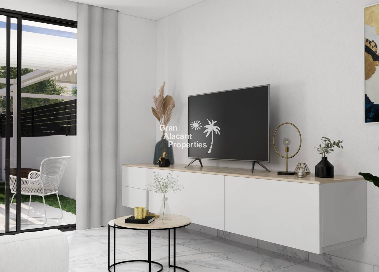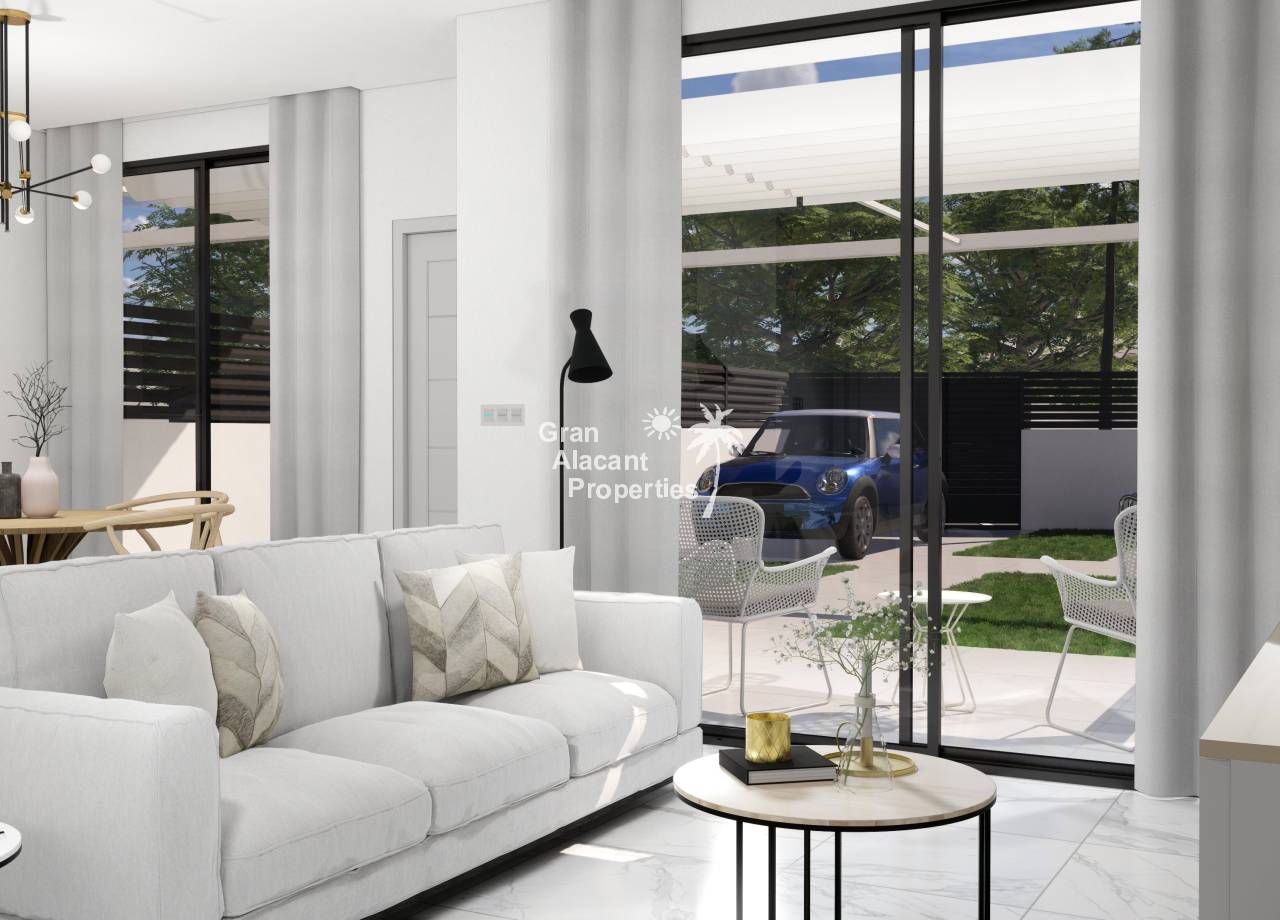 Destacan por sus interiores elegantes y funcionales. El diseño moderno incluye un amplio salón/comedor que se abre al jardín, perfecto para el entretenimiento. La cocina abierta está equipada con electrodomésticos integrados de alta calidad. En la planta baja, el dormitorio principal cuenta con vestidores y baño en suite, mientras que hay un baño adicional para invitados. En el primer piso, dos dormitorios dobles con armarios empotrados ofrecen espacio adicional para la familia o invitados. Opciones como el solárium en la azotea agregan un toque de lujo. Estos interiores combinan estilo y funcionalidad para crear un hogar confortable y contemporáneo en la hermosa Costa Blanca.