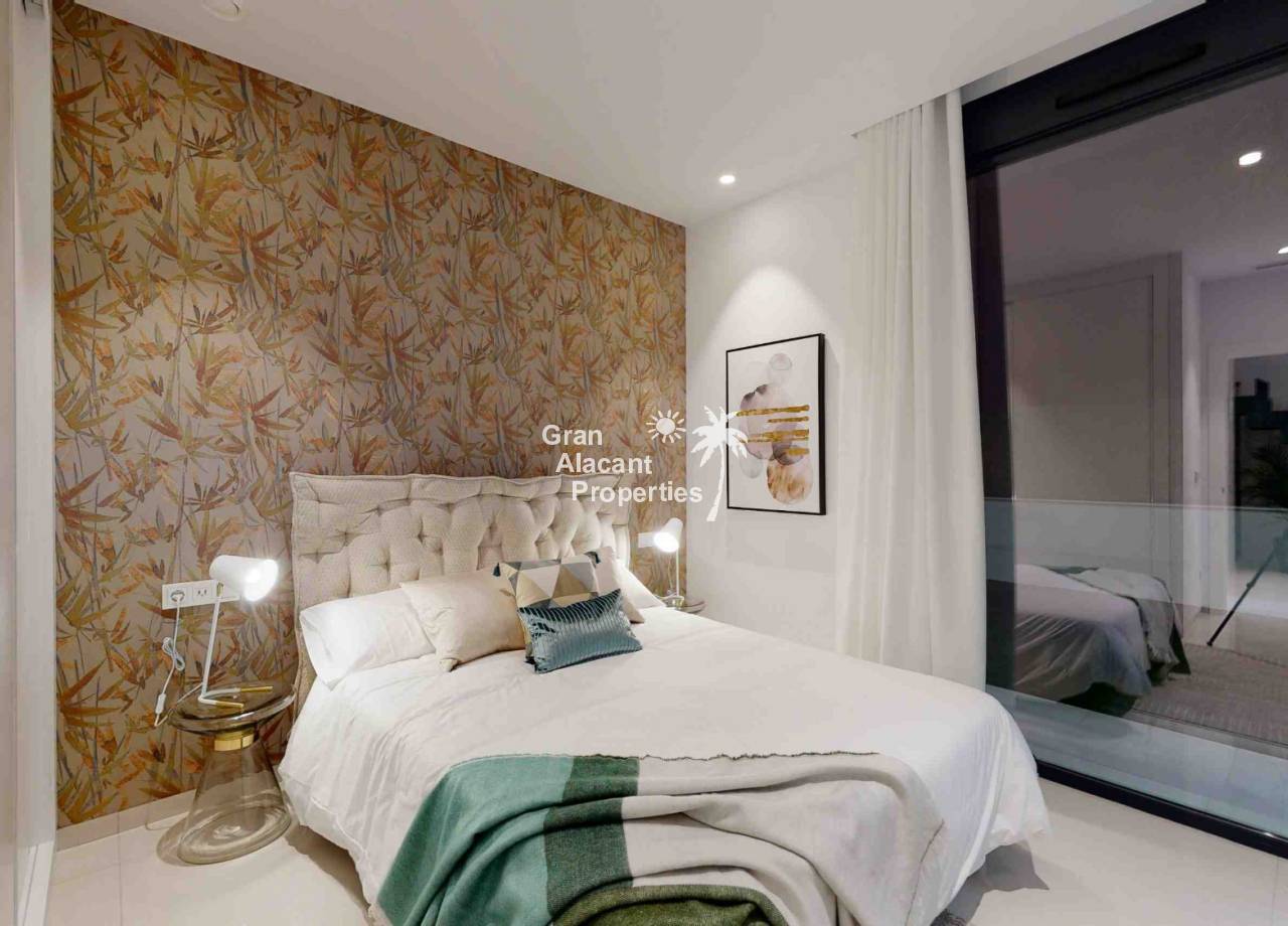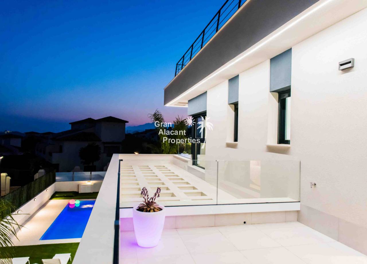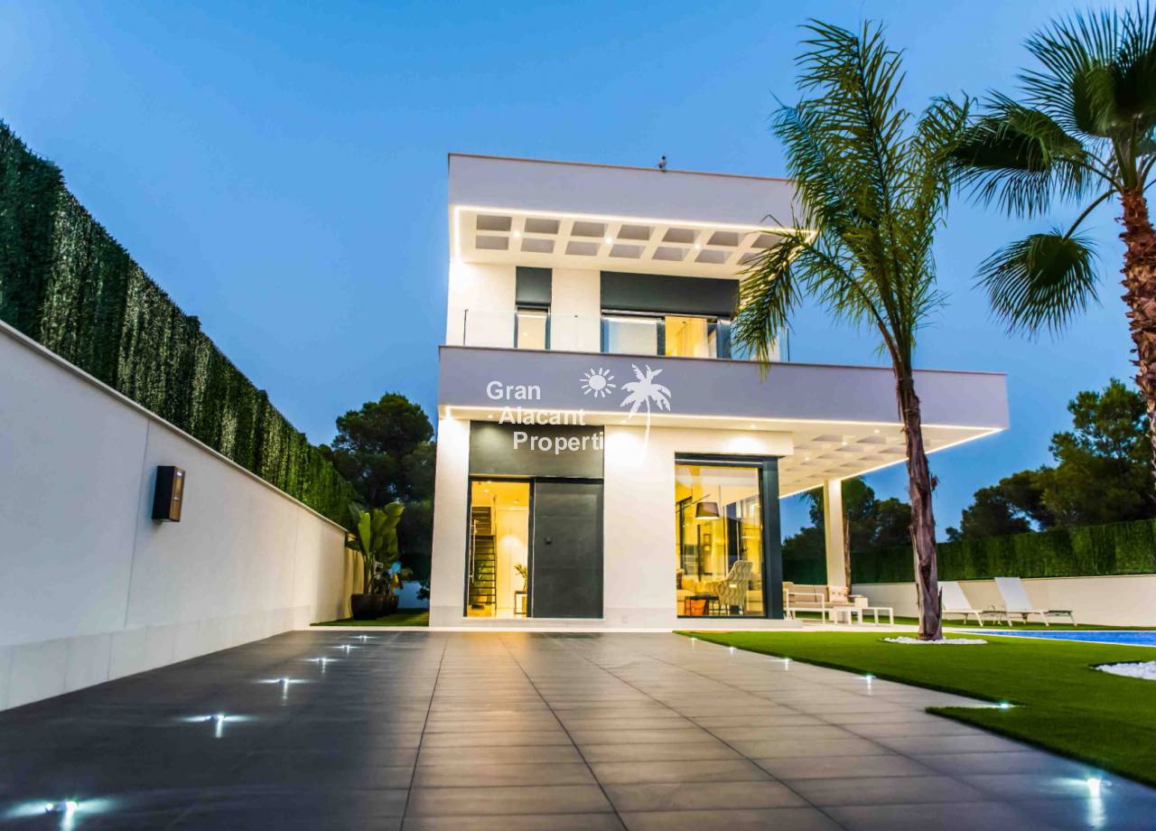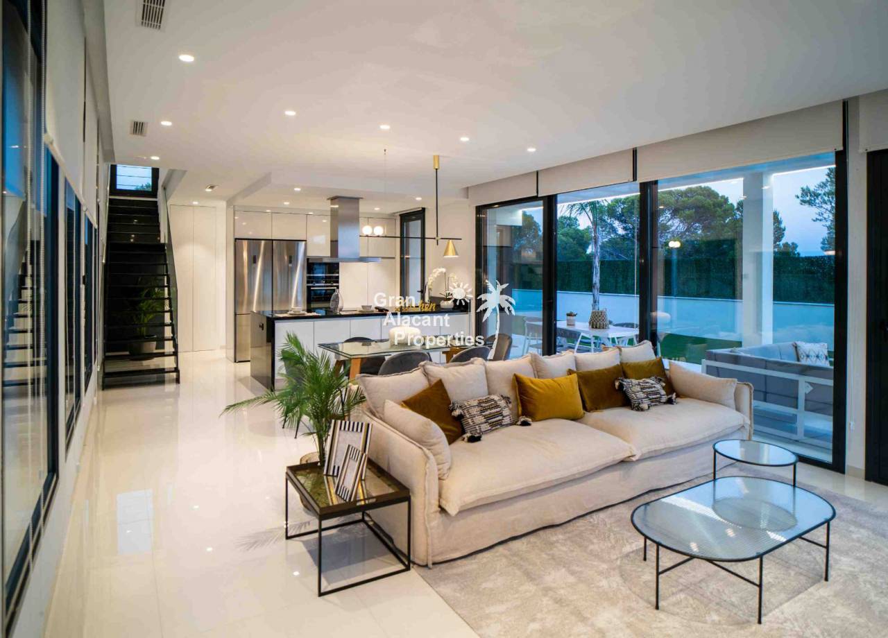 Hay materiales de primera calidad, incluyendo suelos de gres porcelanico, ventanas de doble acristalamiento con protección solar, encimeras de piedra y muebles modernos de alto brillo en la cocina, aire acondicionado central, preinstalación para calentador de piscina, luces de jardín, puerta cochera motorizada, puertas de armario de alto brillo, sistema de riego, sistema de video portero, más.