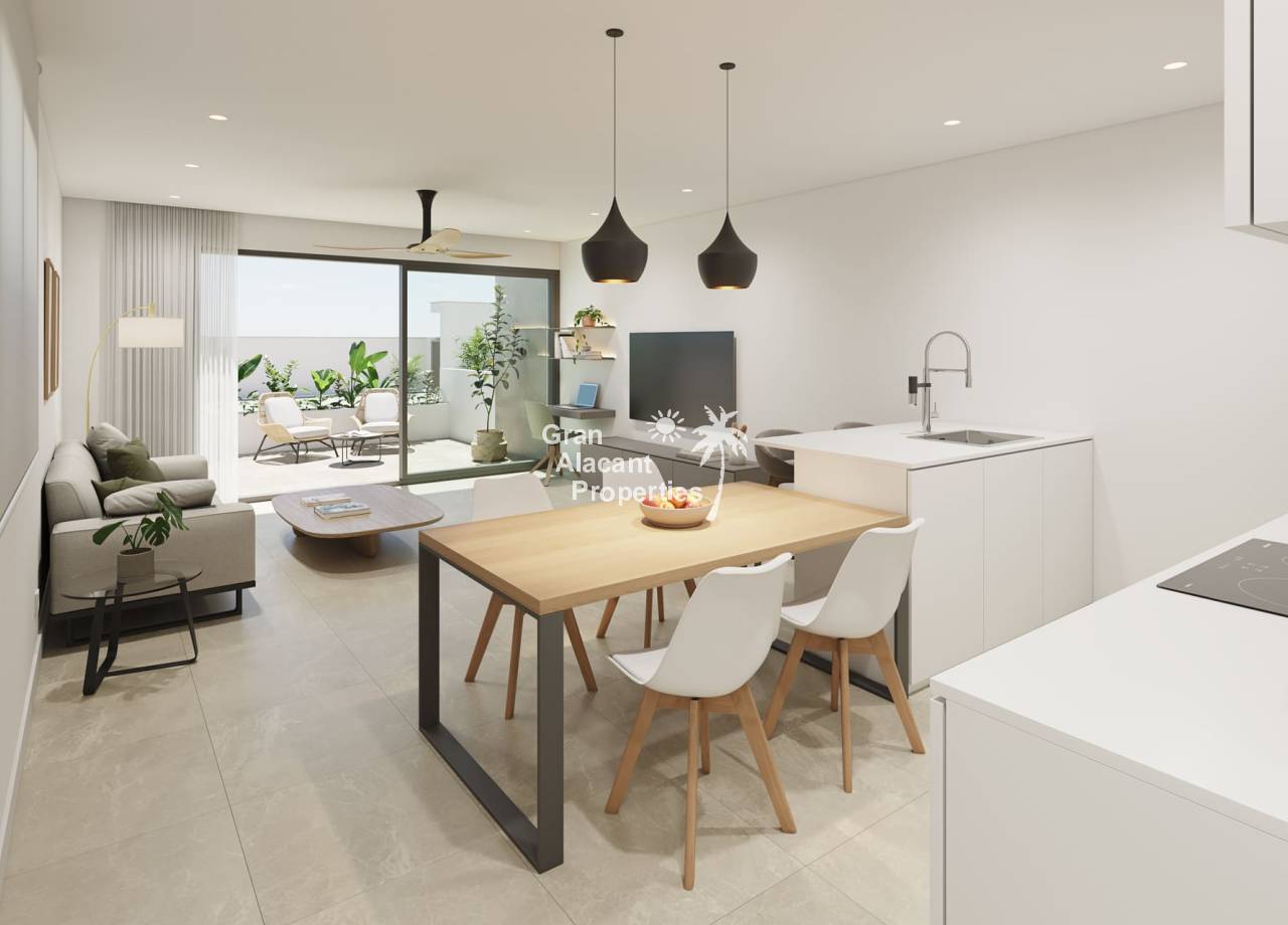 Este nuevo residencial en Pilar de la Horadada lanza su segunda fase con 12 apartamentos de diseño moderno y amplias zonas comunes. Las viviendas, de 1 y 2 dormitorios, han sido diseñadas para aprovechar al máximo la orientación sur, ofreciendo un espacio lleno de luz y comodidad. Cada apartamento cuenta con cocina abierta al salón, terraza y jardín en planta baja, o terraza y solárium en planta alta. Equipados con electrodomésticos, iluminación LED y preinstalación de aire acondicionado, garantizan un estilo de vida moderno y eficiente. Las zonas comunes incluyen una piscina minimalista, zonas ajardinadas y parking privado, proporcionando un entorno ideal para disfrutar en familia o con amigos.