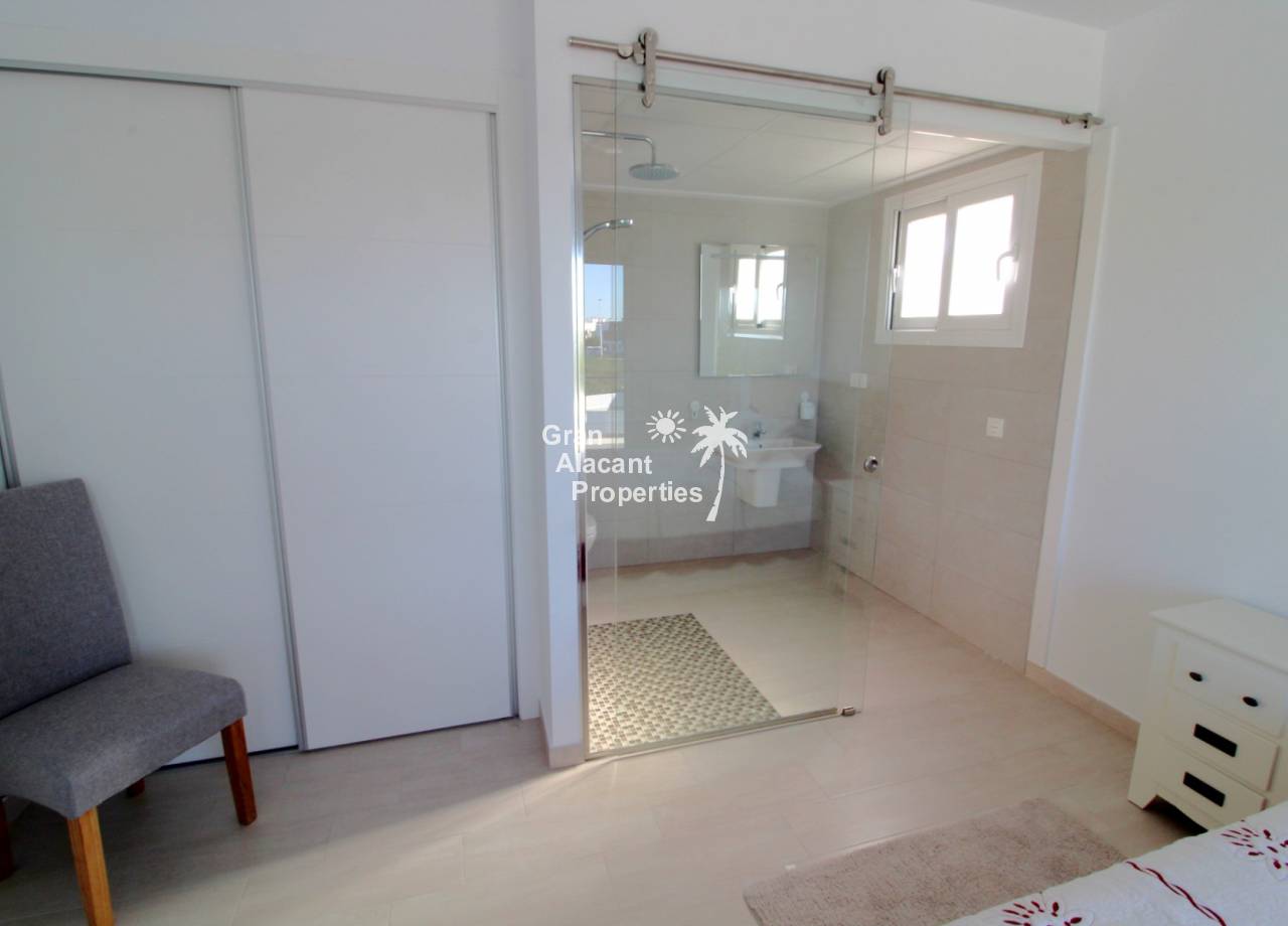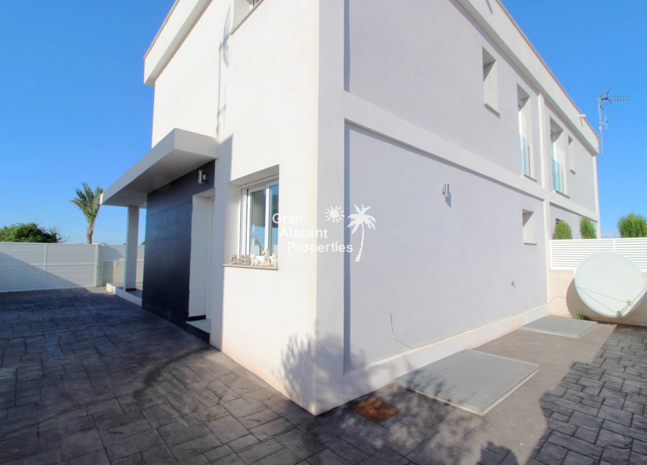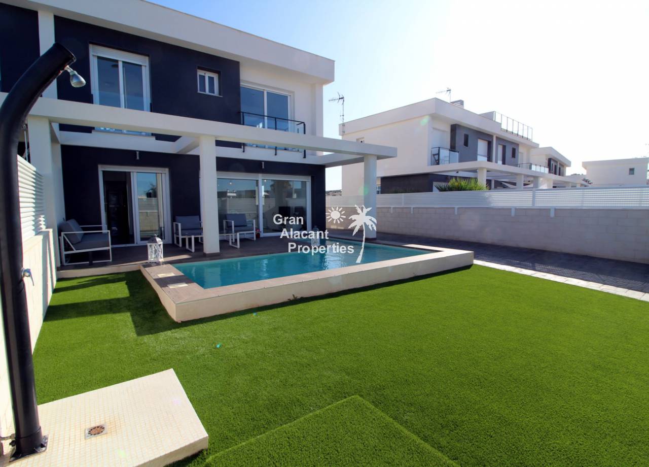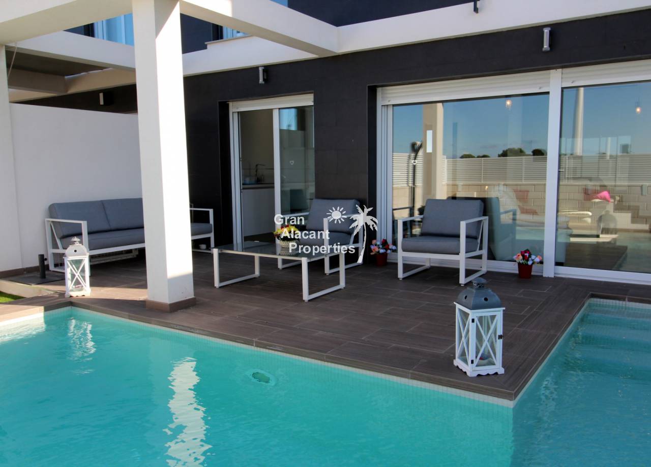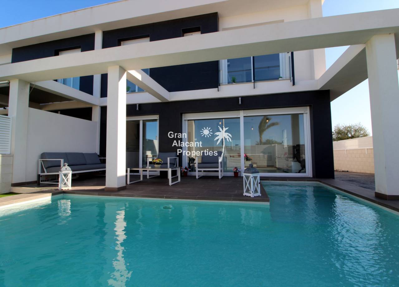 Gran Alacant Properties se enorgullece en ofrecer esta linda villa semi-adosada "Key Ready", una moderna villa de lujo con piscina que se construyó en 2018 en el Bajo Gran Alacant. Esta nueva villa está orientada al suroeste, por lo que es soleada y luminosa y cuenta con acabados modernos de alta calidad que incluyen encimeras de cuarzo y campana extractora de acero inoxidable en la cocina, así como ventanas de doble acristalamiento Climalit, puertas correderas de PVC, calefacción central por conductos y aire acondicionado, Iluminación ambiental LED, sistema de TV Satelitte, un calentador de agua caliente de bajo consumo y mucho más.