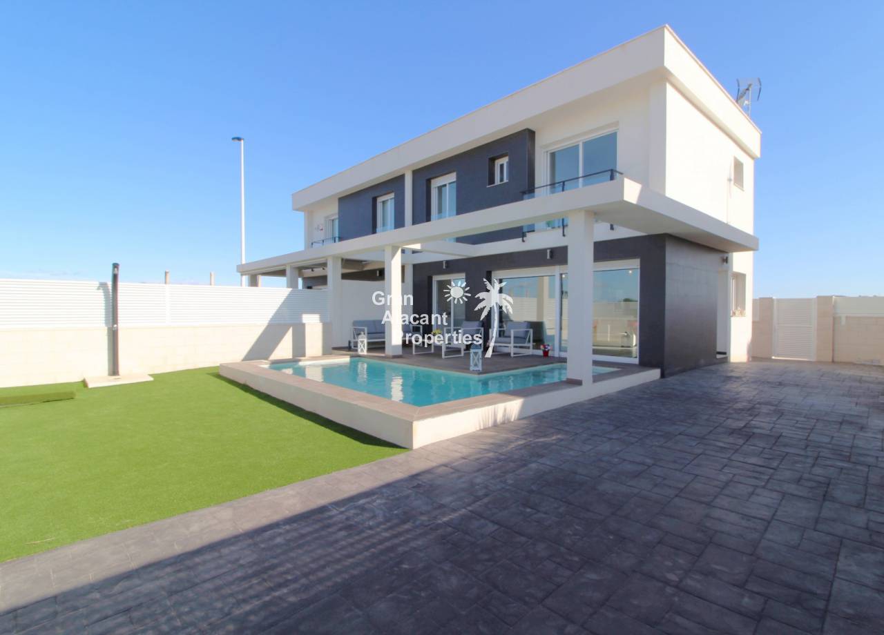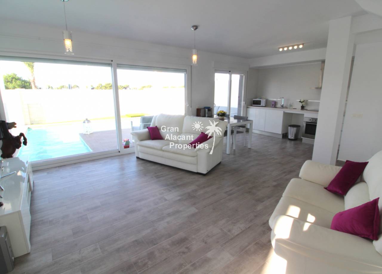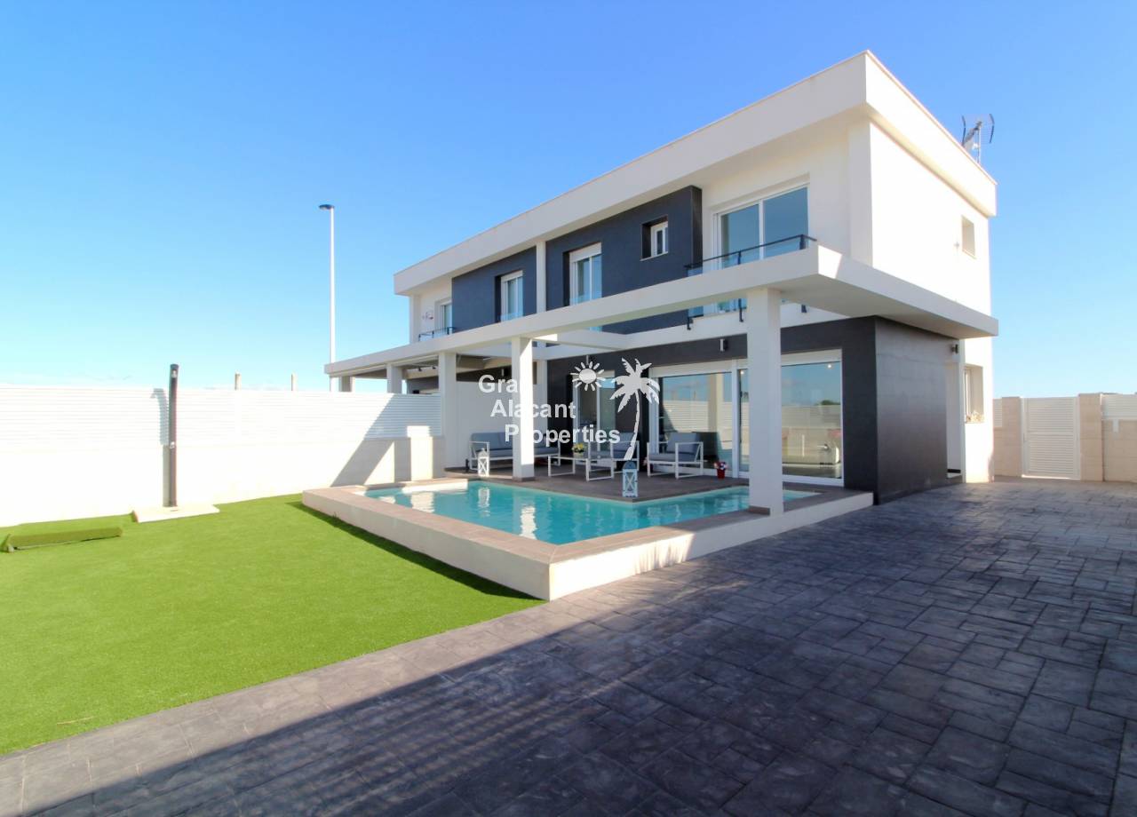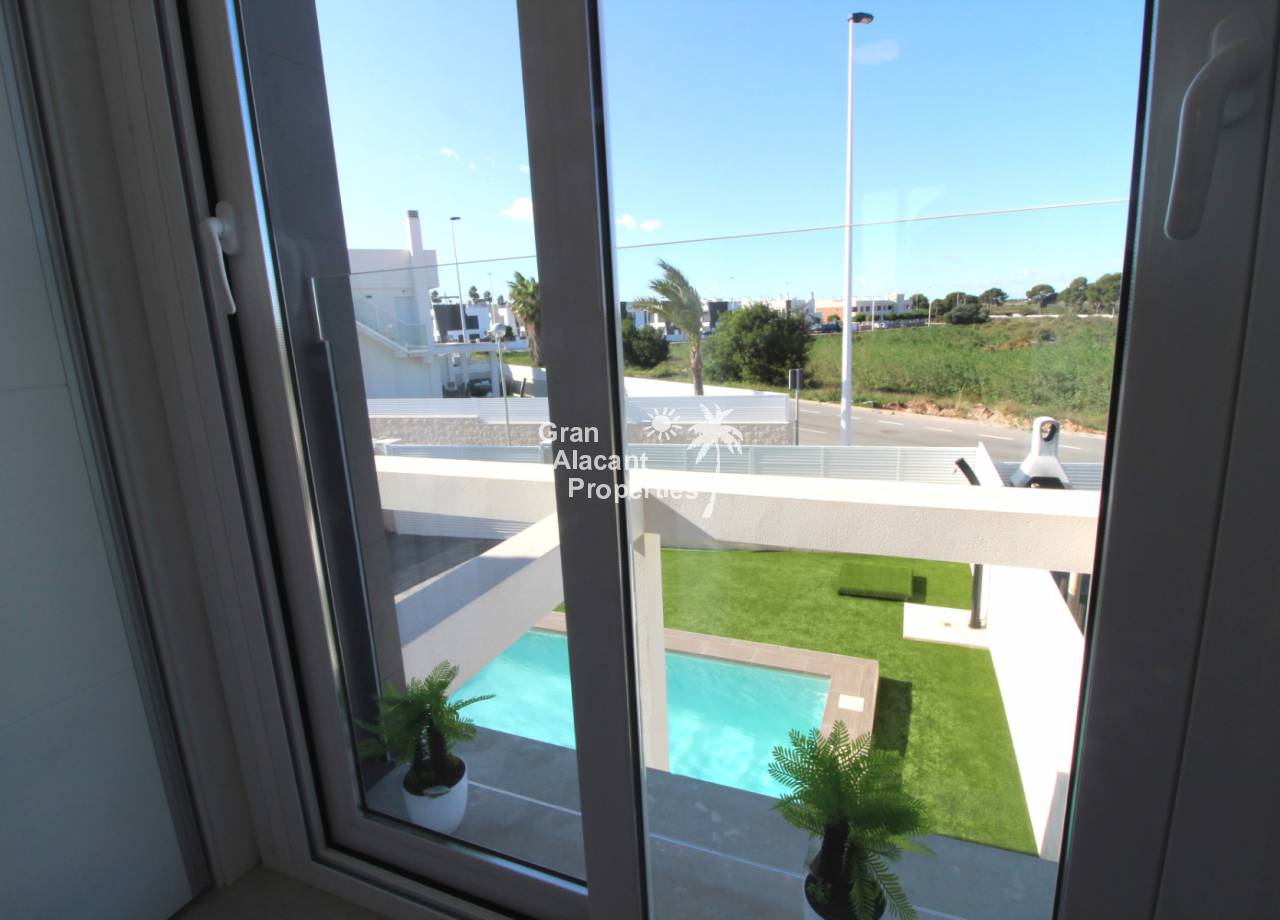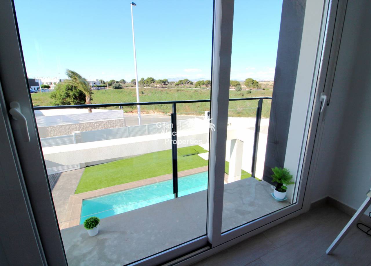 Gran Alacant Properties se enorgullece en ofrecer esta linda villa semi-adosada "Key Ready", una moderna villa de lujo con piscina que se construyó en 2018 en el Bajo Gran Alacant. Esta nueva villa está orientada al suroeste, por lo que es soleada y luminosa y cuenta con acabados modernos de alta calidad que incluyen encimeras de cuarzo y campana extractora de acero inoxidable en la cocina, así como ventanas de doble acristalamiento Climalit, puertas correderas de PVC, calefacción central por conductos y aire acondicionado, Iluminación ambiental LED, sistema de TV Satelitte, un calentador de agua caliente de bajo consumo y mucho más.