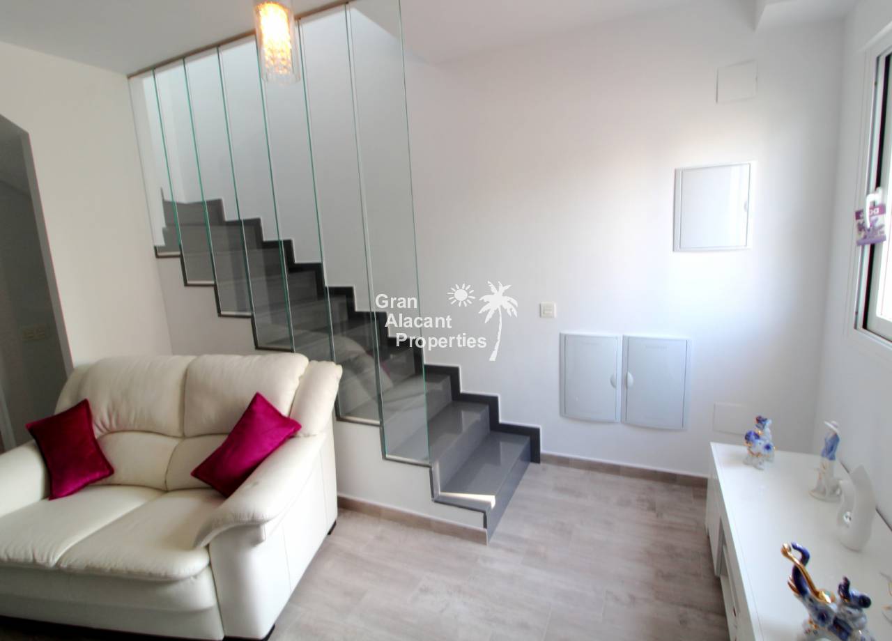 Ubicado en la soleada Costa Blanca de España, Gran Alacant es una comunidad de playa con supermercados, bancos, tiendas, un club de bolos, parque para perros, bares, una venta de botas cada mes, rutas de senderismo y ciclismo, cafeterías, una biblioteca internacional, un mercado todos los jueves, más. ¡Todo lo que necesitas y mucho más! El aeropuerto internacional (ALC) con docenas de vuelos diarios al resto de España, el Reino Unido, Holanda, Escandinavia, el mundo, pero está a solo 10 minutos en coche. La capital de la provincia de Alicante con conexión AVE (tren de alta velocidad) a Madrid, puerto deportivo, casino, universidad, hospitales, tiendas y más está a 14 kilómetros de distancia. ¡No hay necesidad de conducir! Hay un servicio regular de autobuses a Alicante y al puerto pesquero de Santa Pola. Cerca de la costa se encuentra la isla de Tabarca, un divertido viaje en bote para disfrutar de las aguas cristalinas de su playa seguido de un almuerzo tradicional de arroz con caldera. Además, la histórica ciudad de Elche, con su fascinante patrimonio romano y árabe, está cerca y vale la pena explorarla. Todo está en la puerta, lo que hace de Gran Alacant un excelente lugar para vivir o pasar las vacaciones.