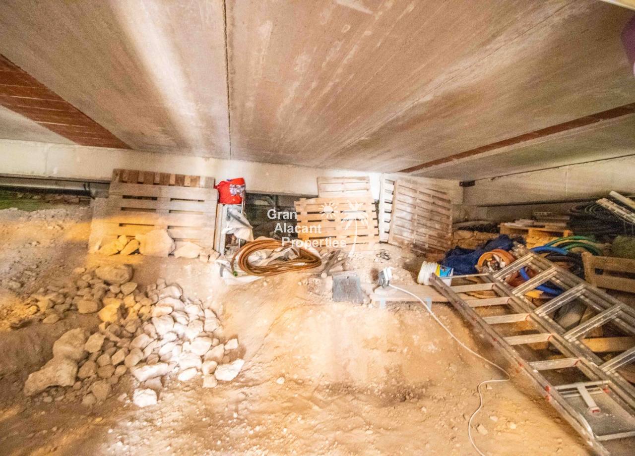 En la azotea se encuentra un amplio solárium con vistas panorámicas que van desde las montañas y el campo hasta el castillo de Alicante y el Mediterráneo. Un pequeño trastero bajo el alero resulta ideal para guardar cojines, sombrillas y otros elementos del jardín.