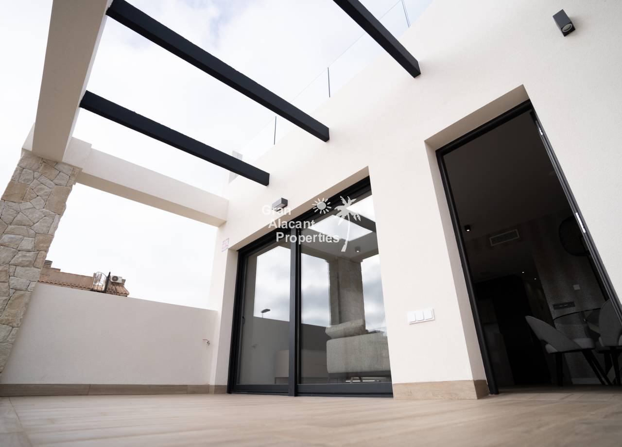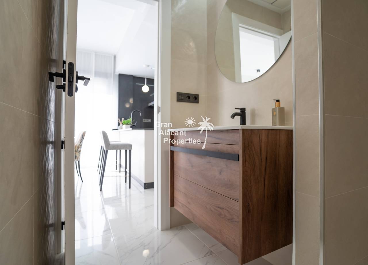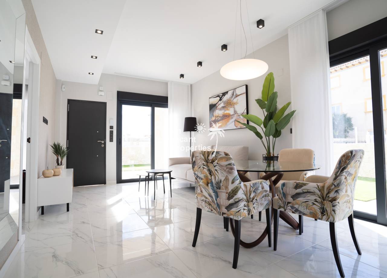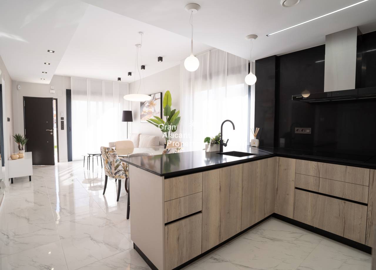 Este complejo residencial de nueva construcción ofrece bungalows modernos a solo 2 km de la playa, ideales para disfrutar de la vida en la Costa Blanca. Con opciones de 2 o 3 dormitorios, cada propiedad cuenta con materiales de alta calidad y acabados modernos. Los bungalows se ofrecen en planta baja con jardín privado o en planta alta con solárium privado, incluyendo detalles exclusivos como preinstalación de aire acondicionado, carpintería exterior de aluminio y sistema de aerotermia para eficiencia energética.