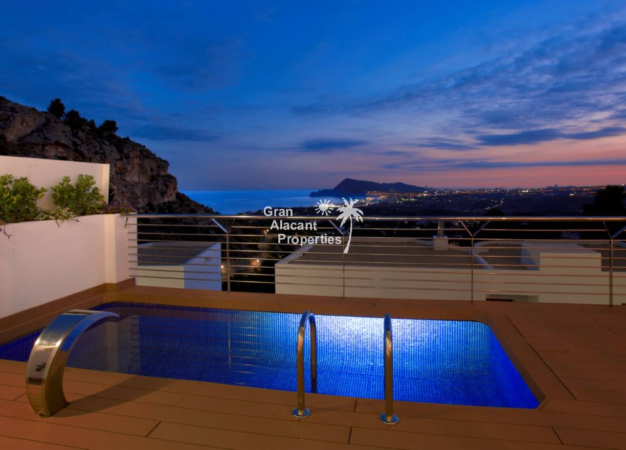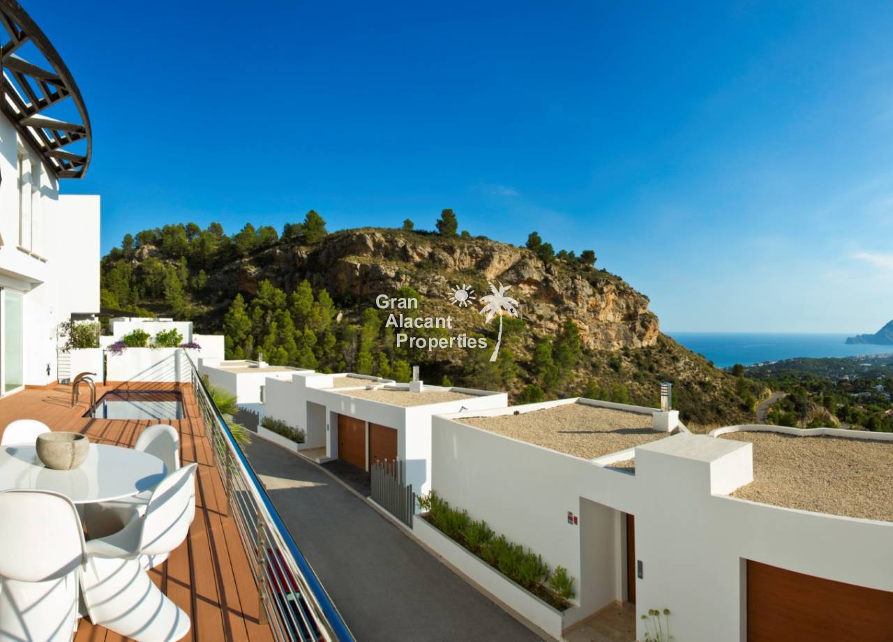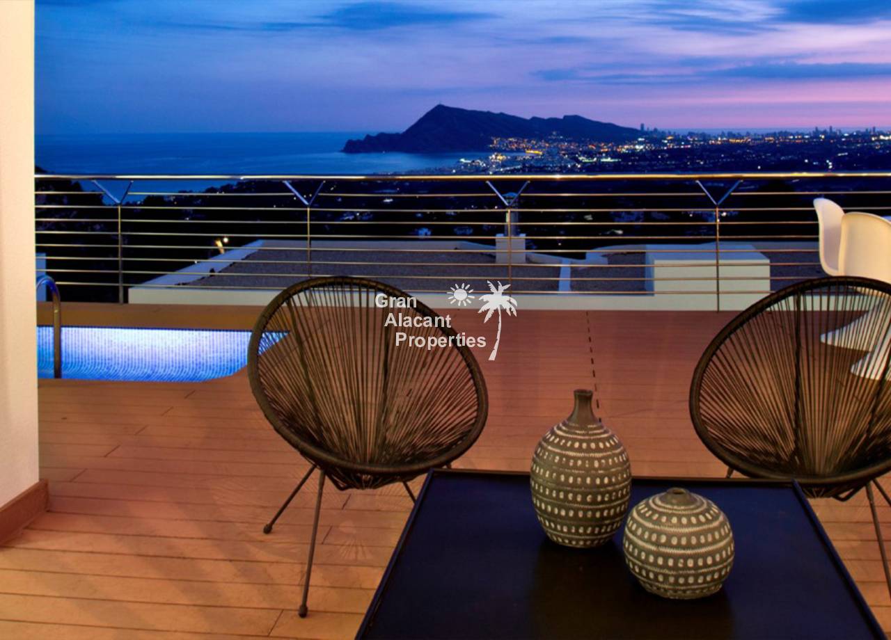 Residencial lleno de luz con grandes espacios interiores, arquitectura única y un entorno natural con una vista panorámica del Mar Mediterráneo y al skyline de Benidorm. Un complejo residencial cerrado, con viviendas de arquitectura de vanguardia, independientes entre si, dónde cada una de ellas tiene un diseño exclusivo que la convierte en una pieza única. Las casas destacan por su luz natural y sus grandes espacios interiores, con distribuciones de 3, 4 y 5 dormitorios, 4, 5 y 6 baños, cocina abierta, salones y comedores de varias formas, terraza, piscina, barbacoa, garaje cerrado y ascensor.