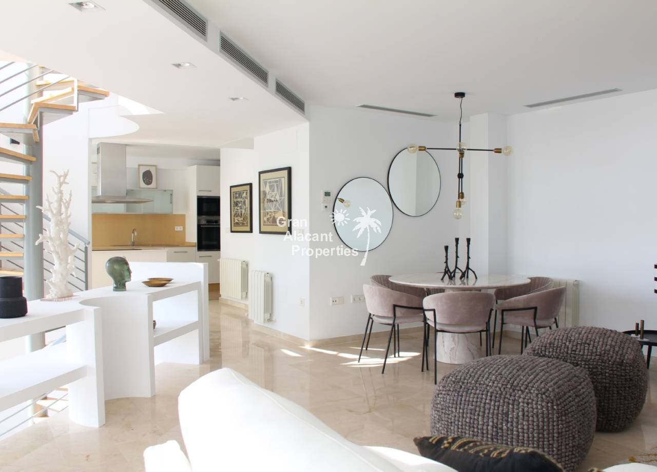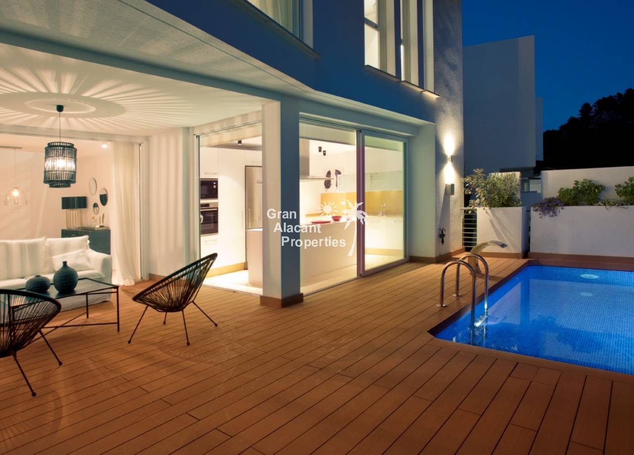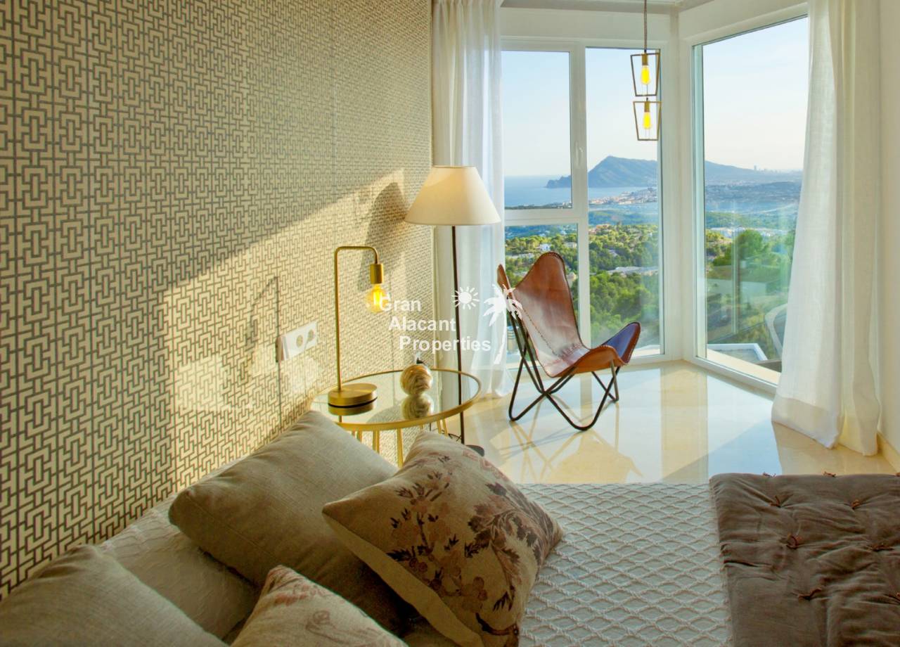 Residencial lleno de luz con grandes espacios interiores, arquitectura única y un entorno natural con una vista panorámica del Mar Mediterráneo y al skyline de Benidorm. Un complejo residencial cerrado, con viviendas de arquitectura de vanguardia, independientes entre si, dónde cada una de ellas tiene un diseño exclusivo que la convierte en una pieza única. Las casas destacan por su luz natural y sus grandes espacios interiores, con distribuciones de 3, 4 y 5 dormitorios, 4, 5 y 6 baños, cocina abierta, salones y comedores de varias formas, terraza, piscina, barbacoa, garaje cerrado y ascensor.