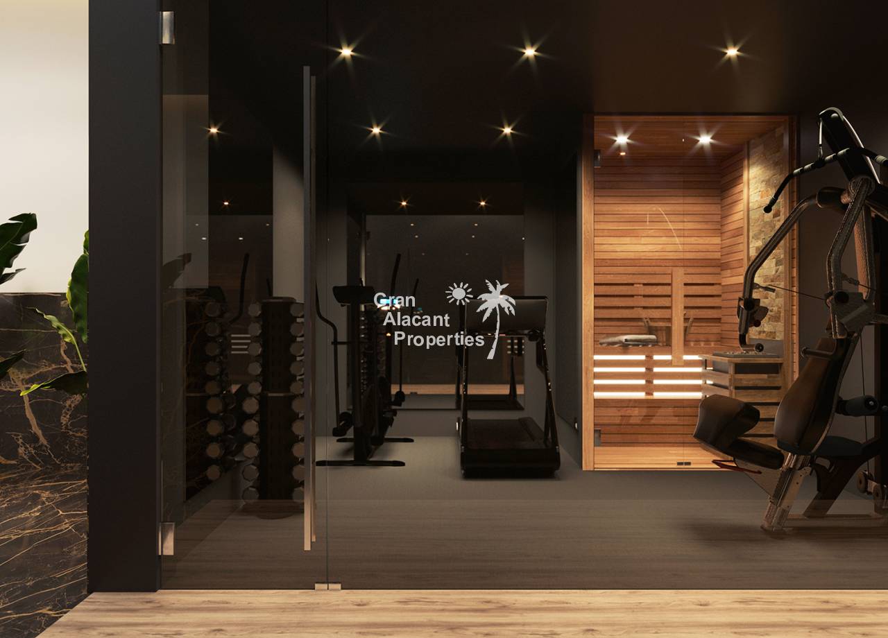 Las áreas comunes están diseñadas para el bienestar y el ocio, incluyendo un gimnasio totalmente equipado y una sauna para el relax. La piscina comunitaria con área infantil y la zona de playa exterior ofrecen espacios perfectos para disfrutar durante todo el año. El edificio dispone también de ascensor para 8 personas, facilitando el acceso a todas las viviendas.