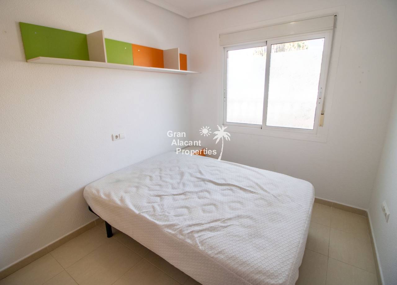 Este apartamento se encuentra en una urbanización en la parte baja de Gran Alacant y cuenta con piscina y zonas ajardinadas comunitarias. Son un verdadero plus, un lugar acogedor para refrescarse en los días de verano y socializar con los vecinos.
