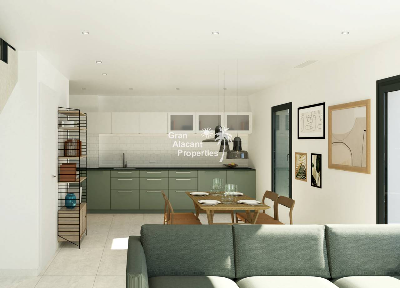 Ubicado en la atractiva zona de Gran Alacant, este conjunto residencial ofrece 57 viviendas que combinan comodidad y estilo. Las opciones de tipología incluyen adosados y viviendas pareadas, adaptándose a diversas necesidades familiares. La ubicación es ideal para quienes buscan un equilibrio entre tranquilidad y accesibilidad, con el mar a solo 3 km y el aeropuerto a 9 km, facilitando tanto el ocio como los desplazamientos. Las viviendas están diseñadas para ofrecer un ambiente acogedor y funcional, con una distribución que maximiza el espacio y la luz natural.
