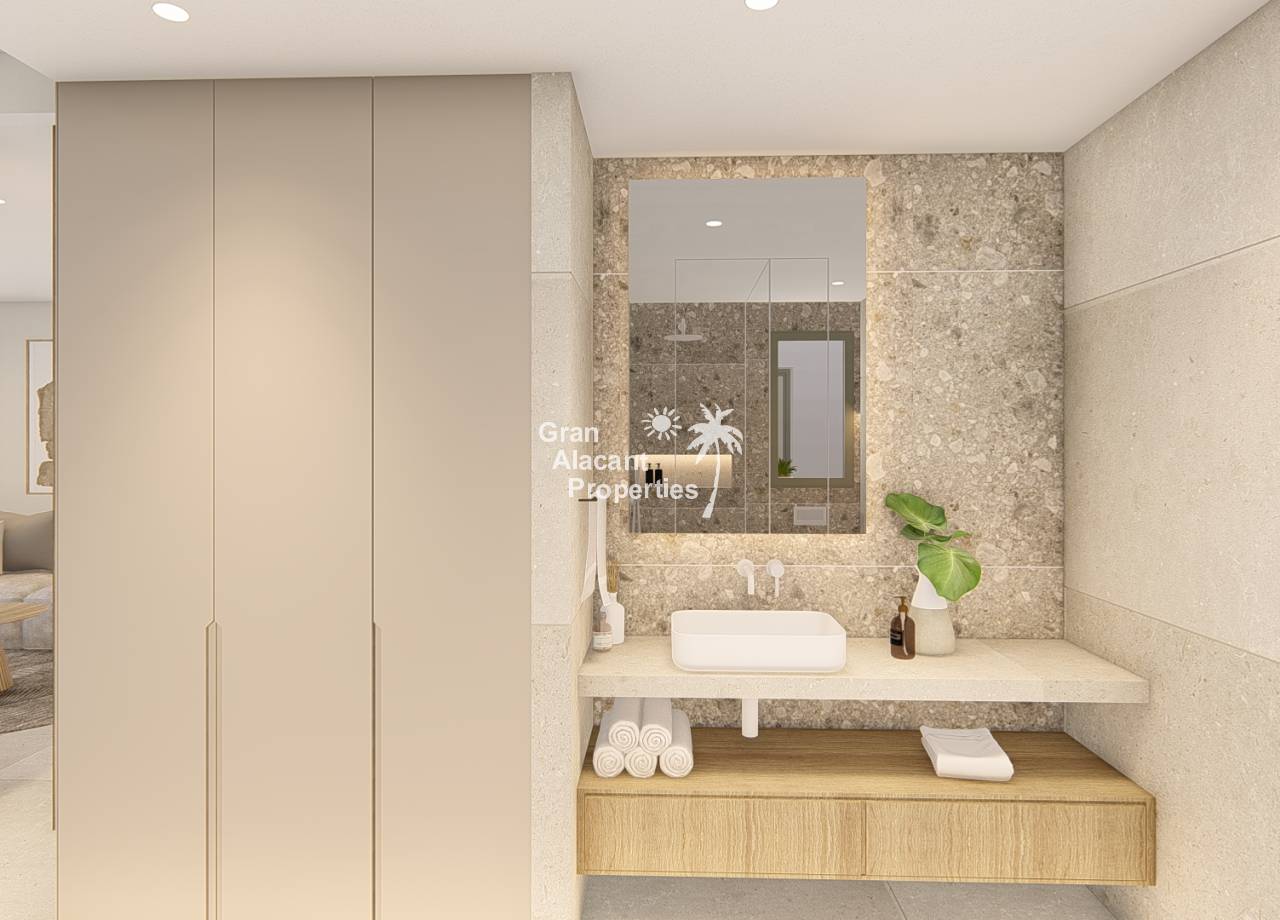 El interior de las viviendas está diseñado con un enfoque en la funcionalidad y el confort. Los suelos de gres porcelánico aportan un toque de elegancia y son fáciles de mantener. Las viviendas están equipadas con aire acondicionado, garantizando un ambiente agradable durante todo el año. Las persianas eléctricas y el videoportero añaden un nivel extra de comodidad y seguridad. La cocina, equipada con electrodomésticos modernos, se integra perfectamente en el espacio, facilitando la vida diaria. Los armarios empotrados en los dormitorios ofrecen un almacenamiento eficiente y ordenado.