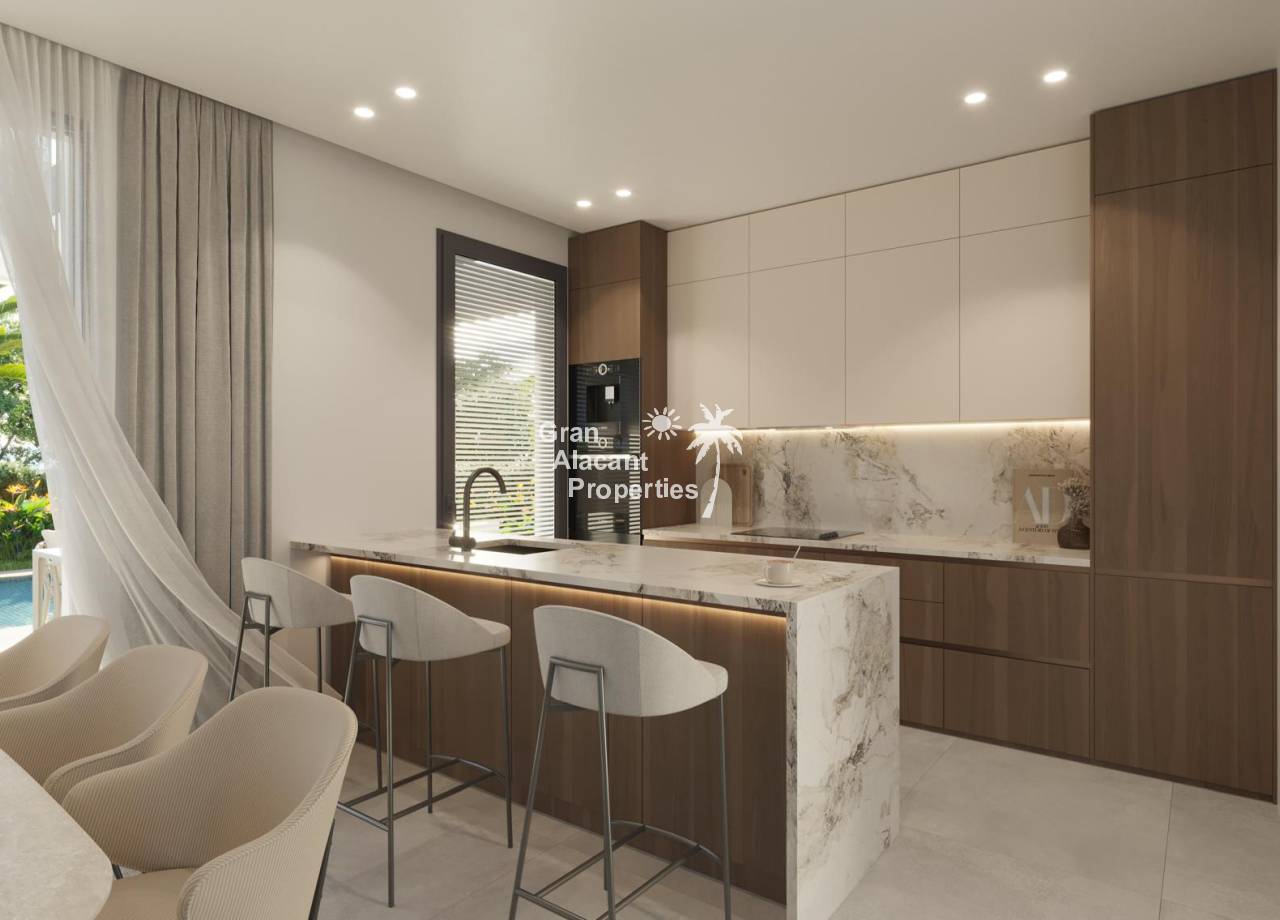 El interior de estas viviendas combina diseño moderno con funcionalidad. Las opciones de distribución incluyen viviendas de 3, 4 y hasta 6 dormitorios, adaptándose a diferentes necesidades familiares. Los baños, disponibles en configuraciones de 3 o 4, están equipados con calefacción por suelo radiante, asegurando confort durante todo el año. La cocina, completamente amueblada y equipada con electrodomésticos de alta gama, se integra perfectamente en el espacio de vida. Las viviendas cuentan con aire acondicionado, domótica y persianas eléctricas, ofreciendo un ambiente cómodo y seguro. Los armarios empotrados proporcionan un almacenamiento eficiente, mientras que el suelo cerámico añade un toque de elegancia y facilidad de mantenimiento.