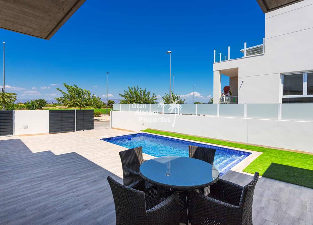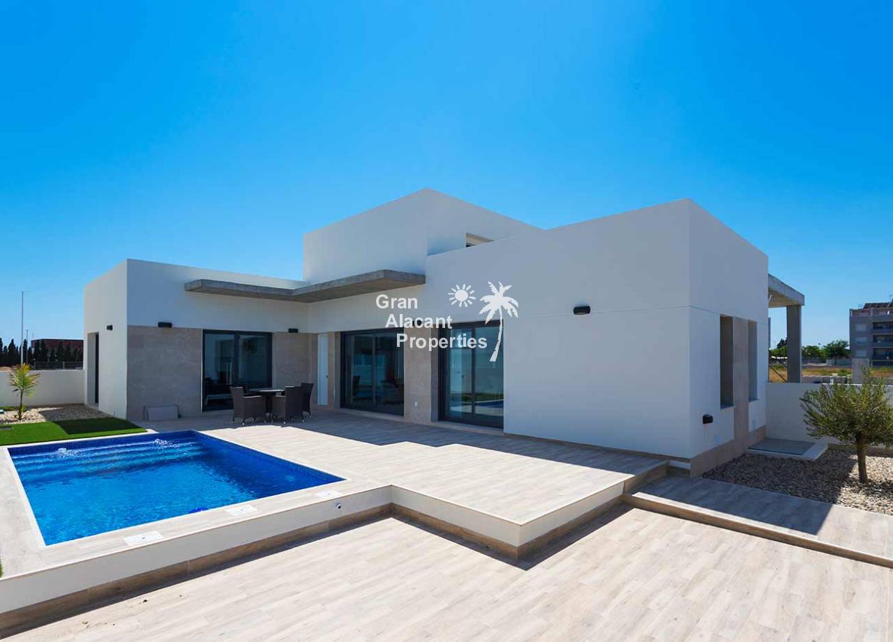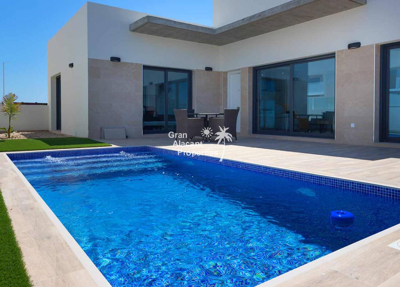 Villas de nueva construcción en una sola planta en la parte nueva de Daya Nueva. A pocos minutos andando del centro del pueblo. La propiedad consta de 3 dormitorios, 2 baños y una piscina privada de 18m2. Salón / comedor con techo de doble altura, cocina abierta, luz natural y opción para solarium. El dormitorio principal tiene opción de walk in closet y baños en suite.