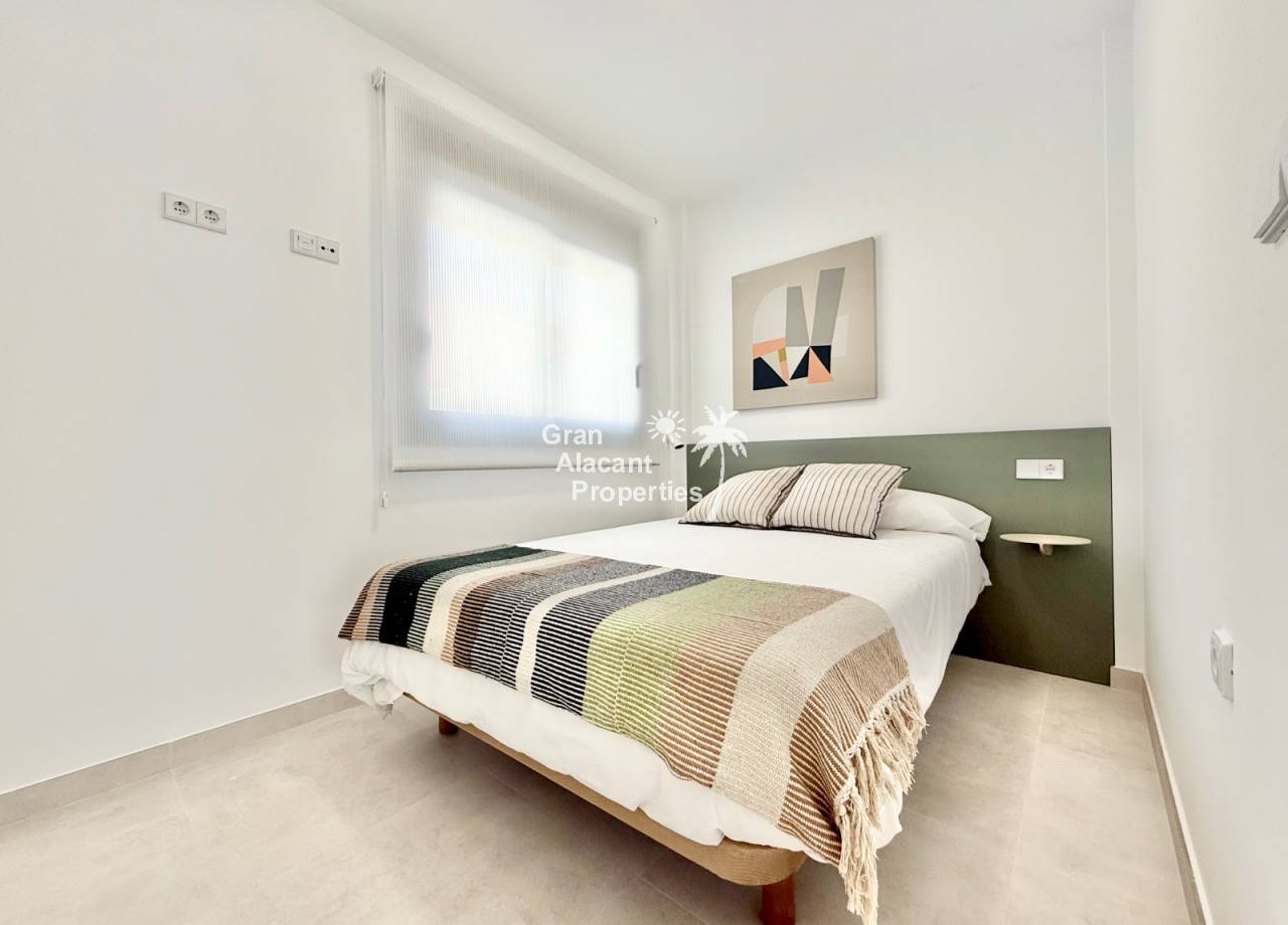 El interior de los bungalows está diseñado con atención al detalle, incorporando características modernas que aseguran comodidad y estilo. Los suelos de gres porcelánico aportan un toque elegante y son fáciles de mantener. Las persianas eléctricas y los electrodomésticos incluidos facilitan la vida diaria, mientras que los armarios empotrados ofrecen un almacenamiento eficiente. La preinstalación de aire acondicionado permite a los residentes personalizar el clima interior según sus preferencias, garantizando un ambiente agradable durante todo el año.