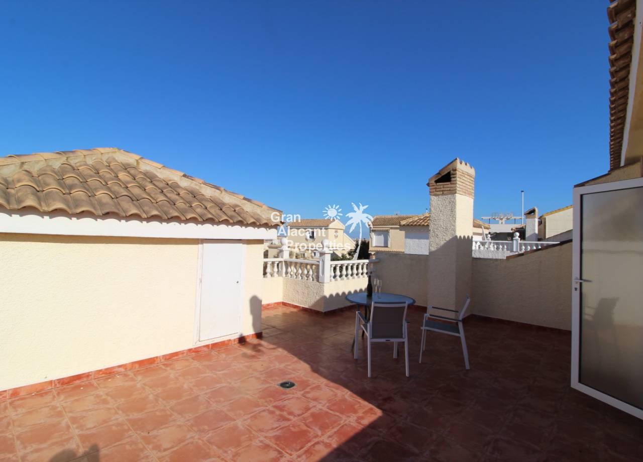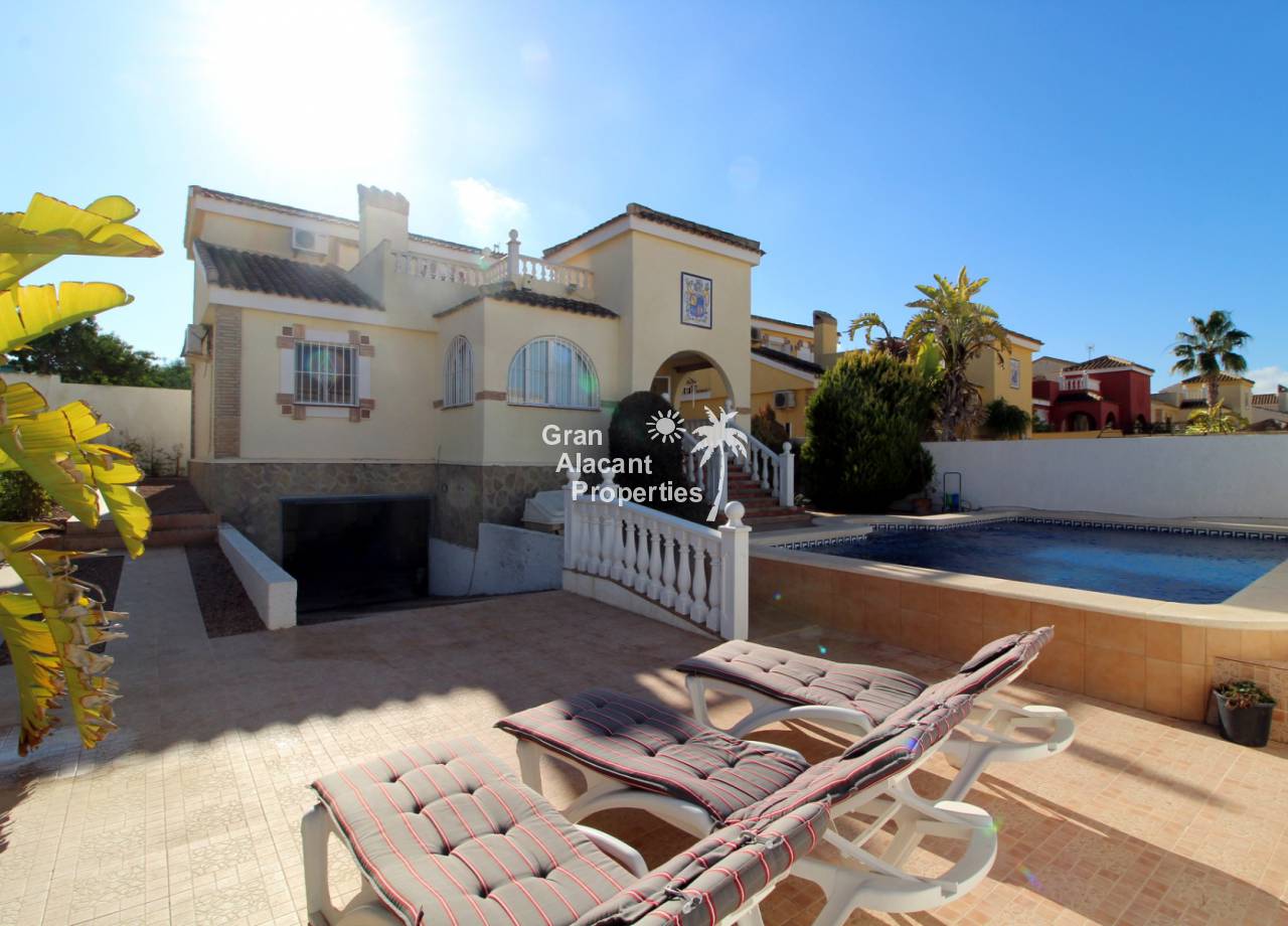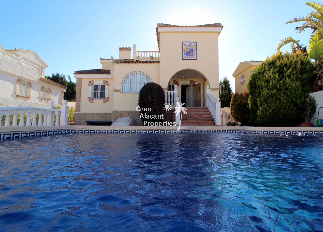 Ubicada en el codiciado barrio de Monte y Mar bajo de Gran Alacant en la soleada Costa Blanca de España, esta hermosa villa independiente de estilo "Torreón" viene con una piscina privada y un garaje.