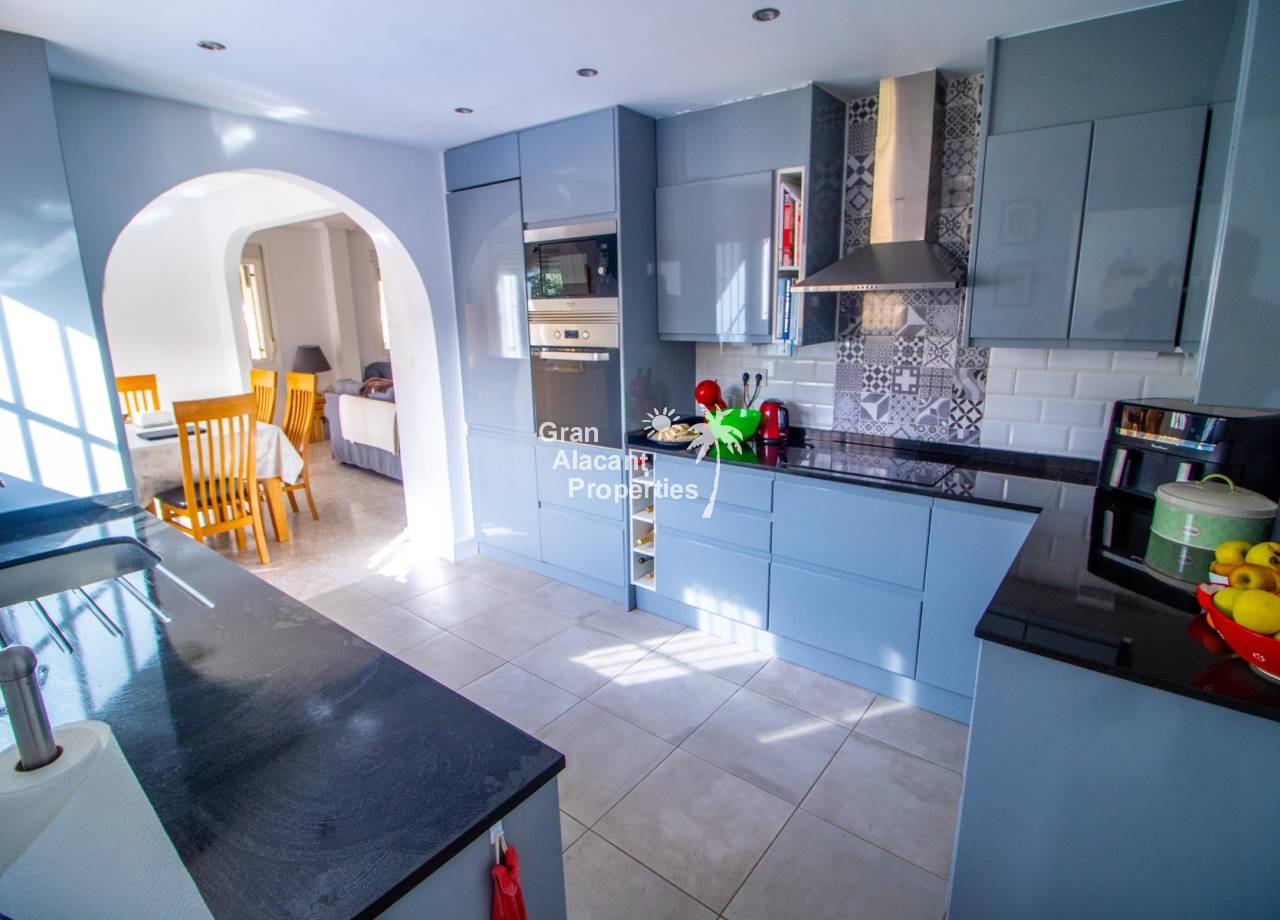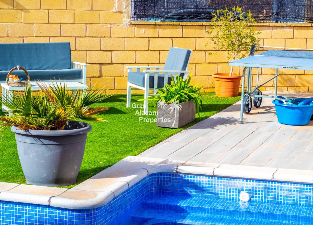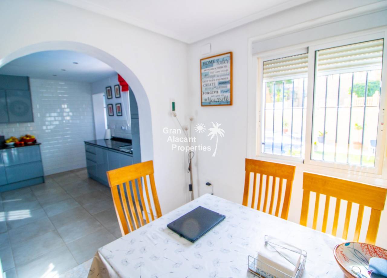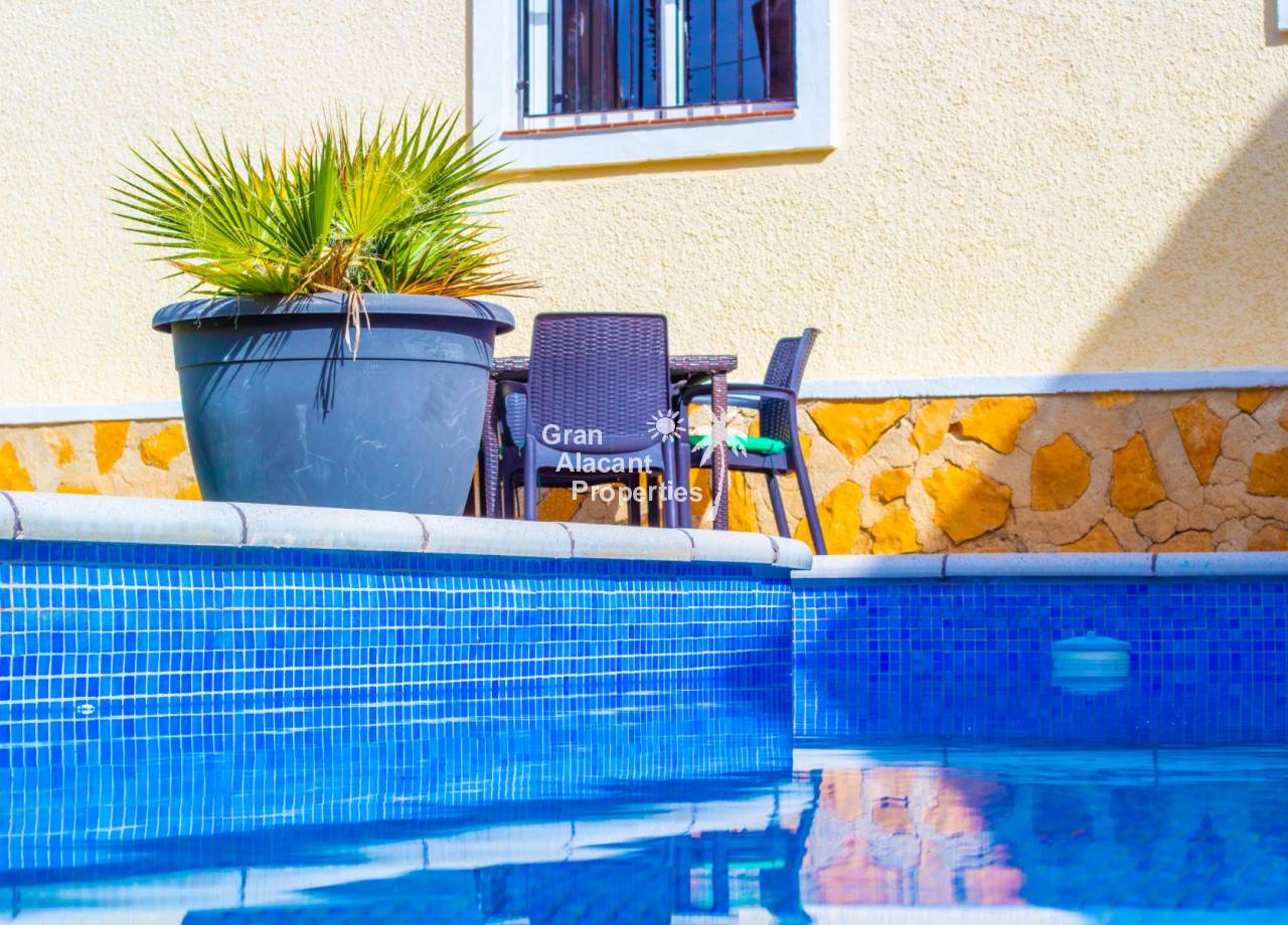 Exclusiva de Gran Alacant Properties. Este chalet independiente de estilo “Luna”, muy bien presentado y listo para entrar a vivir, con 3 dormitorios, 3 baños y piscina privada en Montecid, está esperando a su nuevo propietario. Ubicado en una amplia parcela en forma de abanico de 356 m² dentro de una comunidad muy demandada, esta vivienda ofrece espacio, luz, vistas a la montaña y mucho sitio para familia, invitados y ocio. Solo tiene que traer la maleta y empezar a disfrutar de la vida en la Costa Blanca.