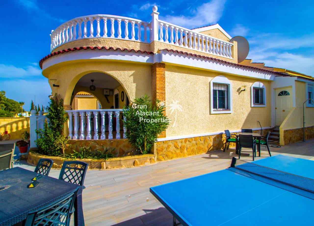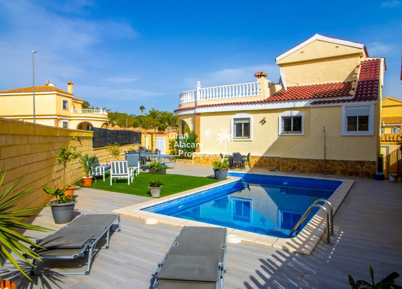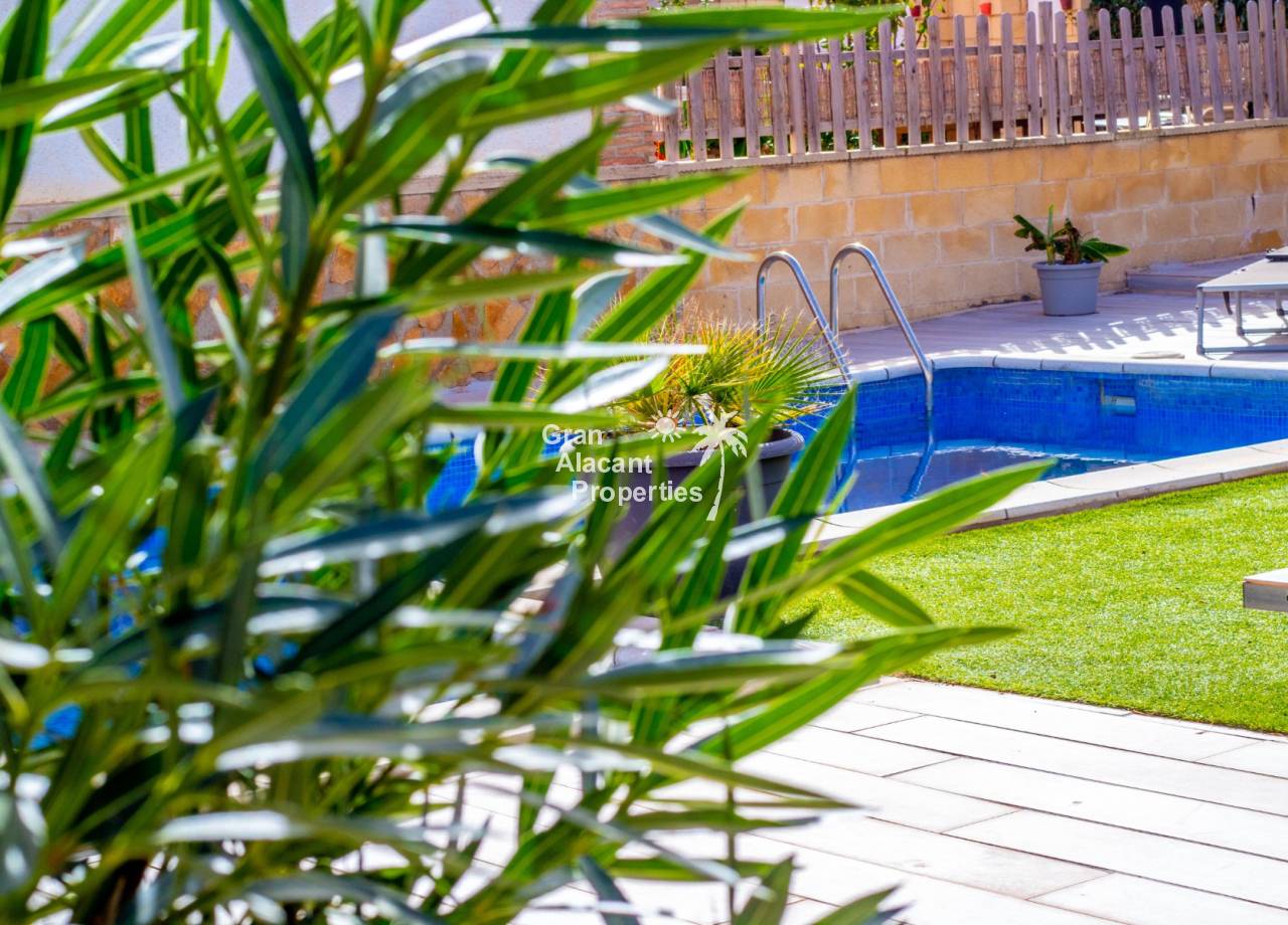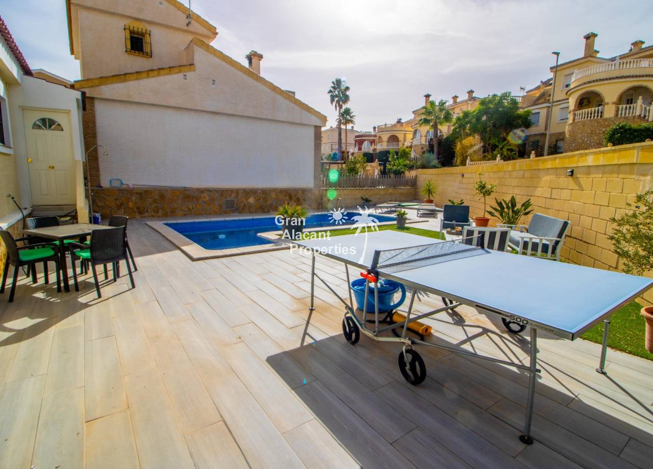Exclusiva de Gran Alacant Properties. Este chalet independiente de estilo “Luna”, muy bien presentado y listo para entrar a vivir, con 3 dormitorios, 3 baños y piscina privada en Montecid, está esperando a su nuevo propietario. Ubicado en una amplia parcela en forma de abanico de 356 m² dentro de una comunidad muy demandada, esta vivienda ofrece espacio, luz, vistas a la montaña y mucho sitio para familia, invitados y ocio. Solo tiene que traer la maleta y empezar a disfrutar de la vida en la Costa Blanca.