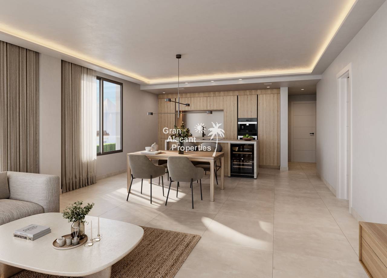 El interior de las viviendas en este residencial de La Sella está cuidadosamente diseñado para ofrecer el máximo confort y funcionalidad. Las opciones de distribución incluyen viviendas de 2 y 3 dormitorios, todas con 2 baños, lo que las hace ideales tanto para familias como para parejas. Los acabados de alta calidad, como los suelos de gres porcelánico, aportan un toque de modernidad y elegancia. La inclusión de electrodomésticos modernos asegura que cada hogar esté listo para ser habitado desde el primer día. Los armarios empotrados proporcionan un almacenamiento eficiente, manteniendo los espacios ordenados y libres de desorden. Además, cada vivienda cuenta con un garaje, ofreciendo comodidad y seguridad para los vehículos de los residentes.