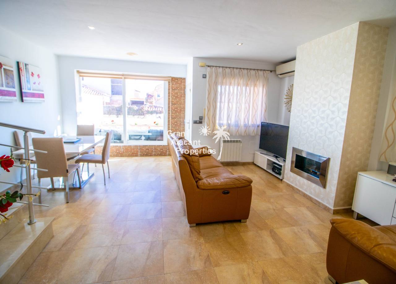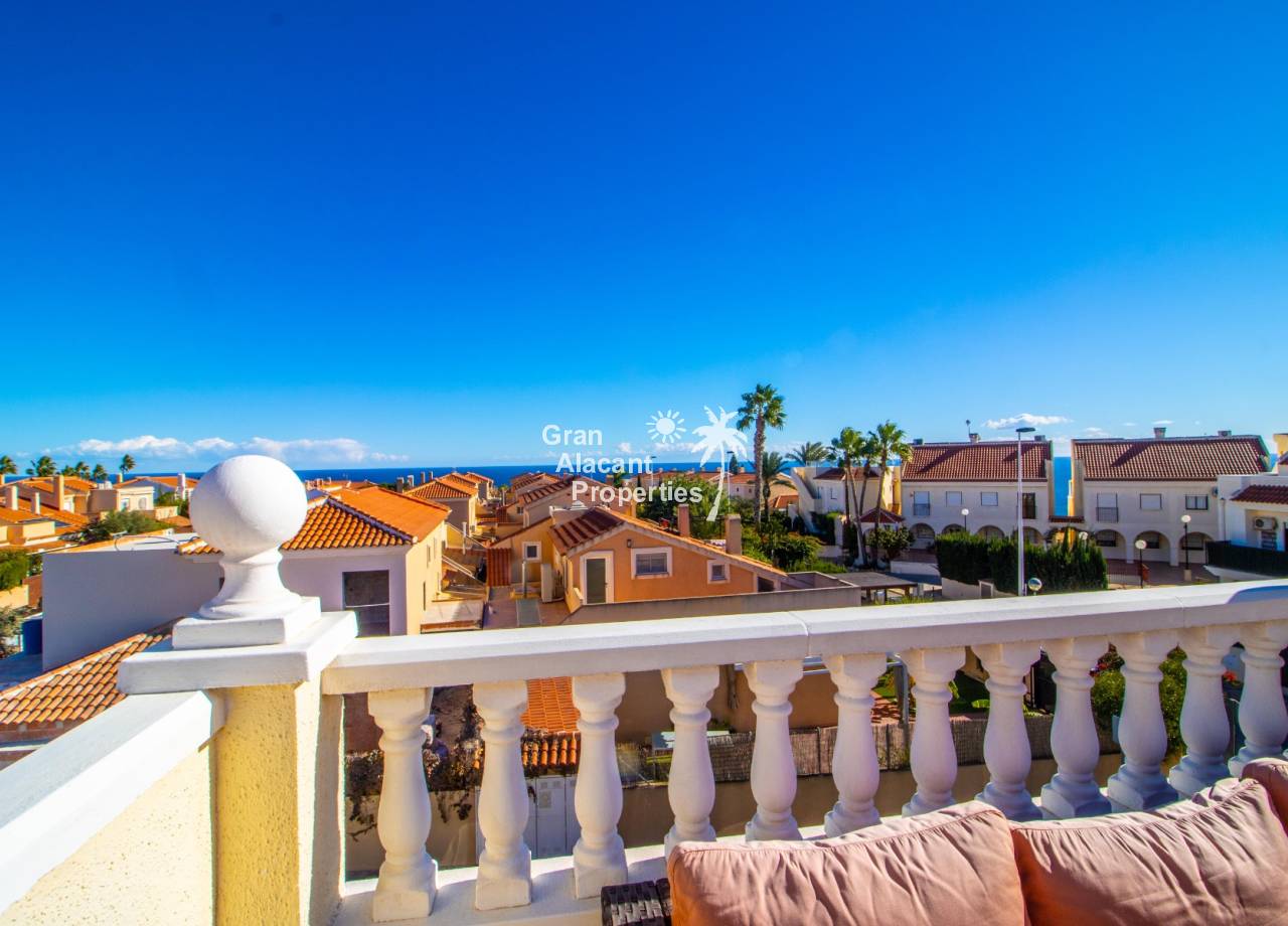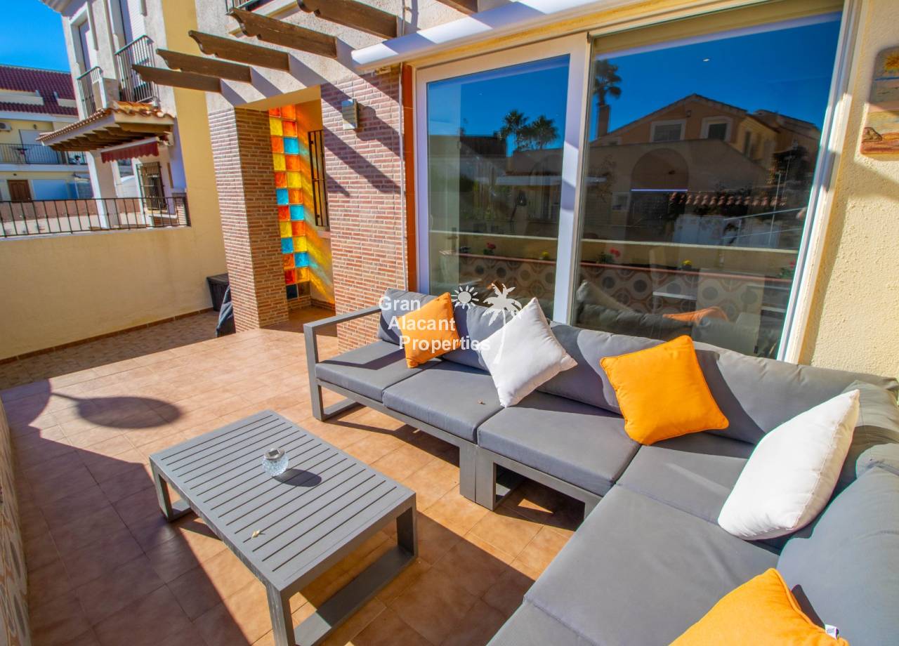 Buscas tu pedacito de paraíso en Gran Alacant con estilo y un toque de glamour. No te apetece meterte en obras. Aquí lo tienes. Descubre este precioso chalet pareado renovado de 3 dormitorios y 2 baños situado en Brisas del Faro/Olivo de Oro, una de las comunidades cerradas más exclusivas de Gran Alacant. Con elegantes mejoras, vistas al mar Mediterráneo y aproximadamente 110 m² de espacio luminoso y fácil de disfrutar, esta propiedad ofrece todo el estilo y la privacidad de un chalet independiente pero sin el mantenimiento. Sofisticada, serena y perfectamente ubicada.