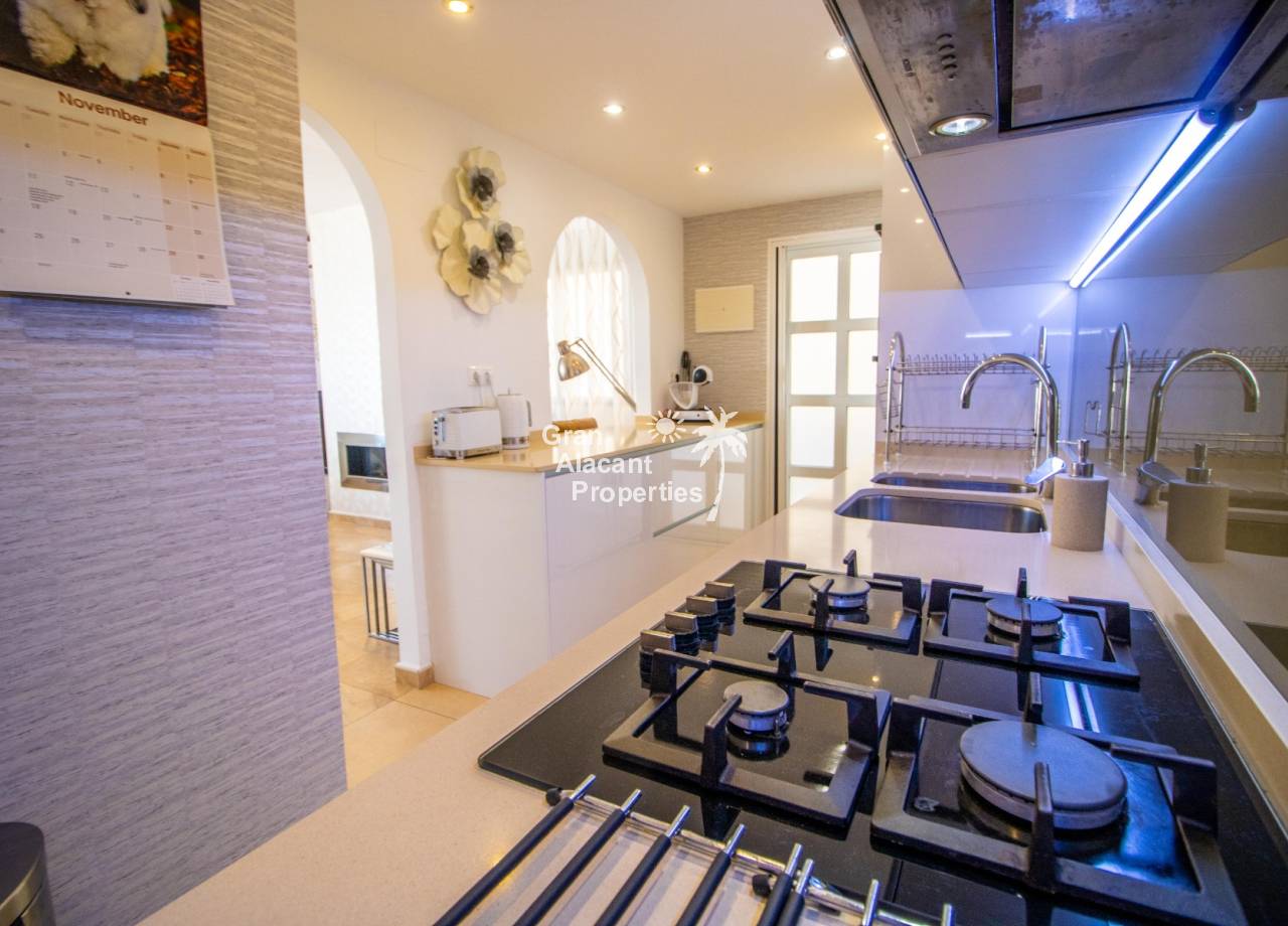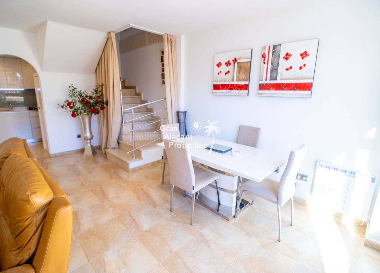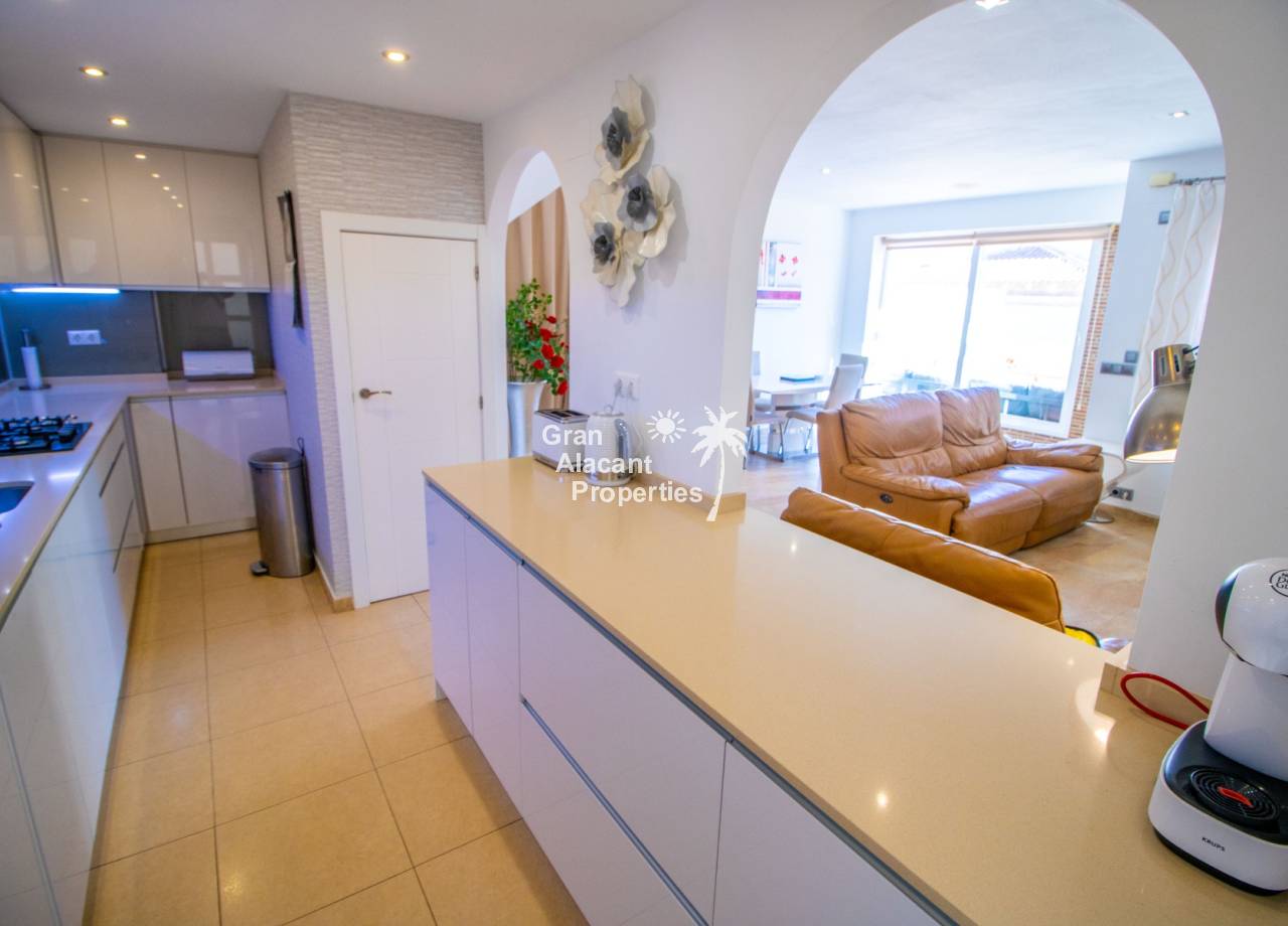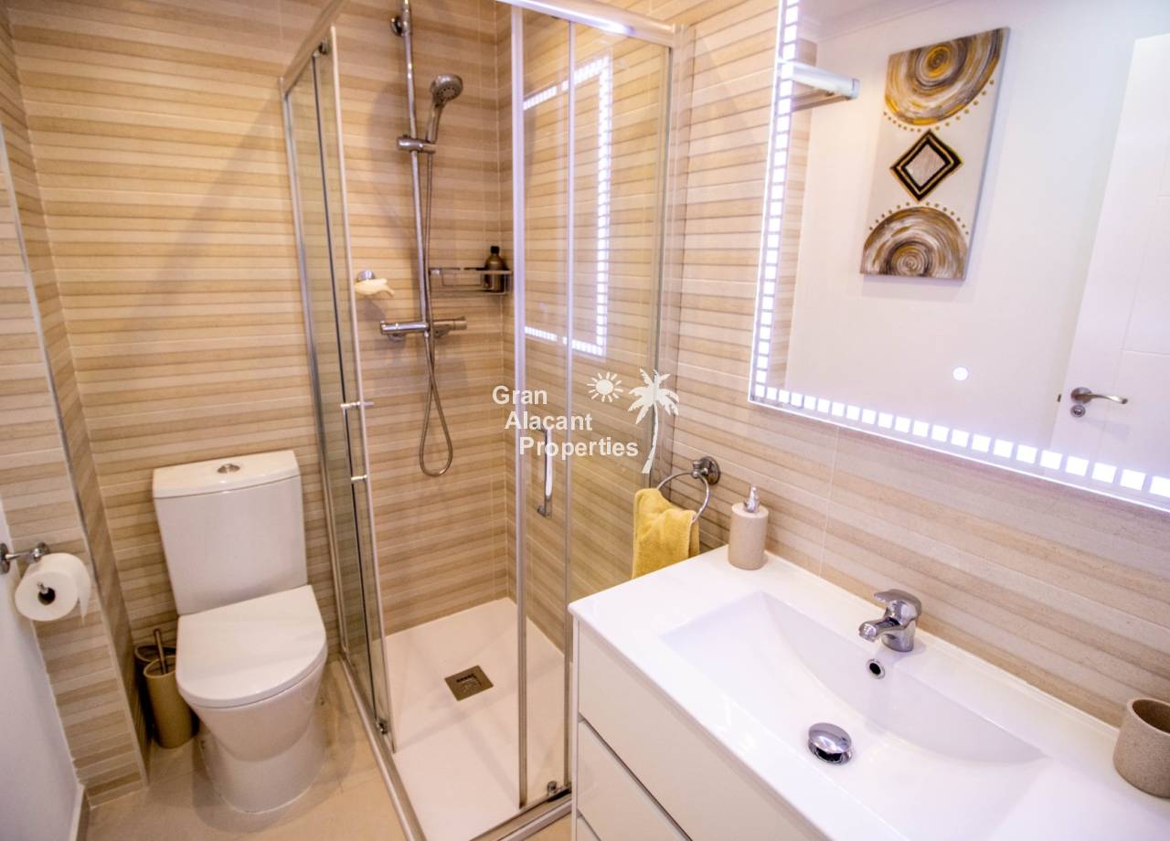 Buscas tu pedacito de paraíso en Gran Alacant con estilo y un toque de glamour. No te apetece meterte en obras. Aquí lo tienes. Descubre este precioso chalet pareado renovado de 3 dormitorios y 2 baños situado en Brisas del Faro/Olivo de Oro, una de las comunidades cerradas más exclusivas de Gran Alacant. Con elegantes mejoras, vistas al mar Mediterráneo y aproximadamente 110 m² de espacio luminoso y fácil de disfrutar, esta propiedad ofrece todo el estilo y la privacidad de un chalet independiente pero sin el mantenimiento. Sofisticada, serena y perfectamente ubicada.