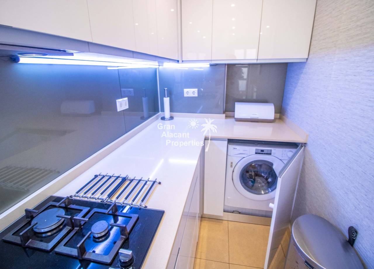 Situado en la Costa Blanca española, Gran Alacant es una animada comunidad de playa con supermercados, bancos, tiendas, club de bolos, parque canino, bares, un mercadillo mensual de segunda mano, rutas de senderismo y ciclismo, cafeterías, una biblioteca internacional, un mercado semanal, academias de buceo y mucho más. ¡Todo lo que necesitas y un sinfín de opciones para disfrutar! El Aeropuerto de Alicante (ALC), con decenas de vuelos diarios al resto de España, Reino Unido y el norte de Europa, está a solo 10 minutos en coche. La capital provincial, Alicante, con la conexión AVE (alta velocidad) a Madrid, puerto deportivo, casino, universidad, hospitales, museos, el precioso Castillo de Santa Bárbara y un sinfín de tiendas y restaurantes, se encuentra a 14 kilómetros. No es necesario conducir: hay servicio de autobús a Alicante y al cercano puerto pesquero de Santa Pola. Santa Pola alberga el Club Náutico de Santa Pola y es un destino muy popular para los amantes de los deportes náuticos, como la vela, el paddle surf, el kitesurf, el windsurf y mucho más. Además, hay decenas de ferris diarios desde el puerto de Santa Pola a la isla de Tabarca, la isla habitada más pequeña de España. Por otra parte, la histórica ciudad de Elche, con su fascinante herencia romana y musulmana, está muy cerca y merece la pena visitarla. Todo está a tu alcance, lo que convierte a Gran Alacant en un lugar perfecto para vivir o para pasar las vacaciones.