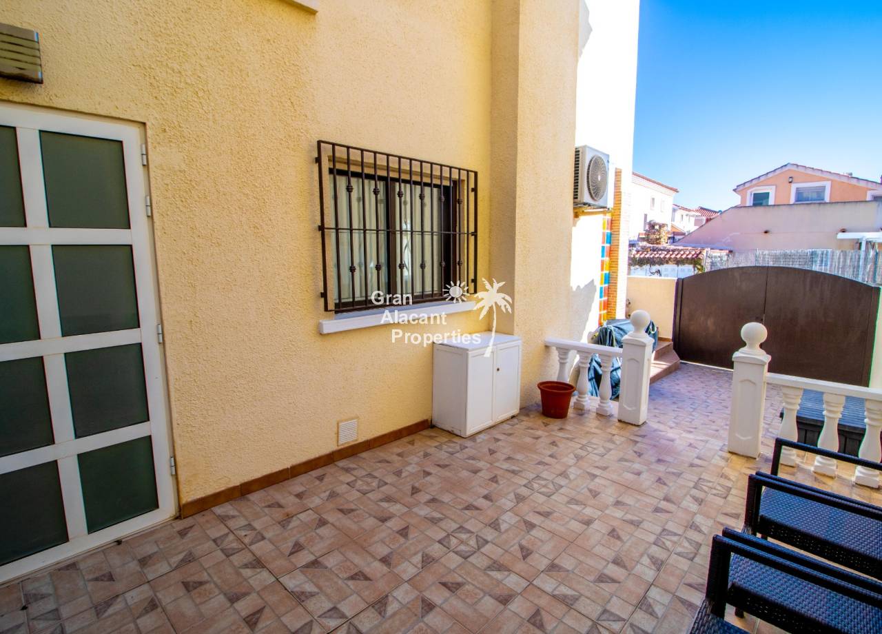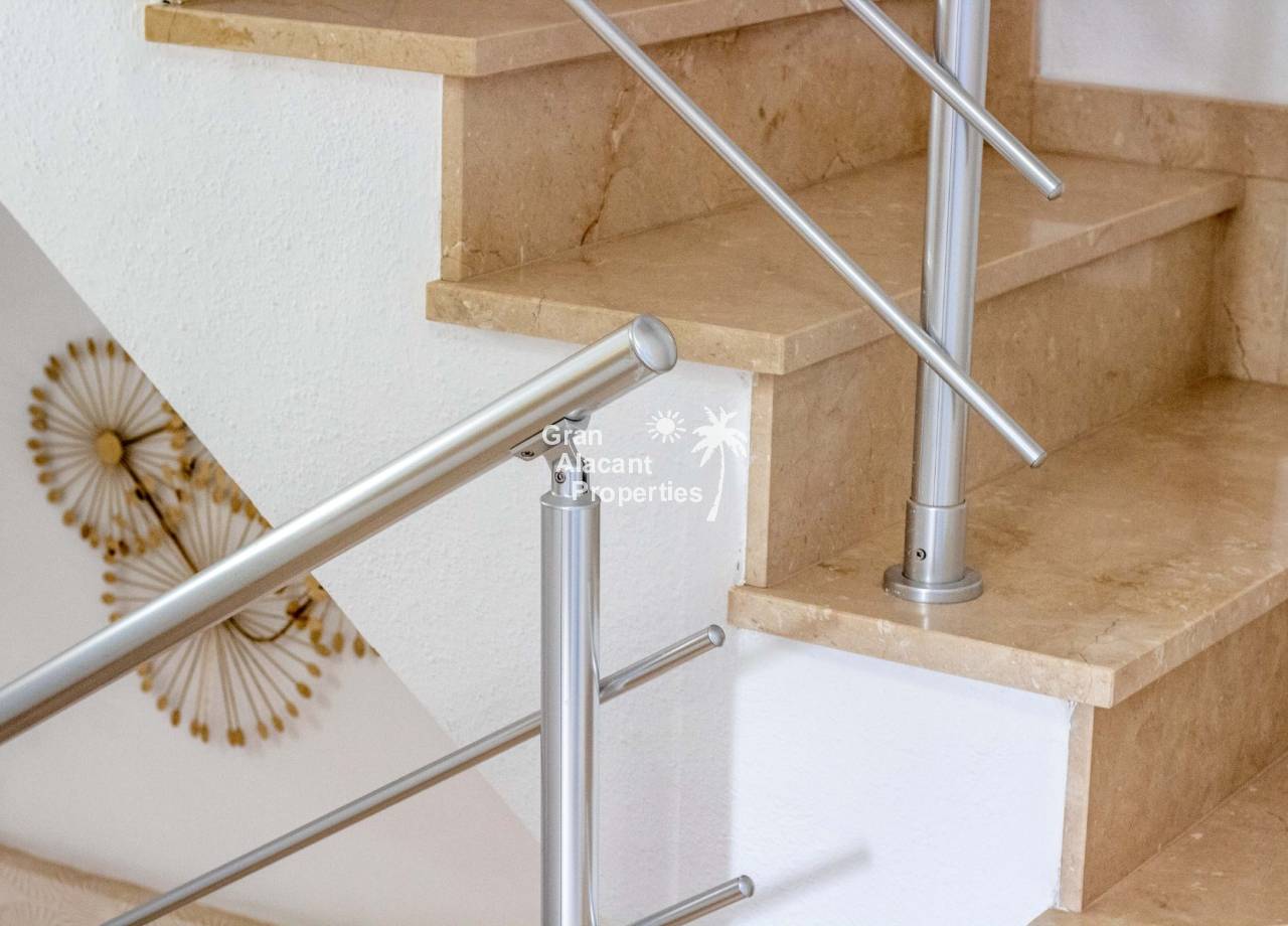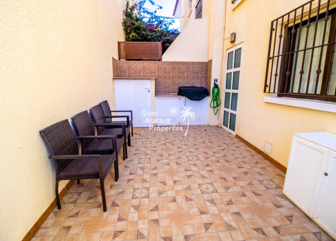 Buscas tu pedacito de paraíso en Gran Alacant con estilo y un toque de glamour. No te apetece meterte en obras. Aquí lo tienes. Descubre este precioso chalet pareado renovado de 3 dormitorios y 2 baños situado en Brisas del Faro/Olivo de Oro, una de las comunidades cerradas más exclusivas de Gran Alacant. Con elegantes mejoras, vistas al mar Mediterráneo y aproximadamente 110 m² de espacio luminoso y fácil de disfrutar, esta propiedad ofrece todo el estilo y la privacidad de un chalet independiente pero sin el mantenimiento. Sofisticada, serena y perfectamente ubicada.