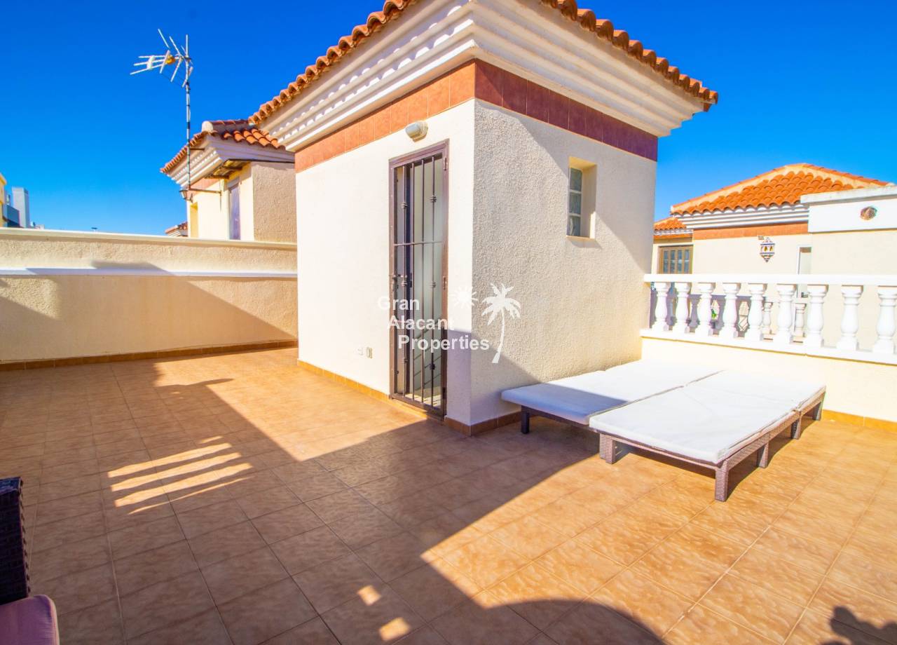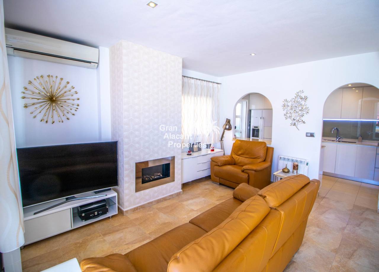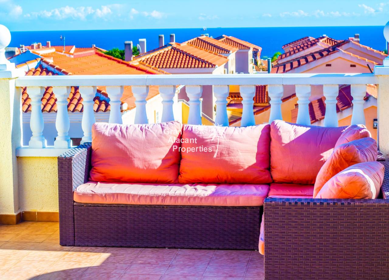 Buscas tu pedacito de paraíso en Gran Alacant con estilo y un toque de glamour. No te apetece meterte en obras. Aquí lo tienes. Descubre este precioso chalet pareado renovado de 3 dormitorios y 2 baños situado en Brisas del Faro/Olivo de Oro, una de las comunidades cerradas más exclusivas de Gran Alacant. Con elegantes mejoras, vistas al mar Mediterráneo y aproximadamente 110 m² de espacio luminoso y fácil de disfrutar, esta propiedad ofrece todo el estilo y la privacidad de un chalet independiente pero sin el mantenimiento. Sofisticada, serena y perfectamente ubicada.