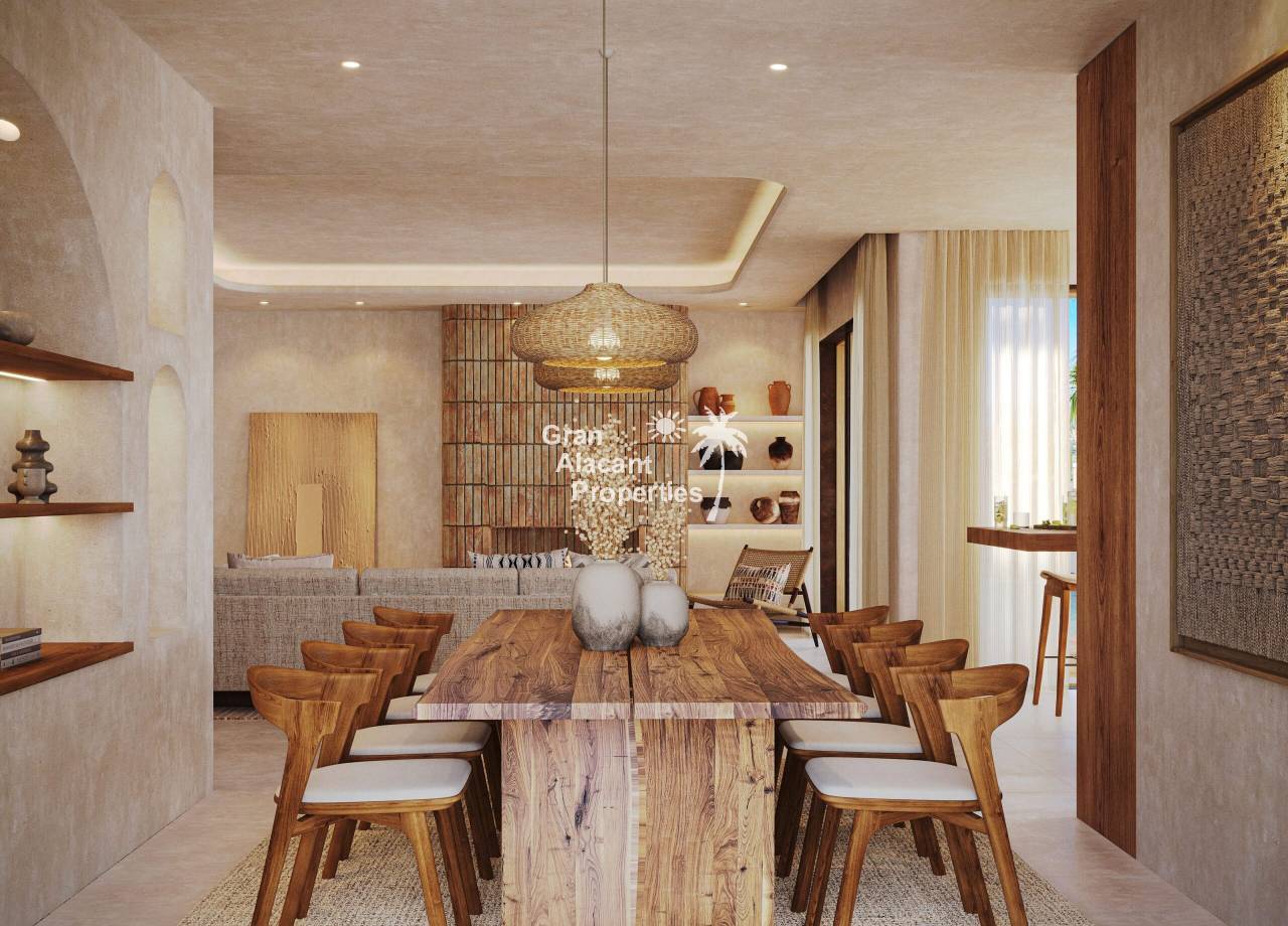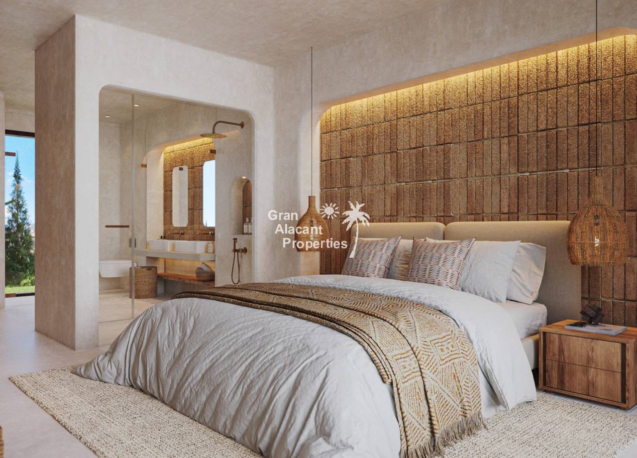 El interior de la villa está diseñado para ofrecer comodidad y funcionalidad. Dispone de tres dormitorios, todos ellos con armarios empotrados que optimizan el espacio de almacenamiento. Los cuatro baños están equipados con calefacción por suelo radiante, asegurando un confort térmico óptimo durante todo el año. La cocina está equipada con electrodomésticos modernos, facilitando las tareas diarias y contribuyendo a un estilo de vida práctico y eficiente. El diseño interior se centra en la amplitud y la luminosidad, creando un ambiente acogedor y elegante.