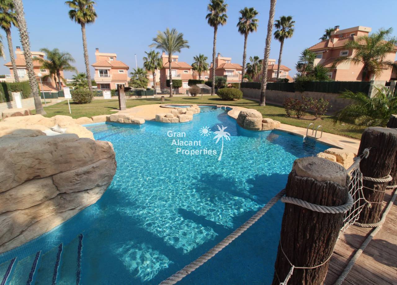 Ubicada en la buena comunidad cerrada de "Isla de Izaro" Gran Alacant en la soleada Costa Blanca de España, esta hermosa villa independiente viene con un gran jardín privado y un garaje.