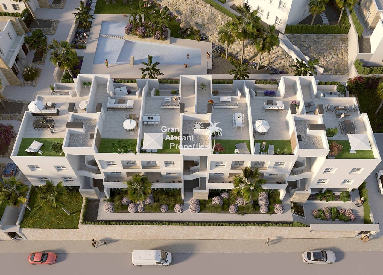 El diseño exterior de estas viviendas en Algorfa está pensado para maximizar el disfrute del clima mediterráneo. Cada propiedad cuenta con una terraza privada, ideal para relajarse al aire libre o disfrutar de comidas al fresco. Las plantas bajas disponen de un jardín privado, perfecto para quienes buscan un espacio verde personal. Los áticos, por su parte, ofrecen un solárium que proporciona un espacio adicional para tomar el sol o disfrutar de las vistas. La presencia de una pérgola añade un toque de sofisticación y funcionalidad, permitiendo disfrutar del exterior con sombra y estilo. La opción de un garaje privado asegura que el estacionamiento no sea un problema, ofreciendo seguridad y comodidad.