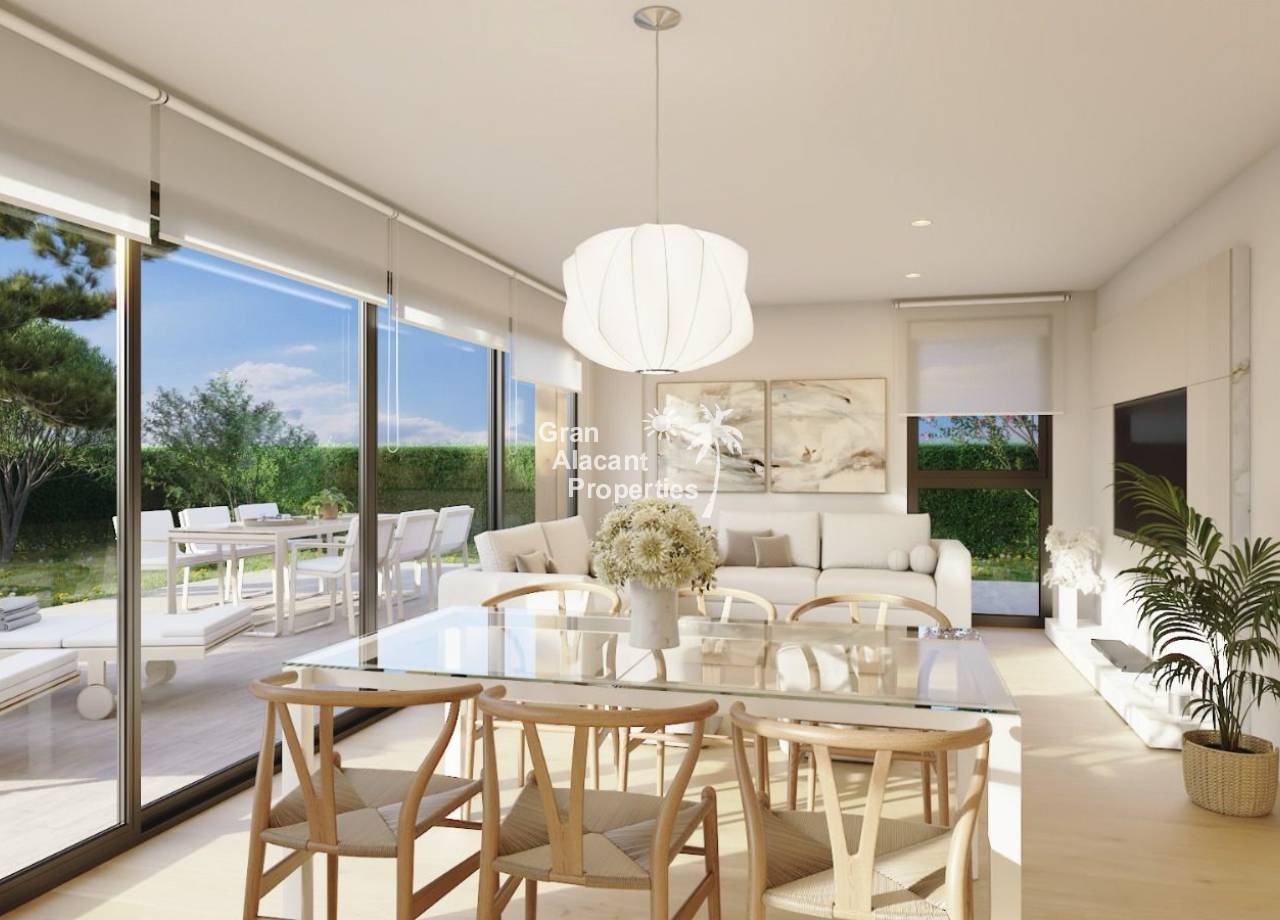Los exteriores de estas propiedades están diseñados para maximizar el disfrute del clima mediterráneo. Cada vivienda incluye una terraza, proporcionando un espacio al aire libre privado donde los residentes pueden relajarse o entretener a sus invitados. Además, algunas tipologías ofrecen la opción de un jardín privado, ideal para quienes desean un contacto más cercano con la naturaleza. Para aquellos que buscan un toque de lujo adicional, existe la posibilidad de incluir una piscina privada, permitiendo disfrutar de un refrescante baño en la comodidad de su hogar. La presencia de un solárium en algunas viviendas añade un espacio extra para tomar el sol y disfrutar de las vistas.