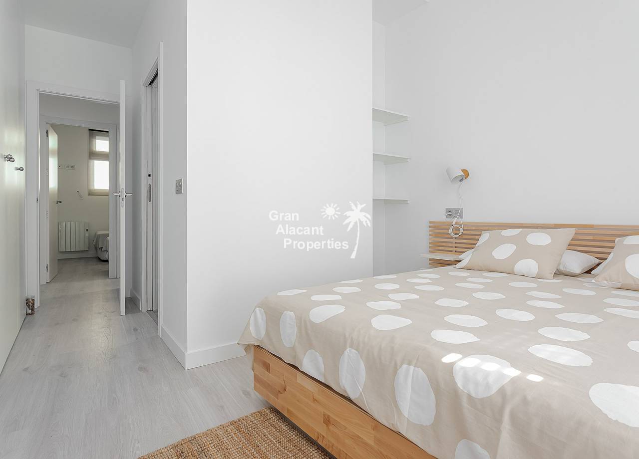El interior de las viviendas está diseñado con atención al detalle y calidad. Los suelos de cerámica ofrecen durabilidad y un acabado elegante, mientras que el aire acondicionado y la preinstalación de aire acondicionado garantizan un ambiente confortable durante todo el año. Las cocinas están equipadas con electrodomésticos modernos, facilitando la vida diaria. Los armarios empotrados proporcionan un amplio espacio de almacenamiento, manteniendo el orden y la organización en el hogar. Con opciones de 2 o 3 dormitorios y 2 baños, cada vivienda está pensada para ofrecer un espacio funcional y acogedor.