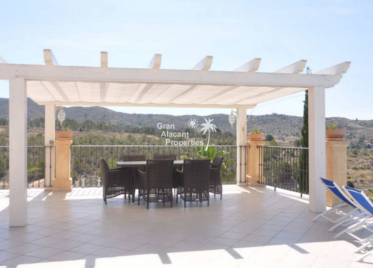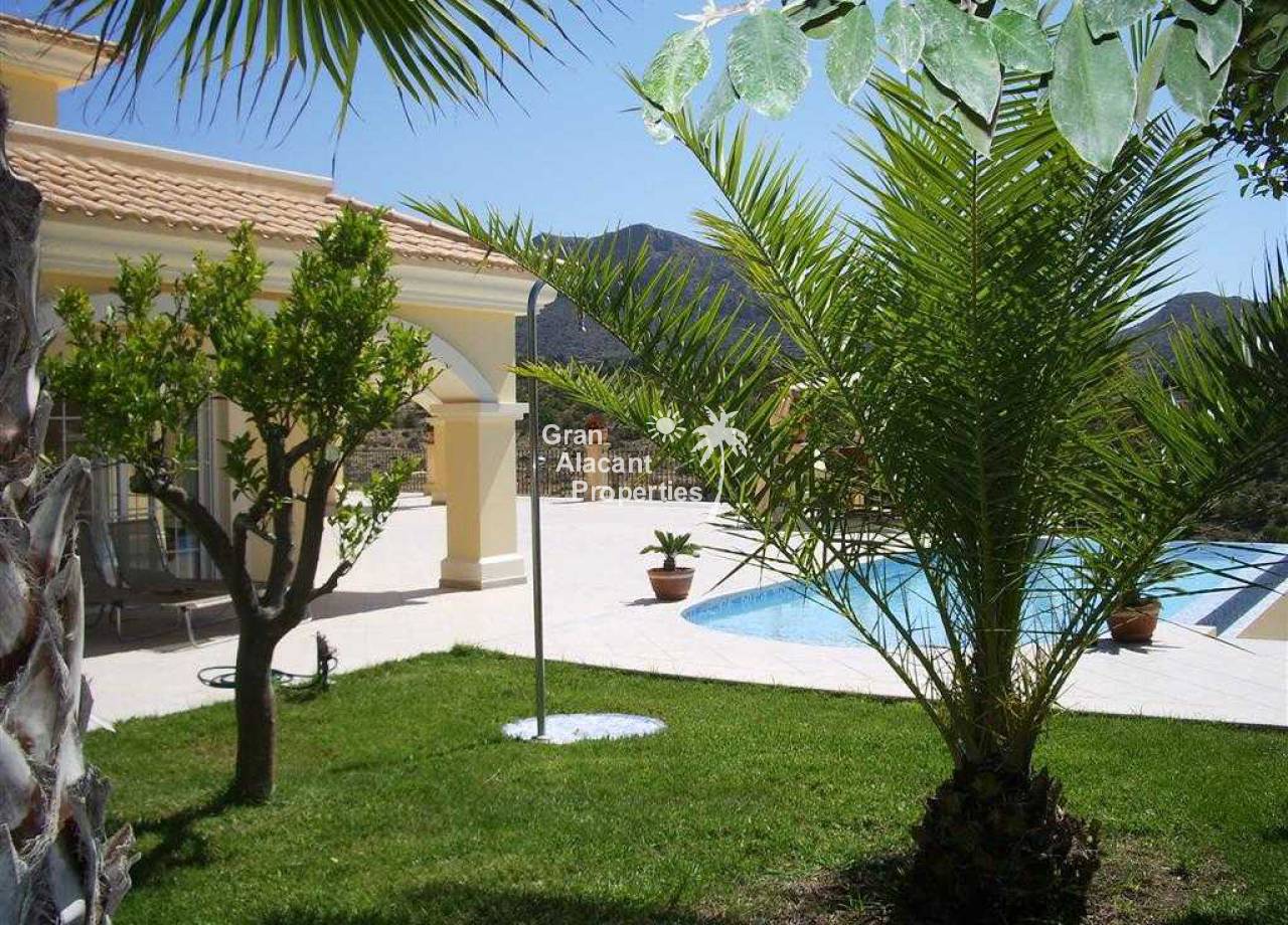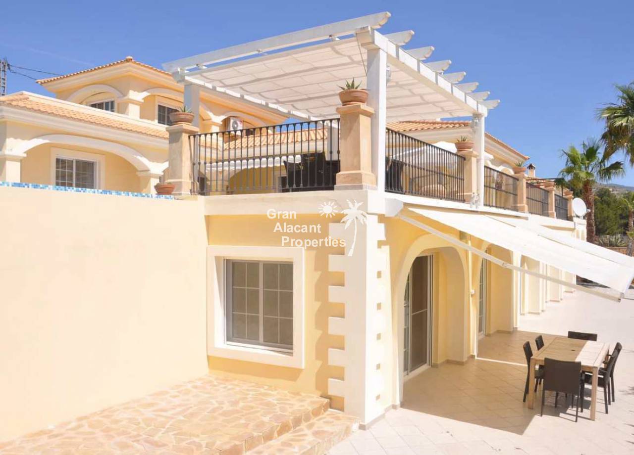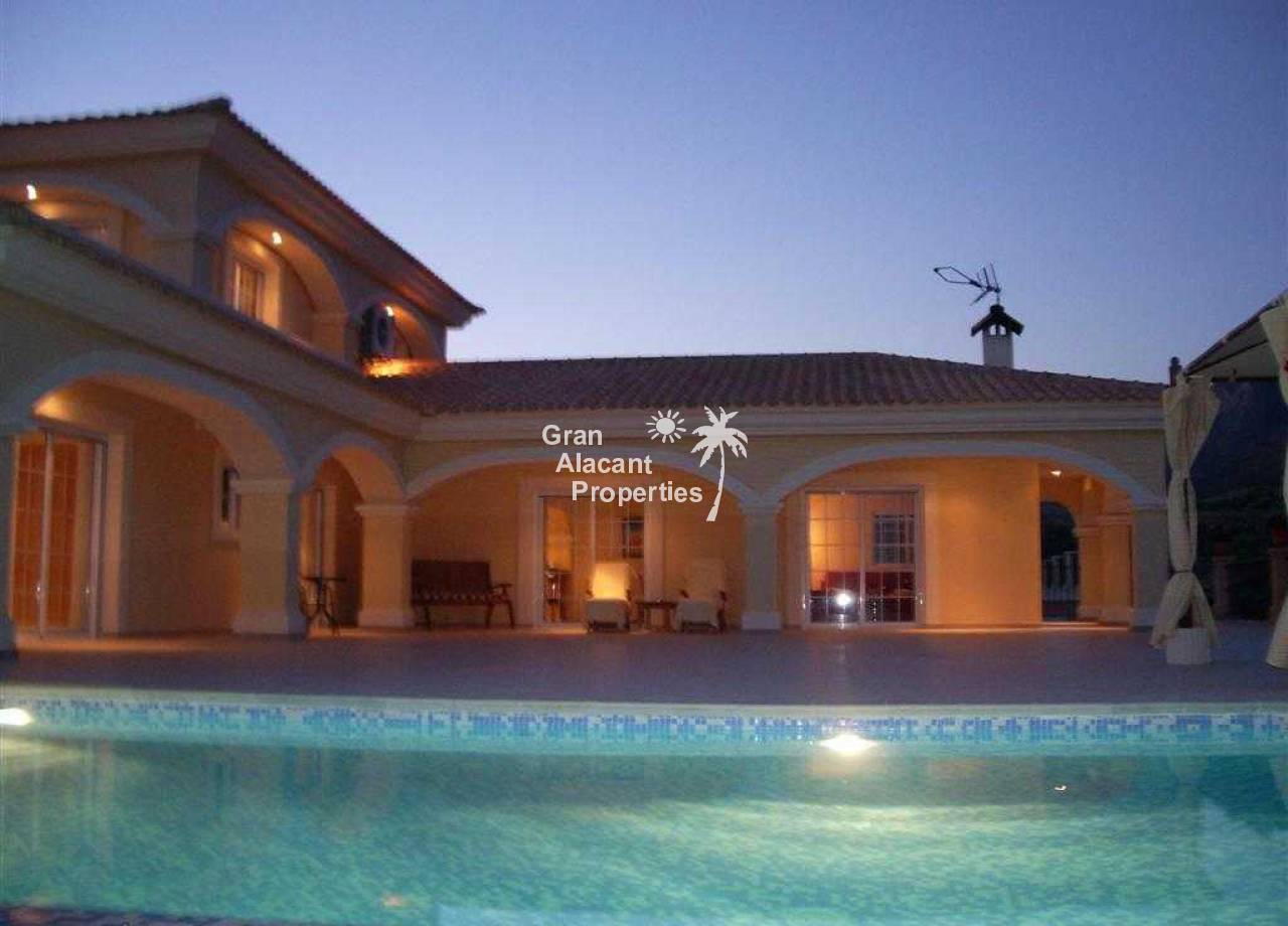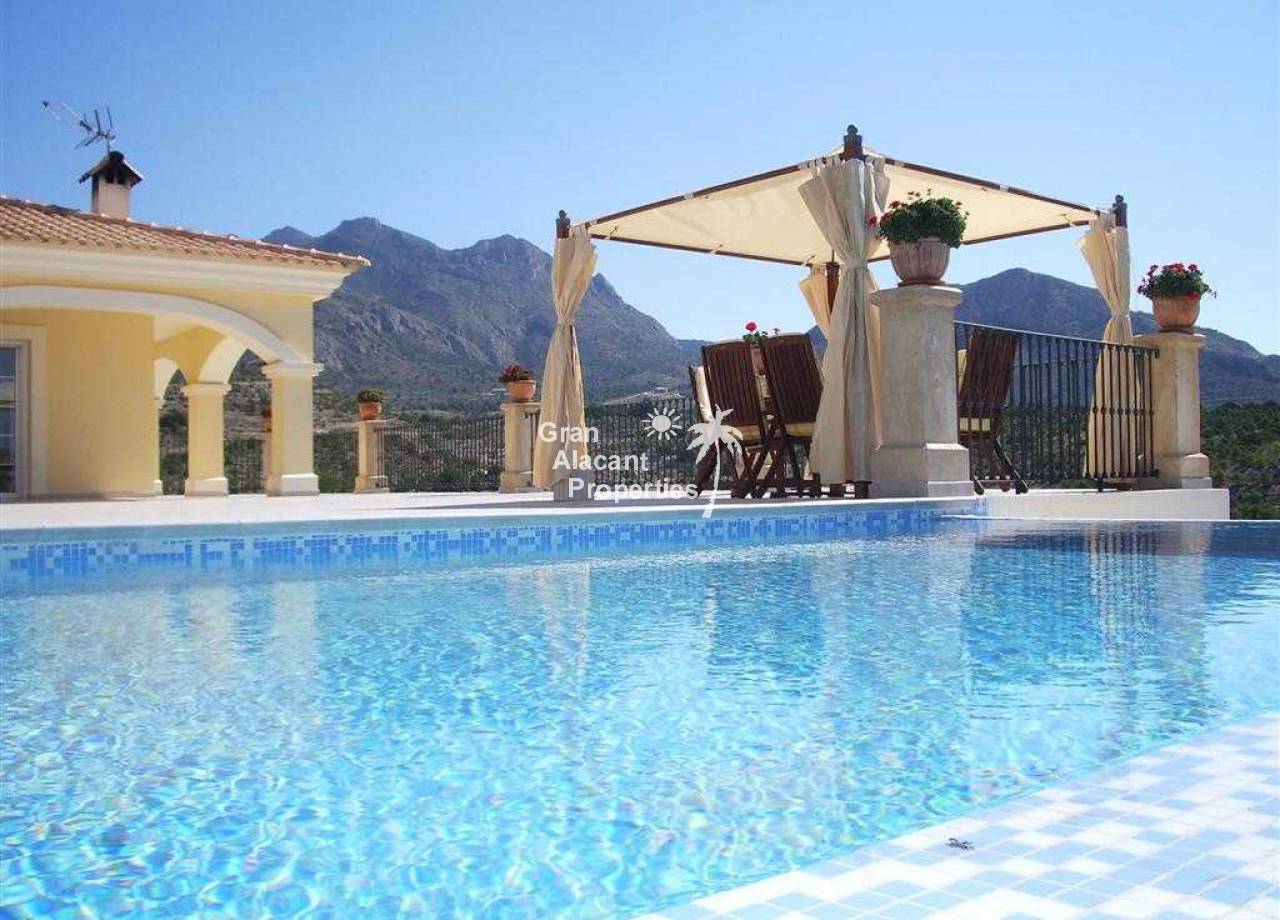 Gran chalet independiente en venta en Busot en la soleada Costa Blanca de España. Esta casa de lujo disfruta de increíbles vistas de las montañas, espacios verdes, el Mediterráneo, Playa San Juan, El Campello y más. La propiedad ofrece 554 m2 de espacio habitable con más de 200 m2 de espacio exterior en varias terrazas, todas con impresionantes vistas.