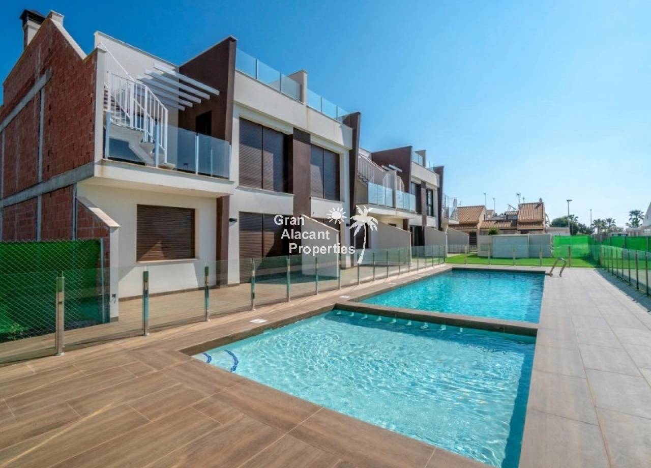 El diseño exterior de las viviendas en San Pedro del Pinatar está pensado para maximizar el disfrute del clima mediterráneo. Cada propiedad cuenta con un jardín privado, ideal para crear un espacio verde personal o disfrutar de momentos al aire libre. Las terrazas ofrecen un lugar perfecto para relajarse, tomar el sol o compartir comidas al aire libre con familiares y amigos. Además, los bungalows disponen de un solárium, proporcionando un espacio adicional para el ocio y el descanso. La posibilidad de contar con un punto de carga para coches eléctricos refleja un compromiso con la sostenibilidad y la adaptación a las necesidades modernas de movilidad.
