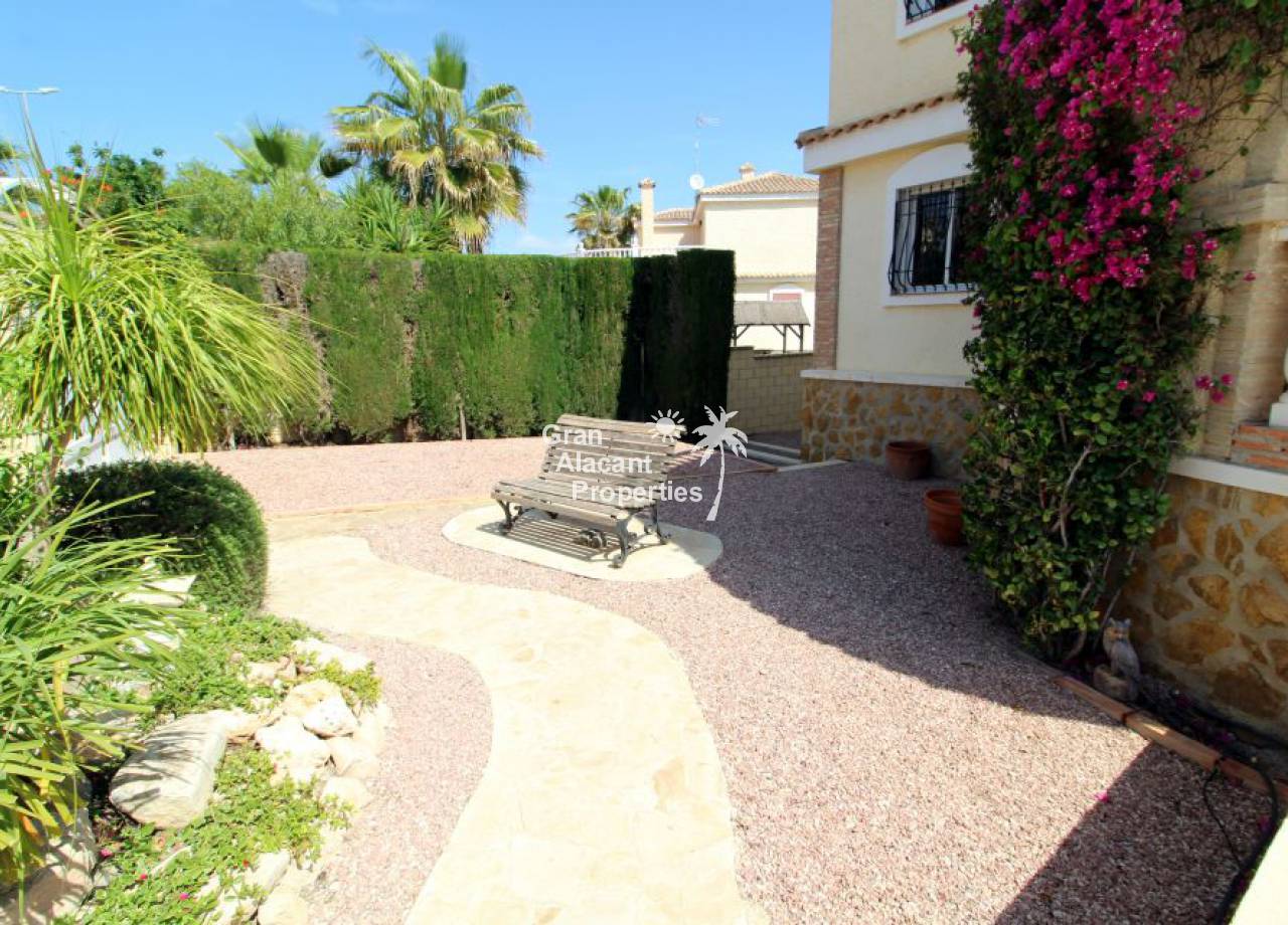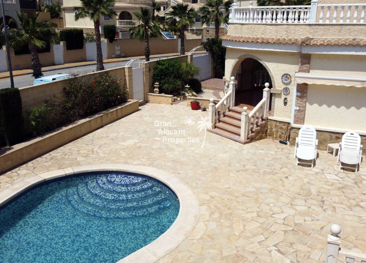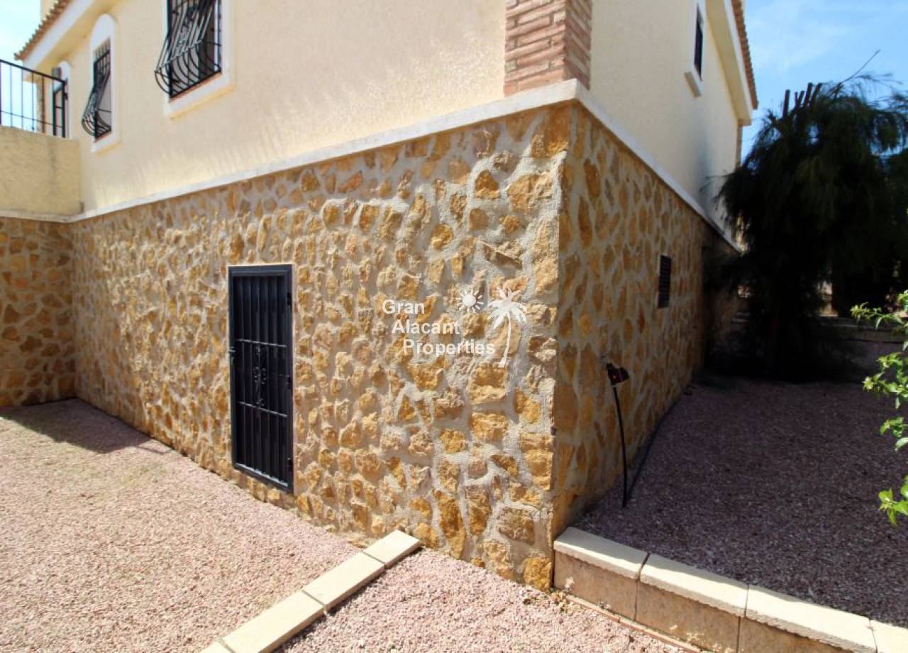 Gran Alacant Properties se complace en ofrecer este chalet estilo "Eclipse" a la venta en Montecid en Monforte del Cid en la soleada Costa Blanca de España. Este gran chalet independiente ofrece mucho espacio para toda la familia o para recibir a invitados en su enorme parcela de 600 m2 con piscina privada y zona de barbacoa.
