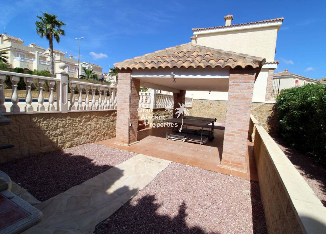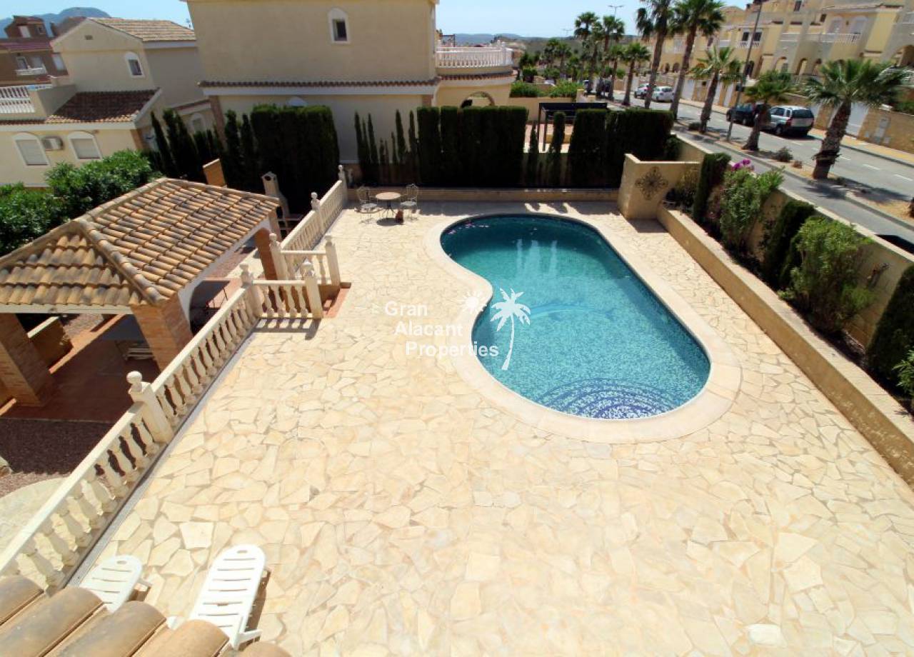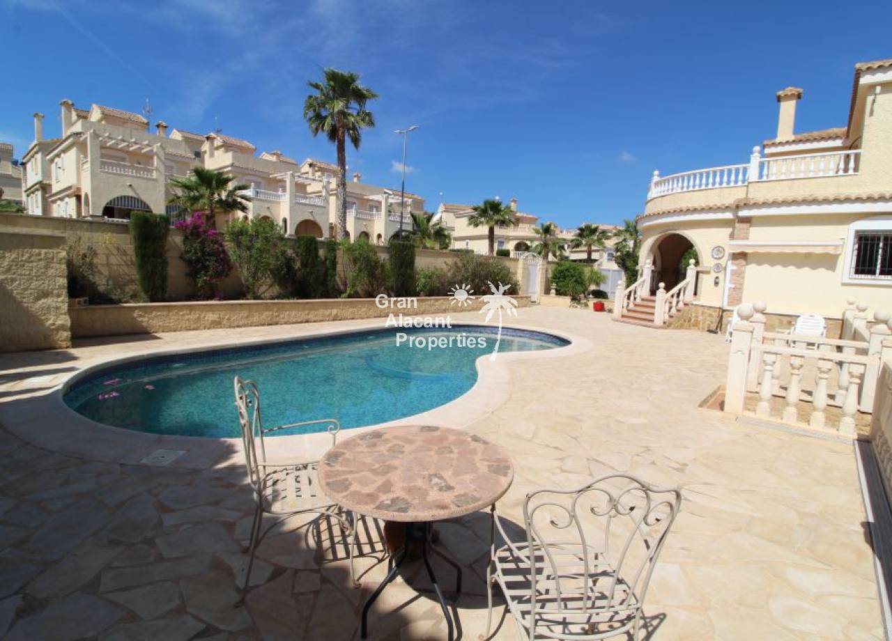 Gran Alacant Properties se complace en ofrecer este chalet estilo "Eclipse" a la venta en Montecid en Monforte del Cid en la soleada Costa Blanca de España. Este gran chalet independiente ofrece mucho espacio para toda la familia o para recibir a invitados en su enorme parcela de 600 m2 con piscina privada y zona de barbacoa.