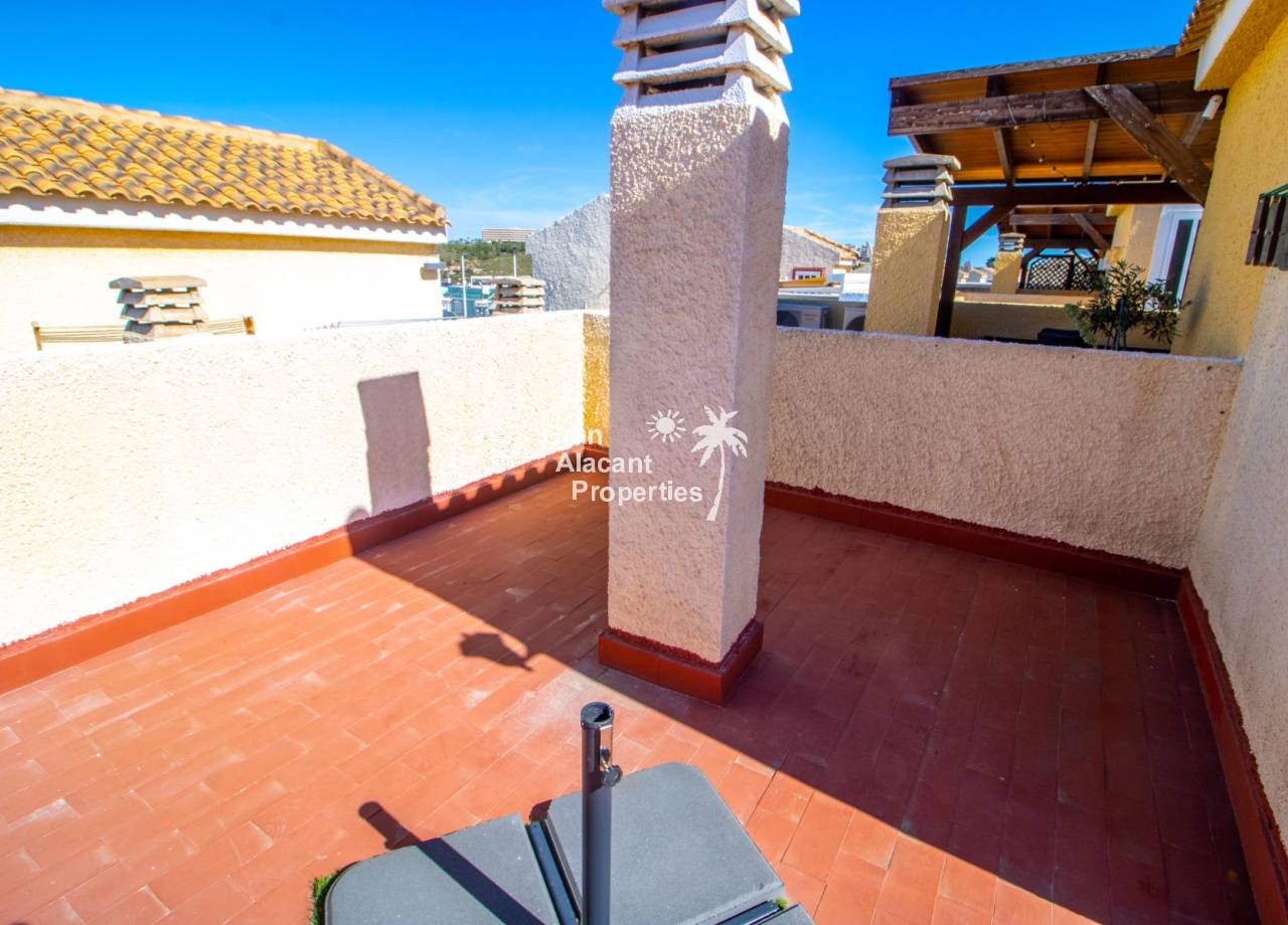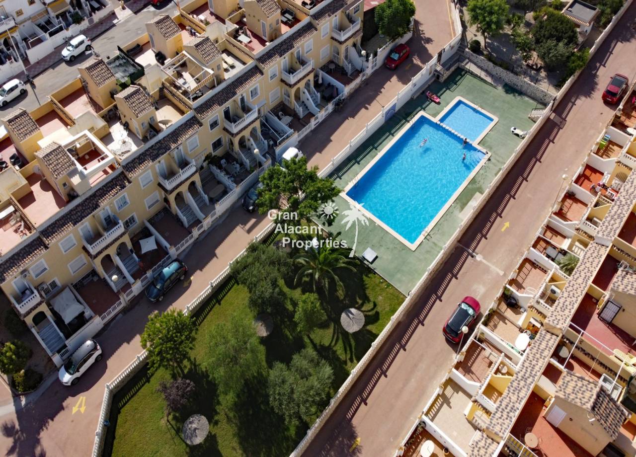 Esta preciosa vivienda adosada de dos dormitorios orientada al sur, completamente amueblada y cuidada al detalle, es una auténtica joya en una de las urbanizaciones privadas más demandadas de la zona baja de Gran Alacant. Luminosa, acogedora y perfectamente situada a poca distancia a pie de la playa, tiendas, bares y mucho más, es un hogar donde cada día se siente como vacaciones. Tanto si buscas una residencia habitual, una escapada cómoda para venir y cerrar, o una inversión segura, esta soleada vivienda lo tiene todo.