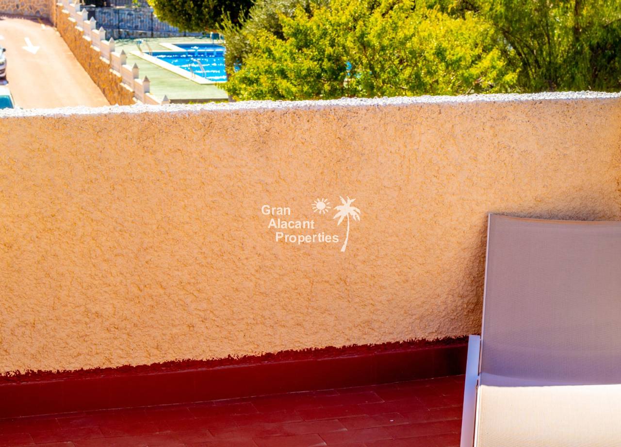En el exterior, la vivienda sigue sorprendiendo con un encantador jardín delantero de bajo mantenimiento, diseñado para disfrutar del estilo de vida mediterráneo con total comodidad. La terraza cubierta de la entrada ofrece un espacio perfecto para el café de la mañana, comidas relajadas o una copa al atardecer, con sombra durante los meses más cálidos. En la parte superior, el solárium privado de 20 m² disfruta de bonitas vistas a la piscina, a las zonas ajardinadas y a las montañas circundantes, un lugar ideal para reuniones con amigos, tomar el sol o simplemente relajarse mientras cae la tarde sobre la Costa Blanca. Desde momentos tranquilos en solitario hasta veladas animadas, siempre hay un espacio exterior perfecto para cada ocasión.