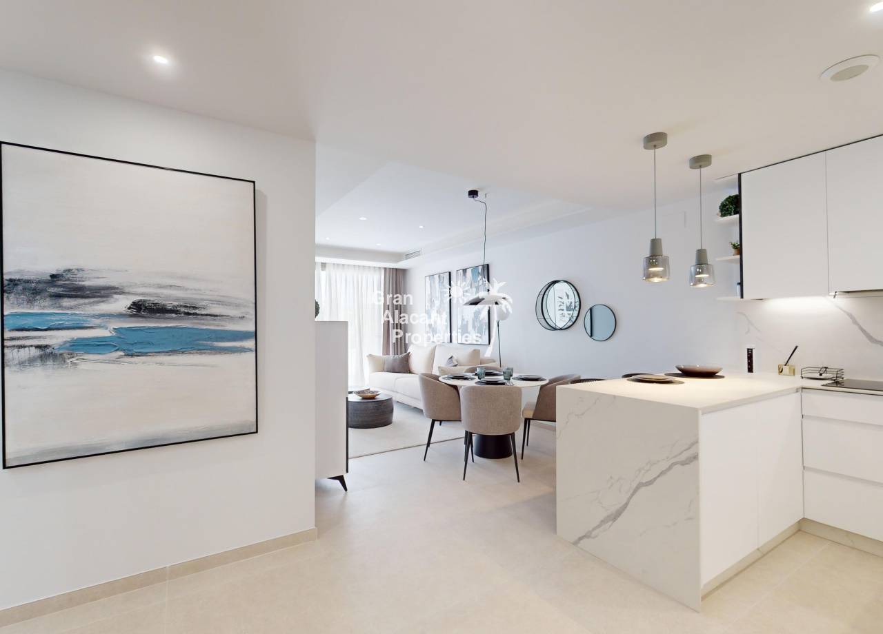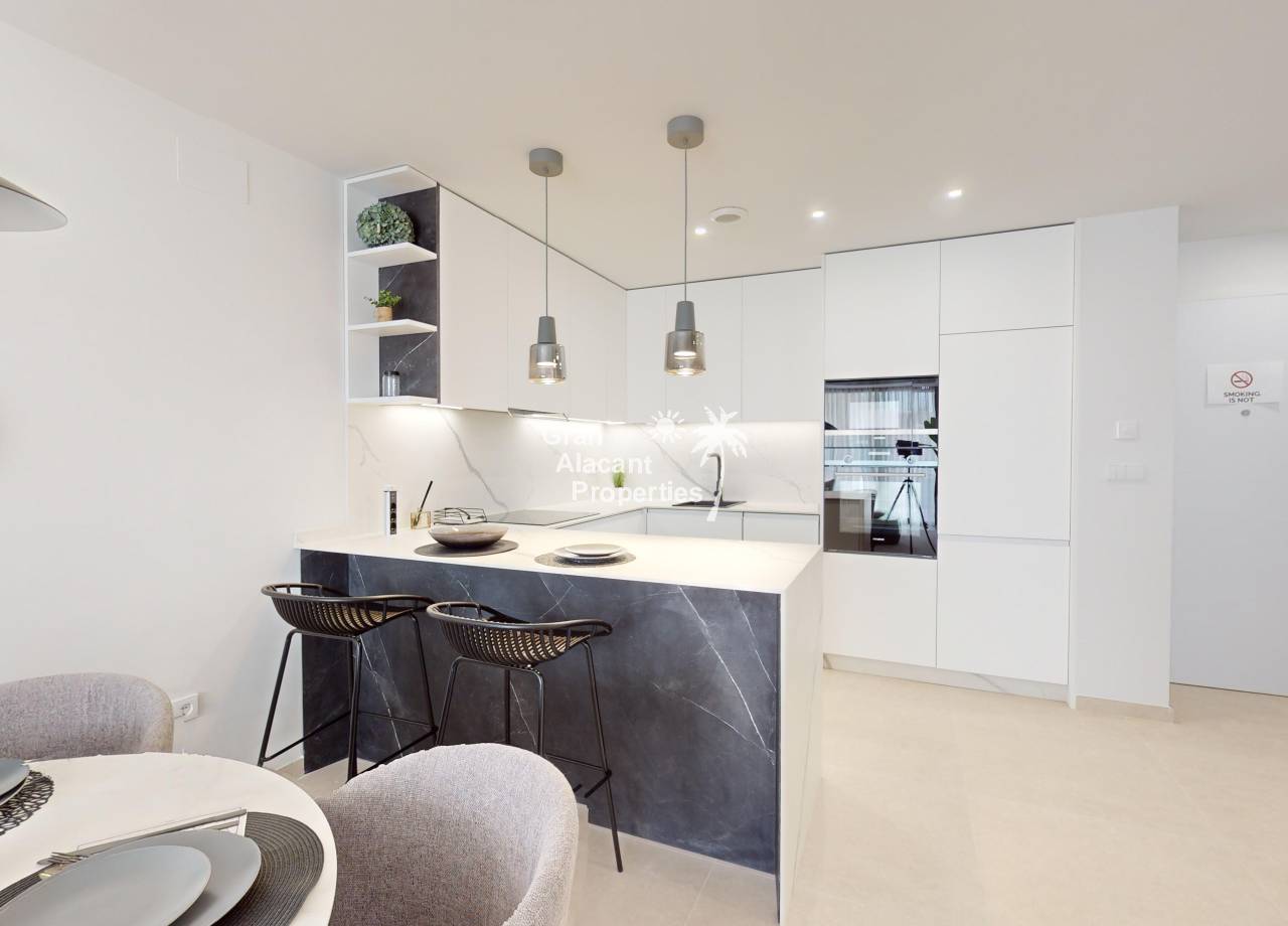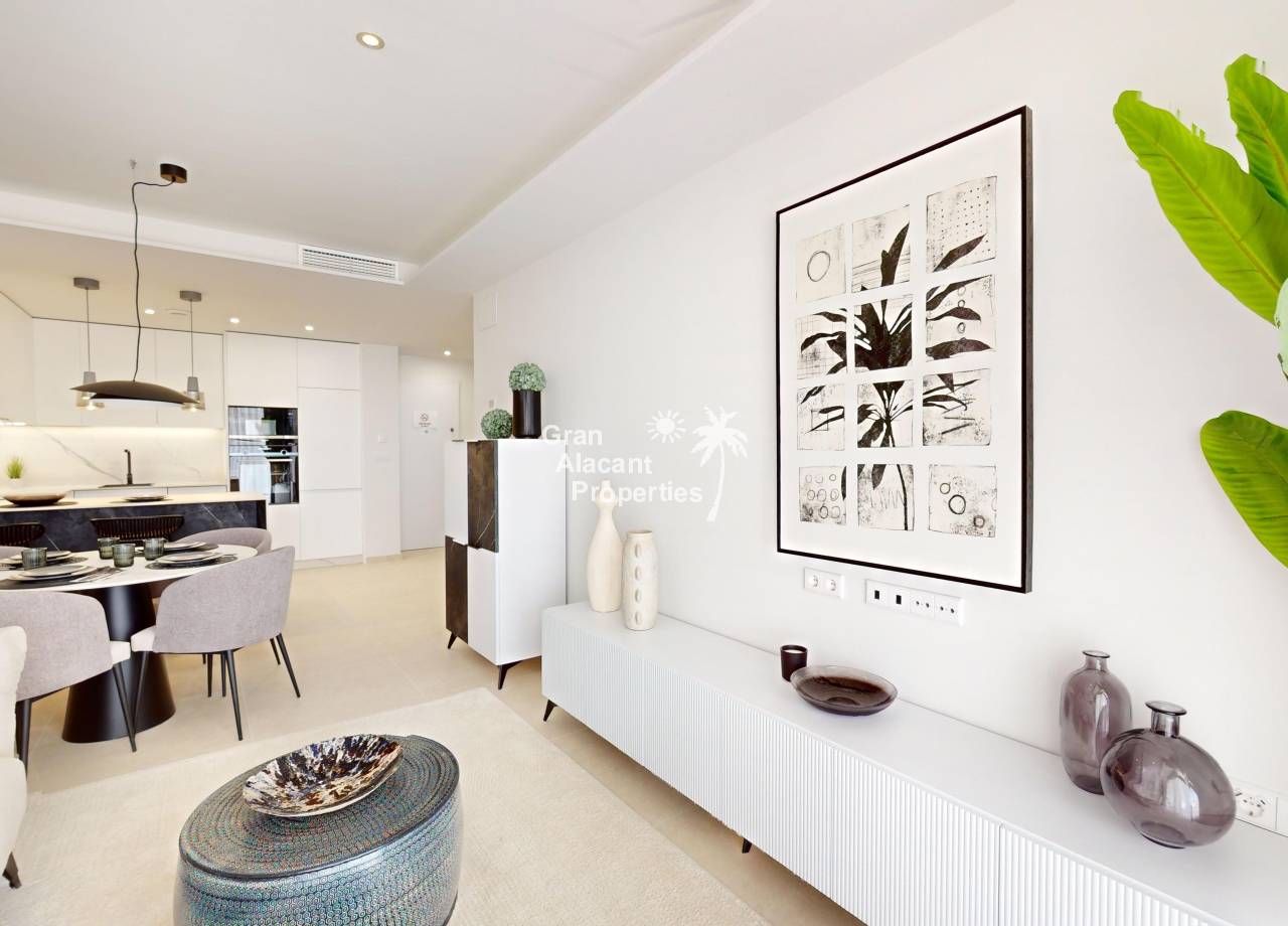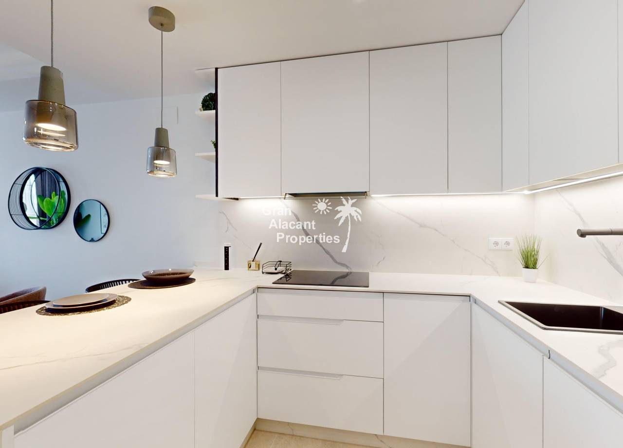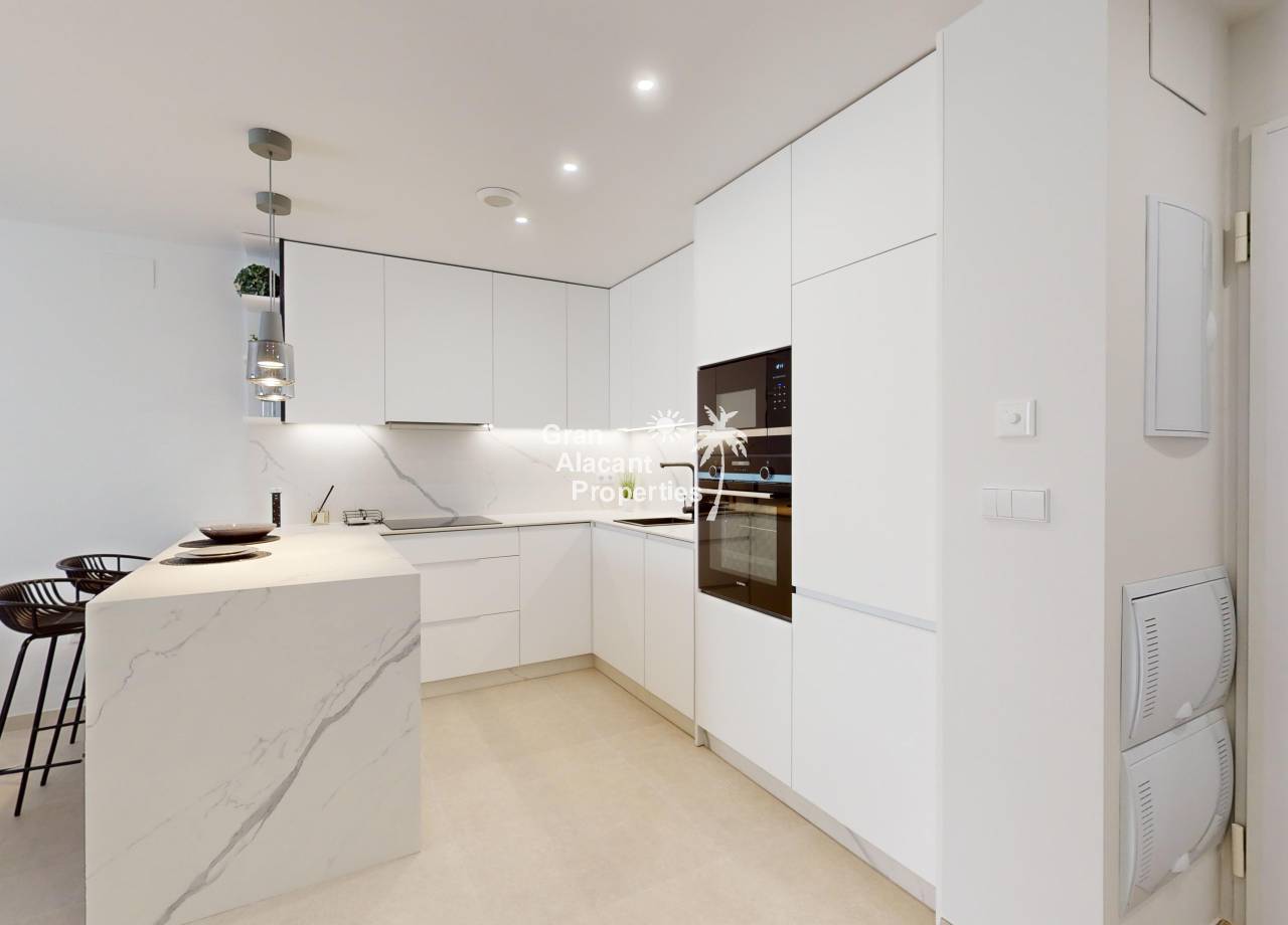El interior de estas viviendas en Cabo Roig está diseñado para ofrecer el máximo confort y estilo. Los suelos de cerámica aportan un toque moderno y son fáciles de mantener, mientras que el mobiliario incluido asegura que cada espacio esté listo para ser habitado. La distribución incluye 2 o 3 dormitorios y 2 baños, proporcionando un espacio adecuado para familias o parejas. La cocina está equipada con electrodomésticos modernos, y el sistema de aire acondicionado garantiza un ambiente agradable durante todo el año. Además, cada propiedad cuenta con un videoportero, añadiendo un nivel extra de seguridad y comodidad.
